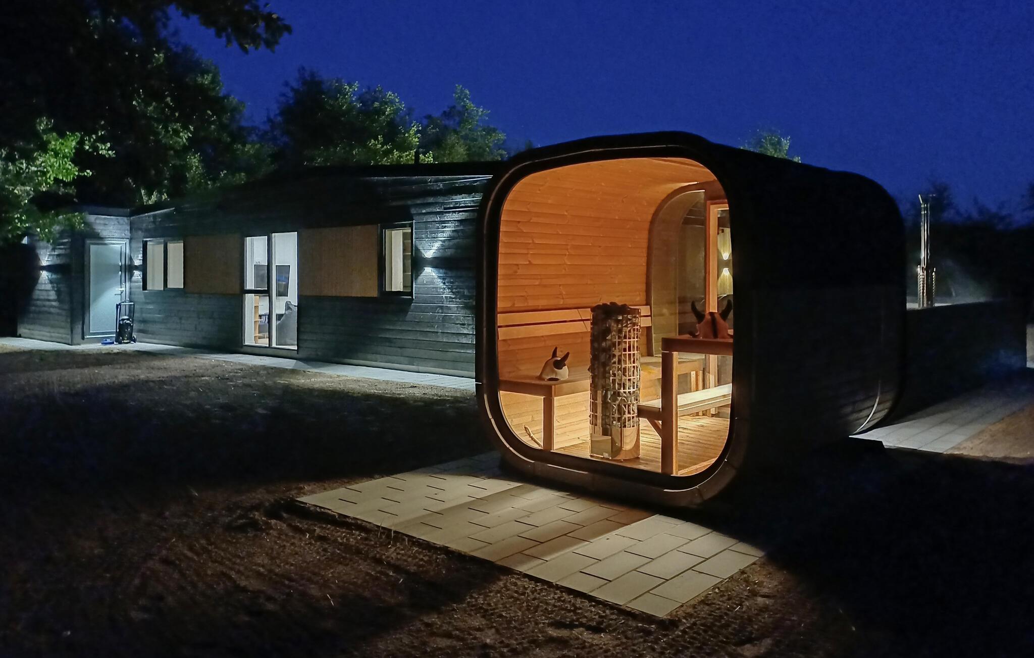 Feriehus med spabad, sauna og strandnær beliggenhed i naturskønne Fjellerup.
