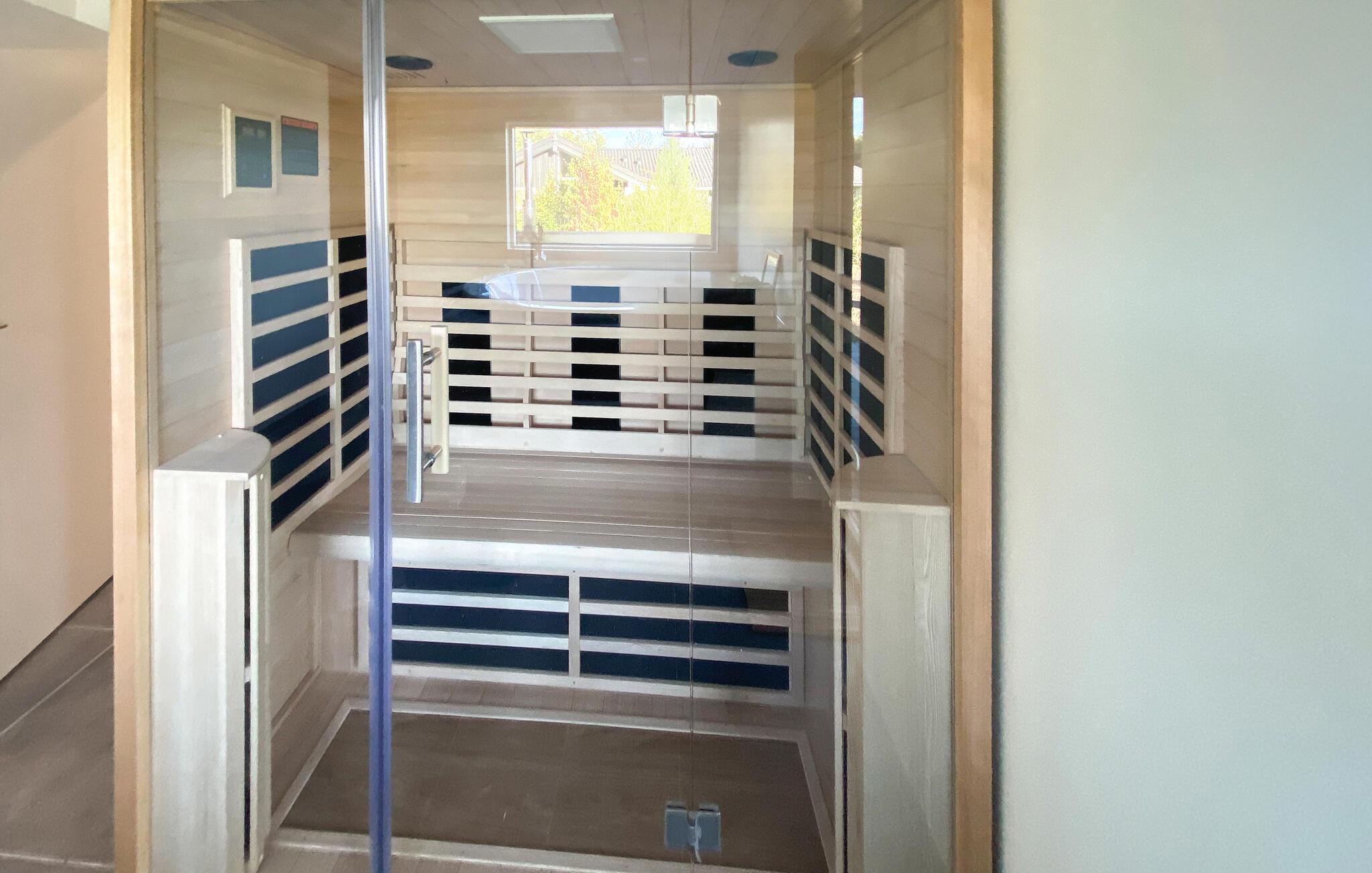 Nyd den smukke udsigt over de omkringliggende grønne områder fra terrassen. Nyd en afslappet morgenmad, og læn jer tilbage med jeres feriebøger. I spabadet og den skønne sauna med udsigt over haven kan I slappe helt af og lade batterierne op.