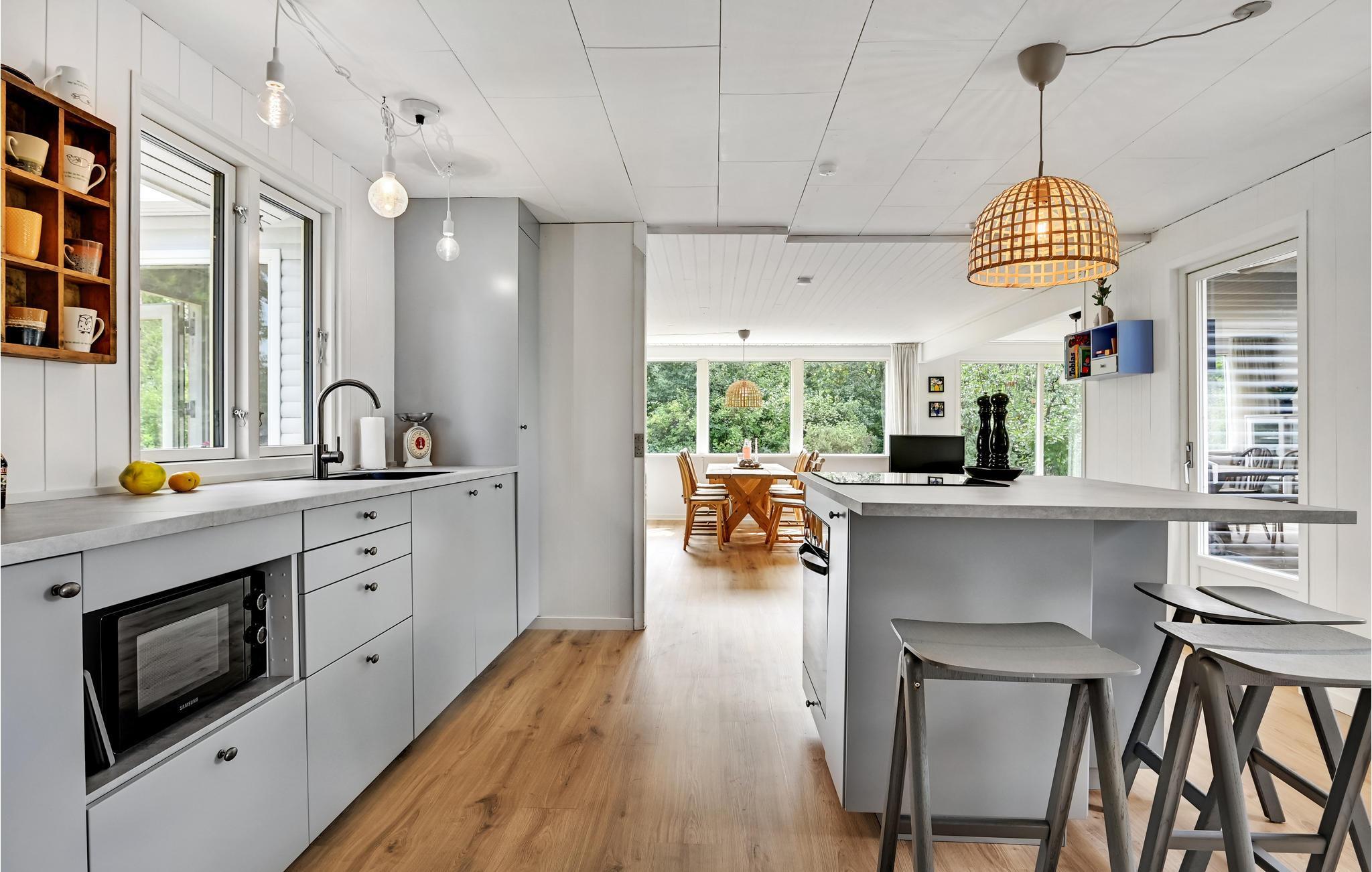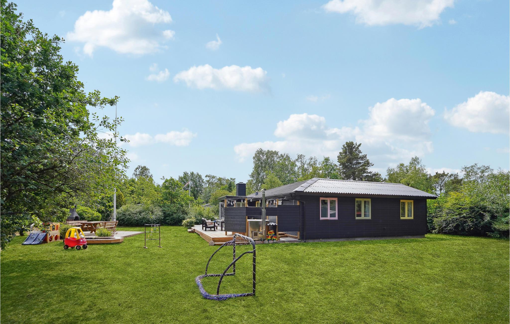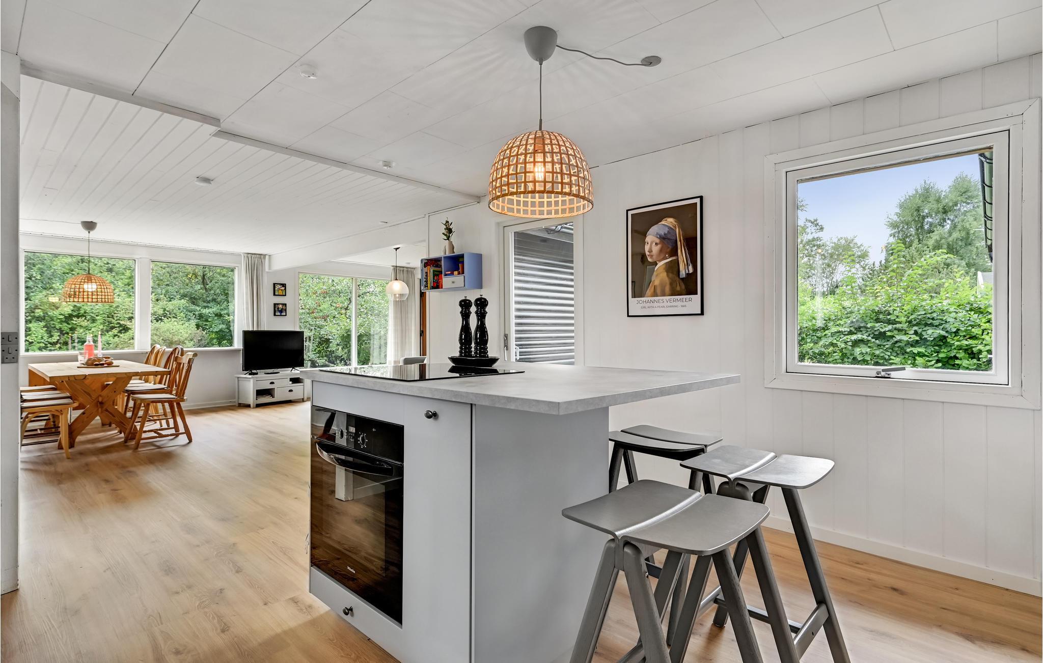 Lyst og elegant sommerhus tæt på Fjellerup Strand med moderne køkken og stor have til afslapning.