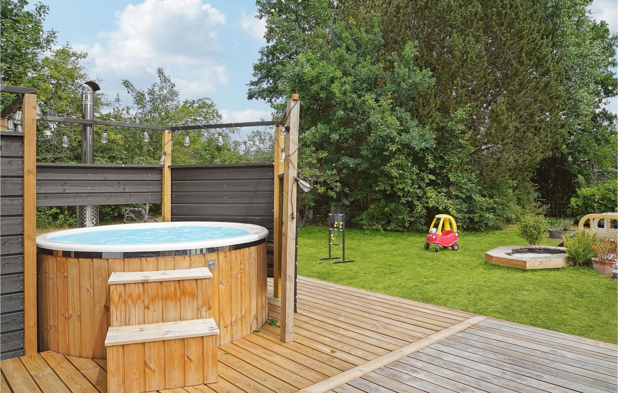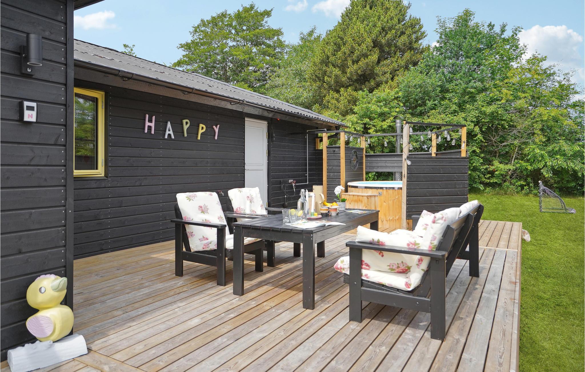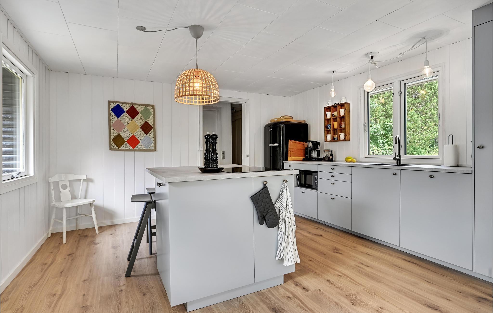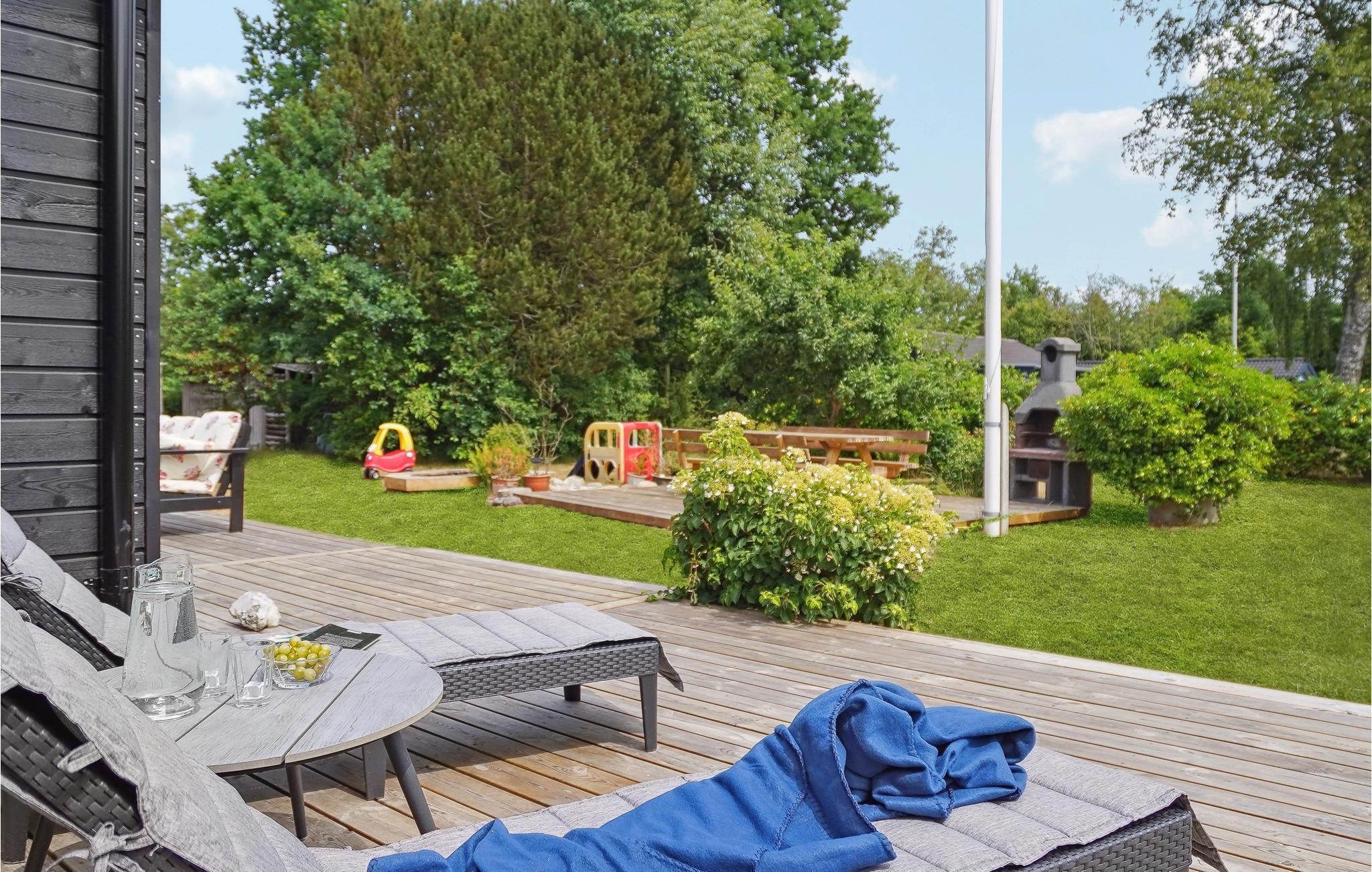 Lyst og elegant sommerhus tæt på Fjellerup Strand med moderne køkken og stor have til afslapning.