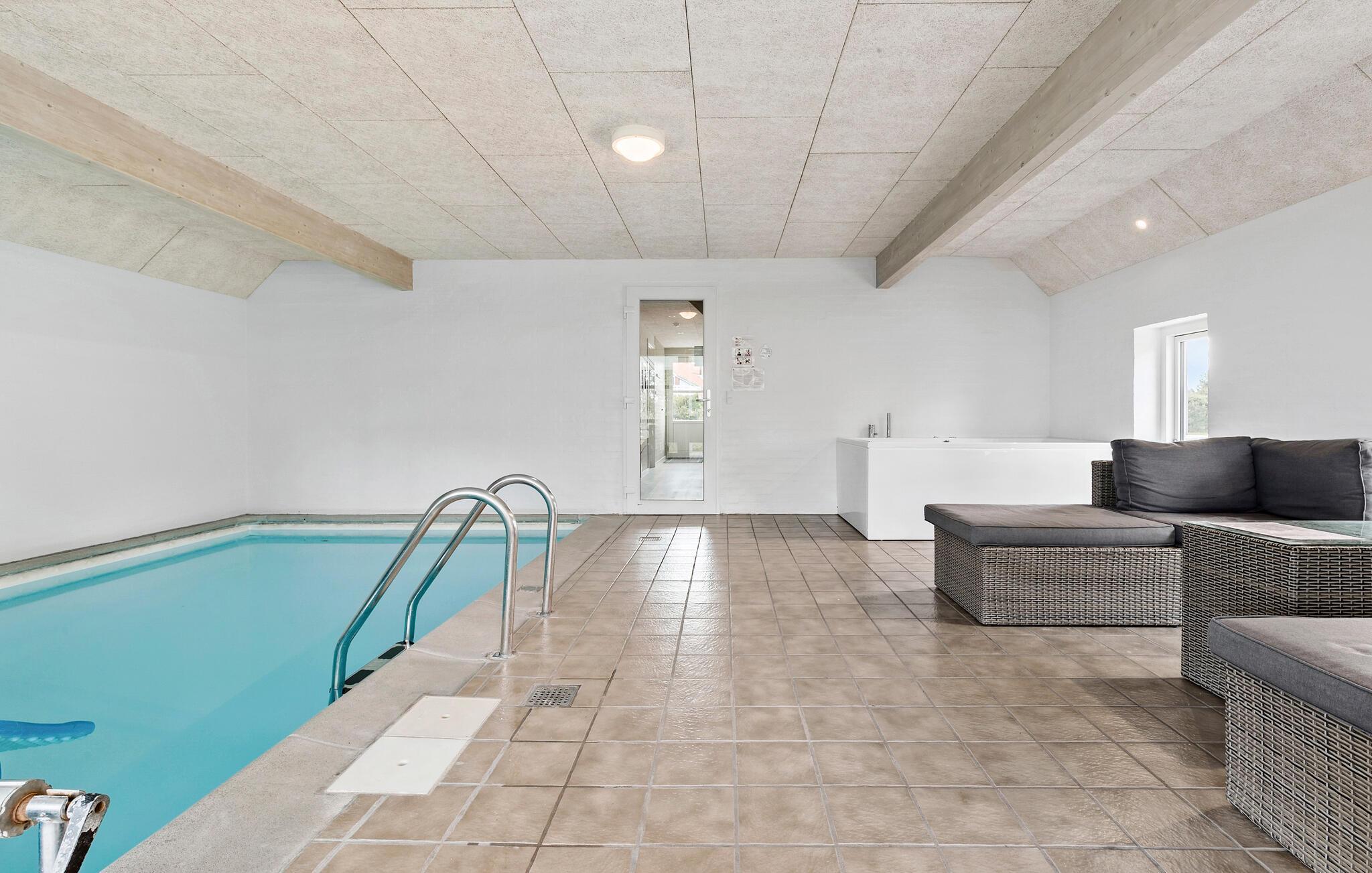 Tilbring en uforglemmelig ferie med familie eller venner i dette dejlige sommerhus med indendørs pool, vildmarksbad og udesauna ved Fjellerup Strand.