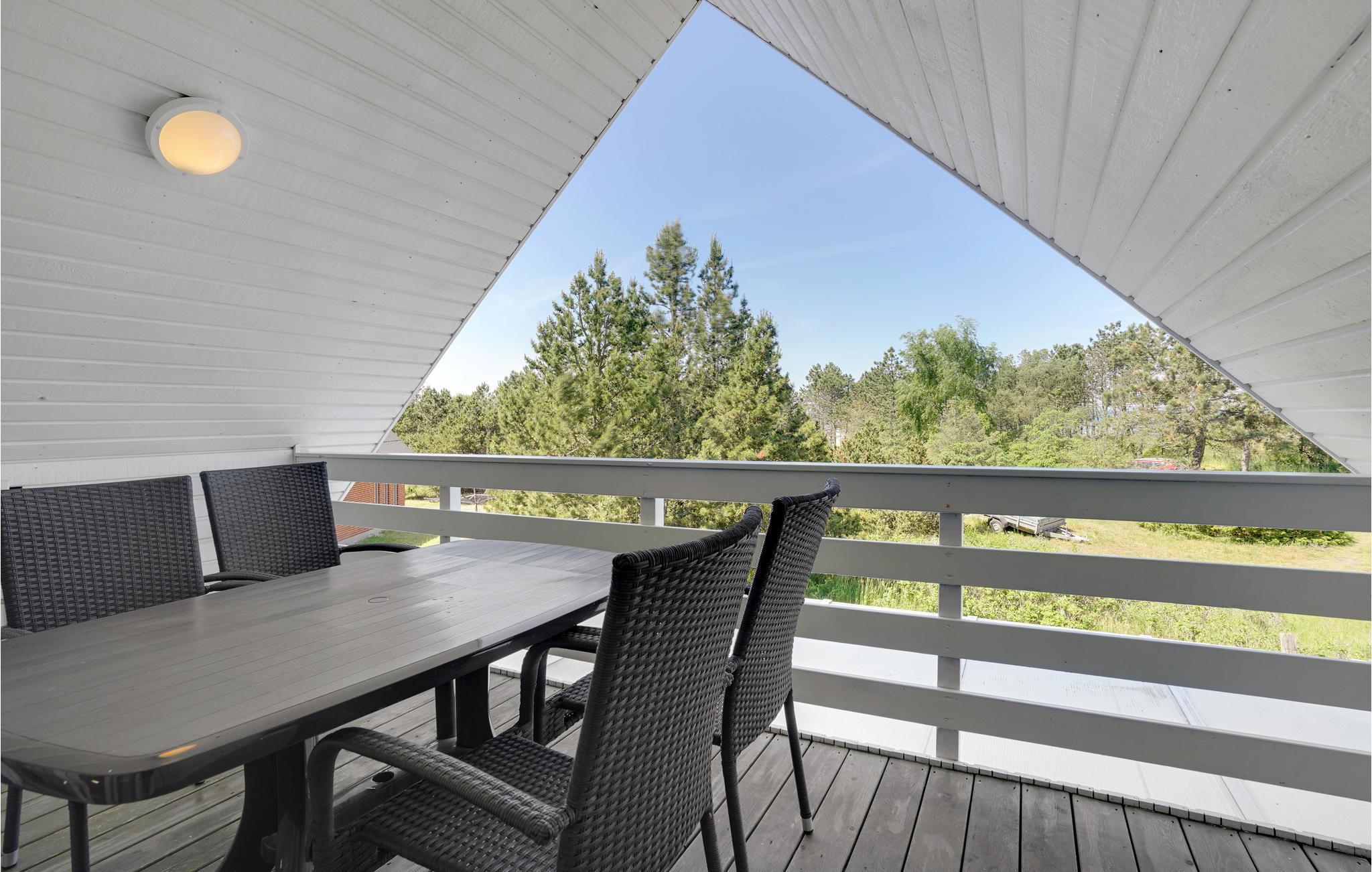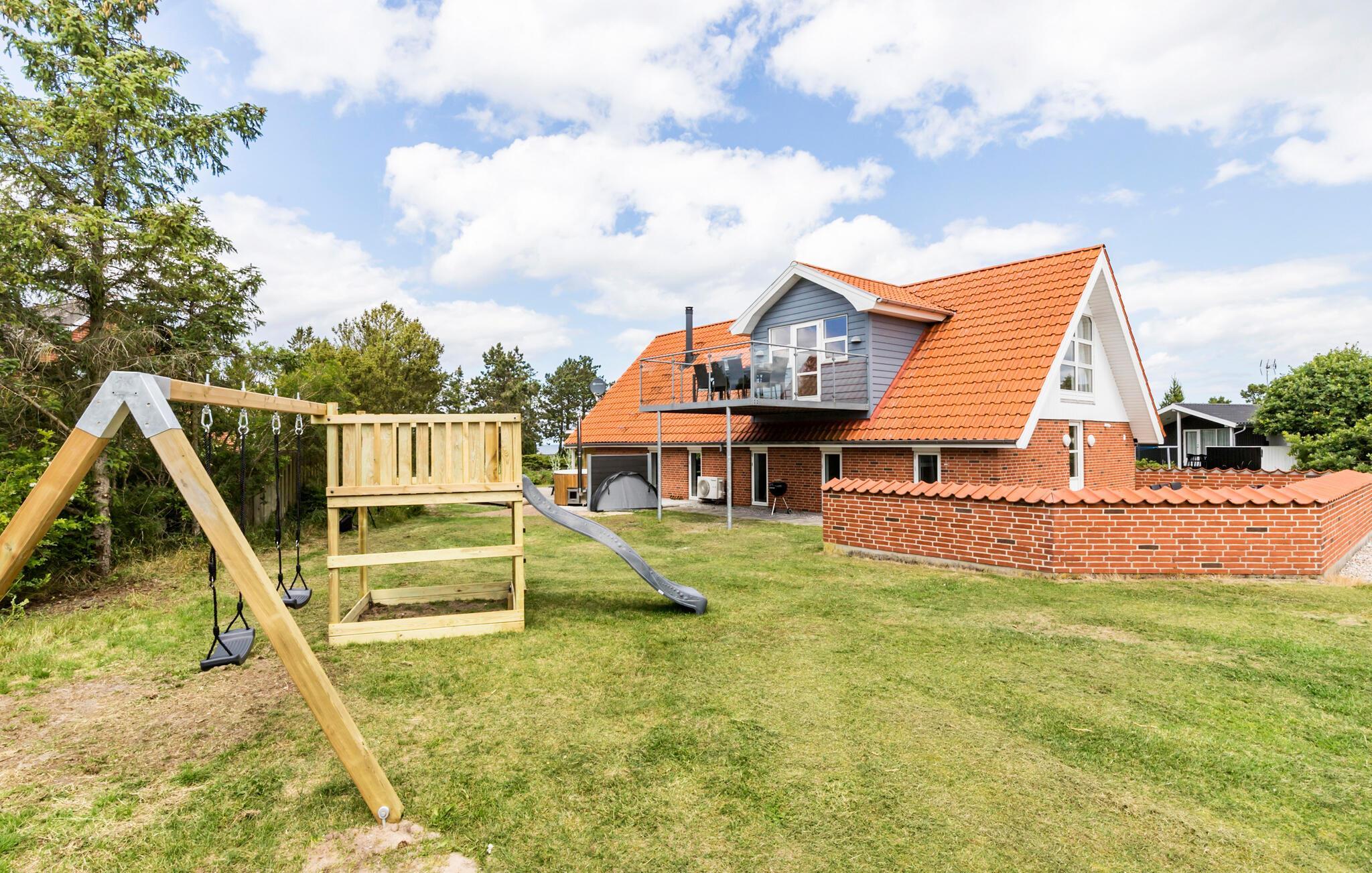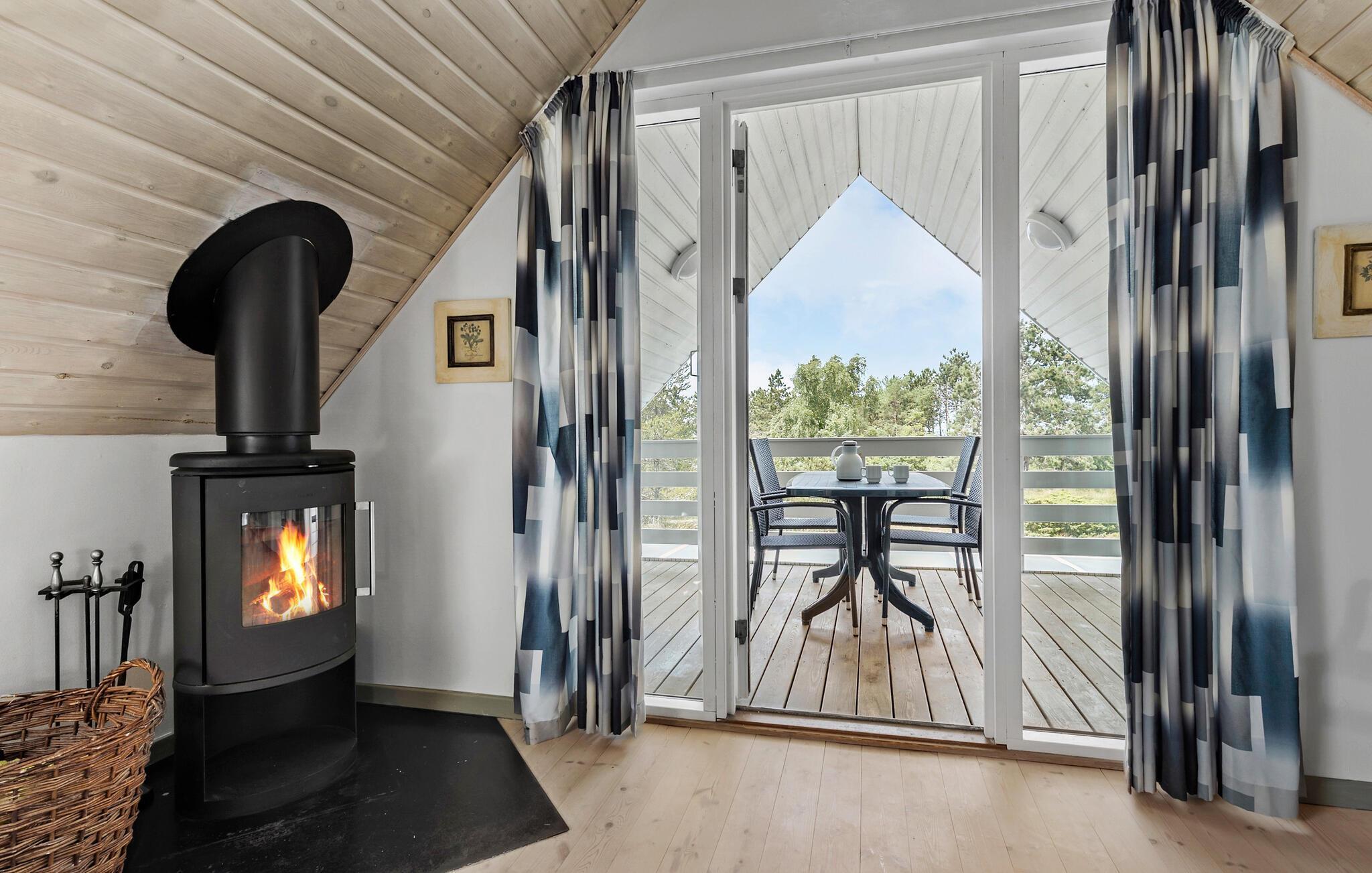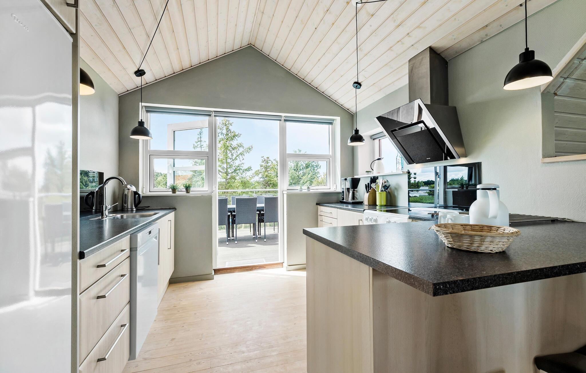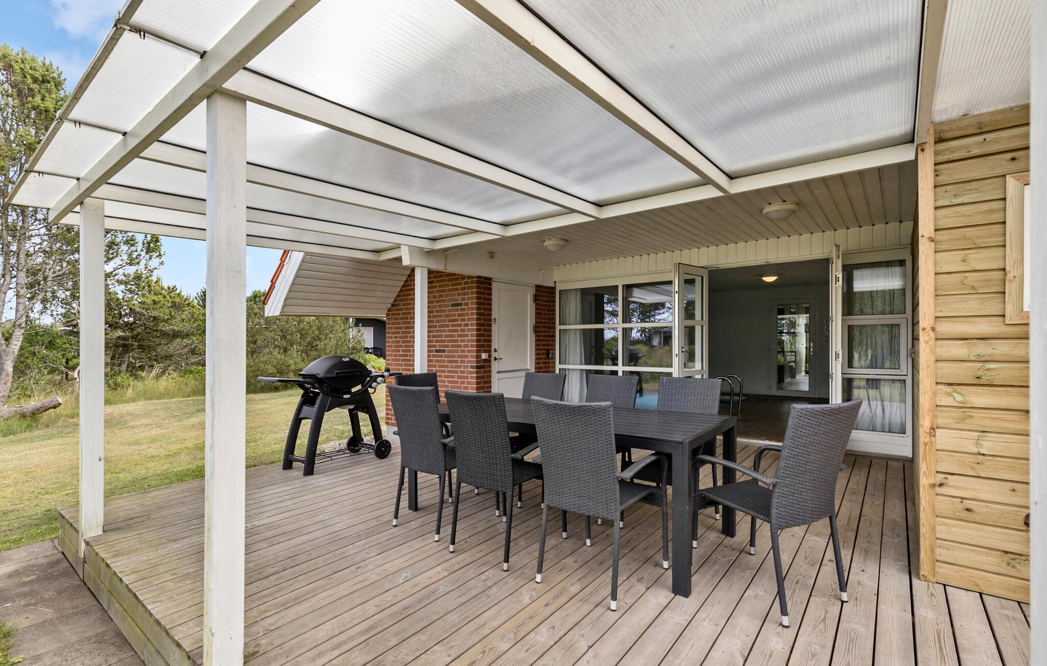 Udenfor inviterer den lækre træterrasse til afslapning og solbadning i løbet af dagen og til at nyde de lange sommeraftener med spisning udenfor. Børnene finder masser af plads til at lege og boltre sig i det fri, mens I nyder en forfriskning på terrassen.