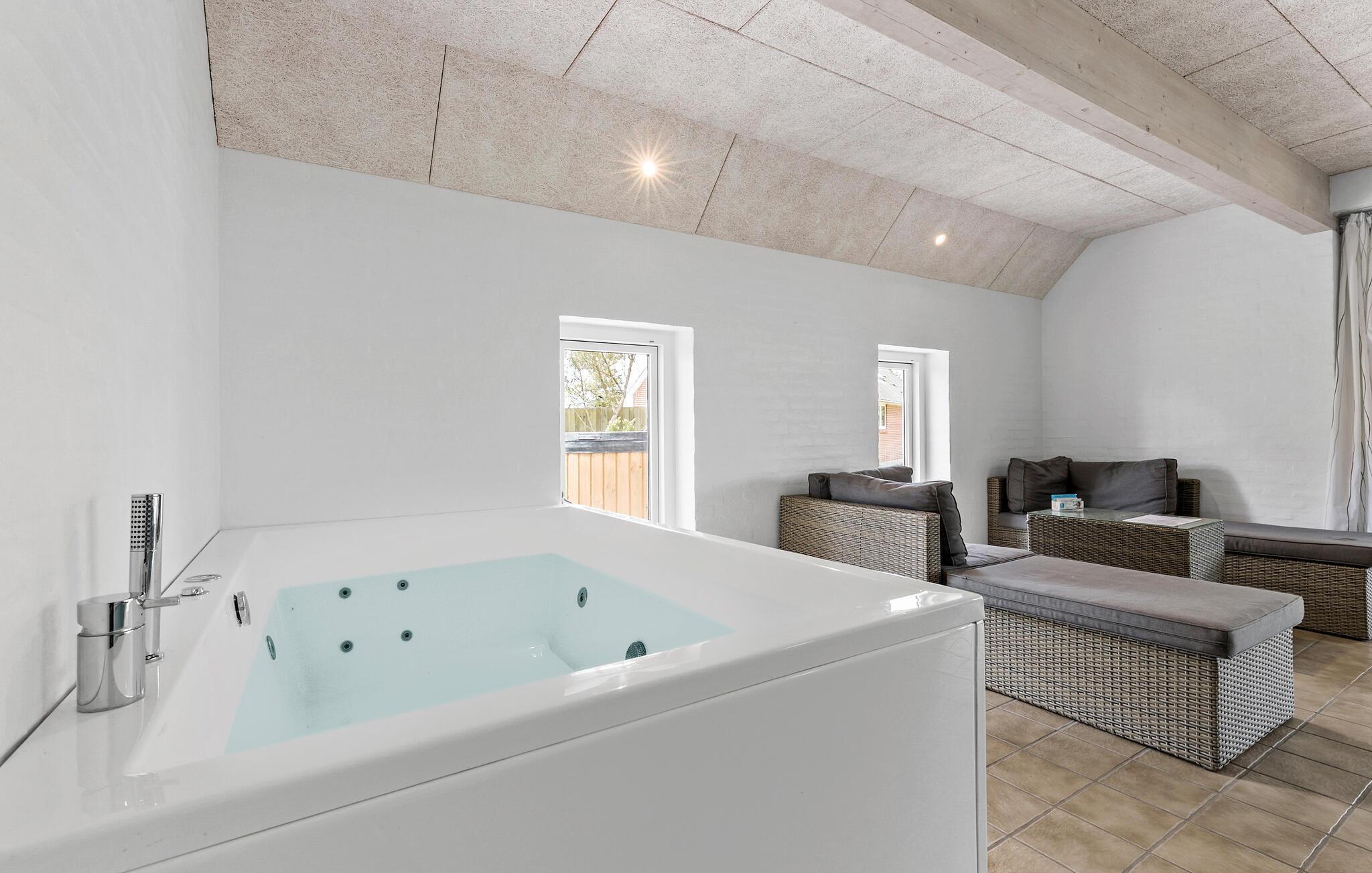 Et højdepunkt i huset er wellness-faciliteterne i form af spabad, udesauna og vildmarksbad hvor I kan slappe af efter en aktiv dag. Uanset vejret kan børnene plaske rundt i poolen og brænde en masse god energi af før aftensmaden.
