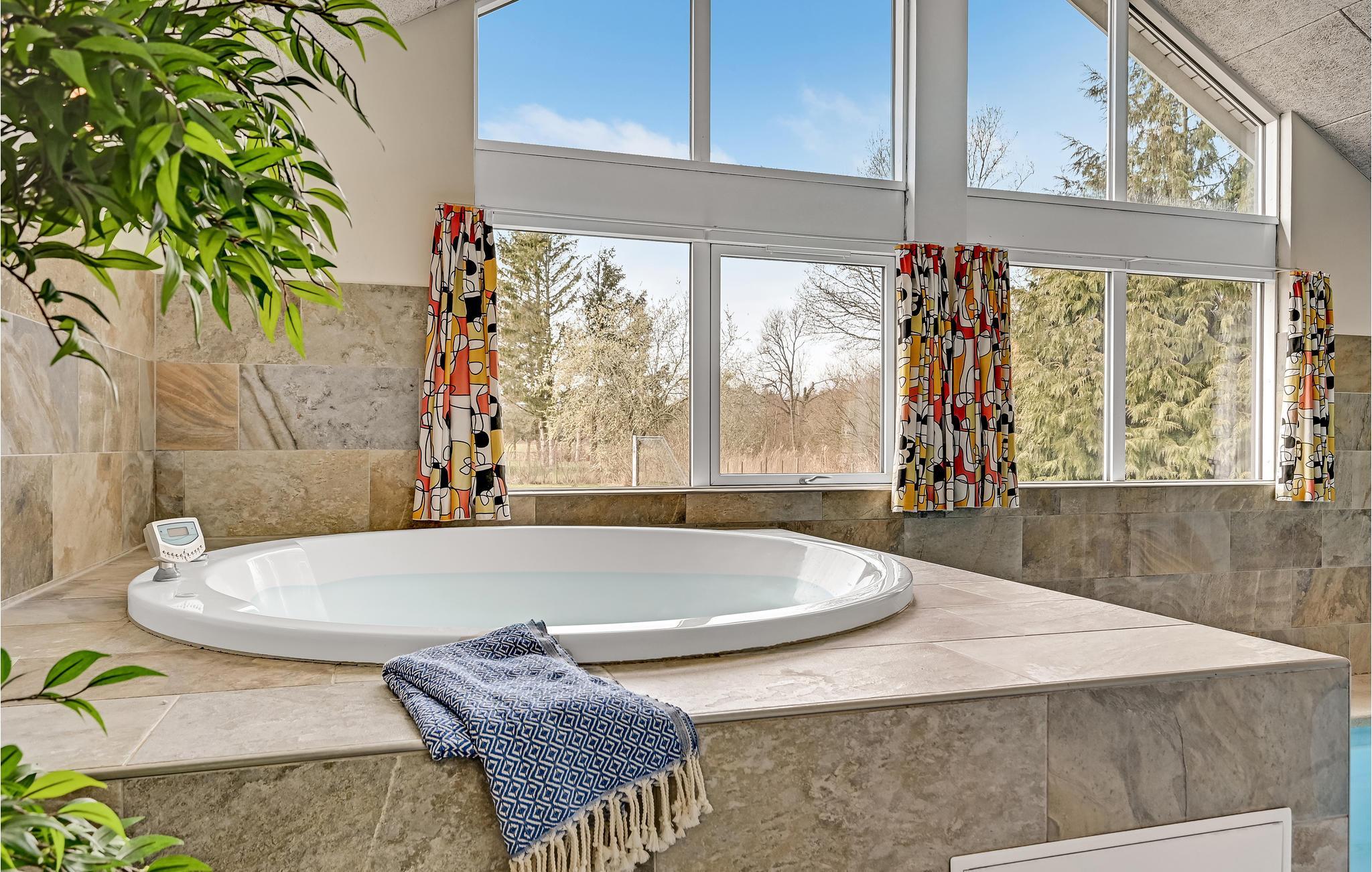 Nyd et luksuriøst feriehus med indendørspool, wellness og nærhed til Fjellerup Strand i naturskønne omgivelser.