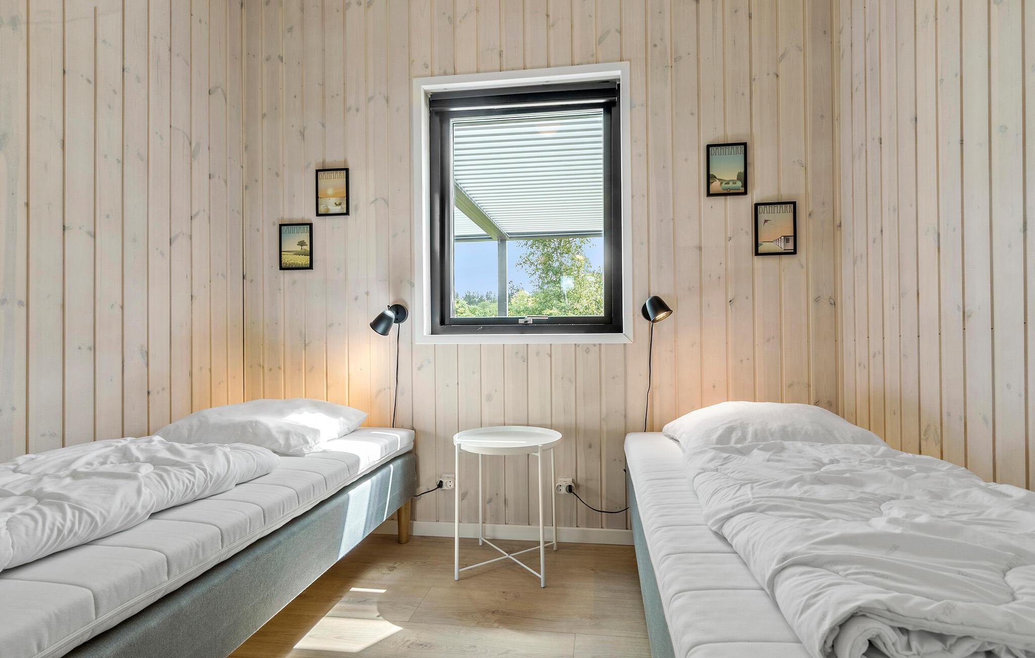 Rummeligt feriehus nær Fjellerup Strand med sauna, spabad, aktiviteter og børnevenlig have.
