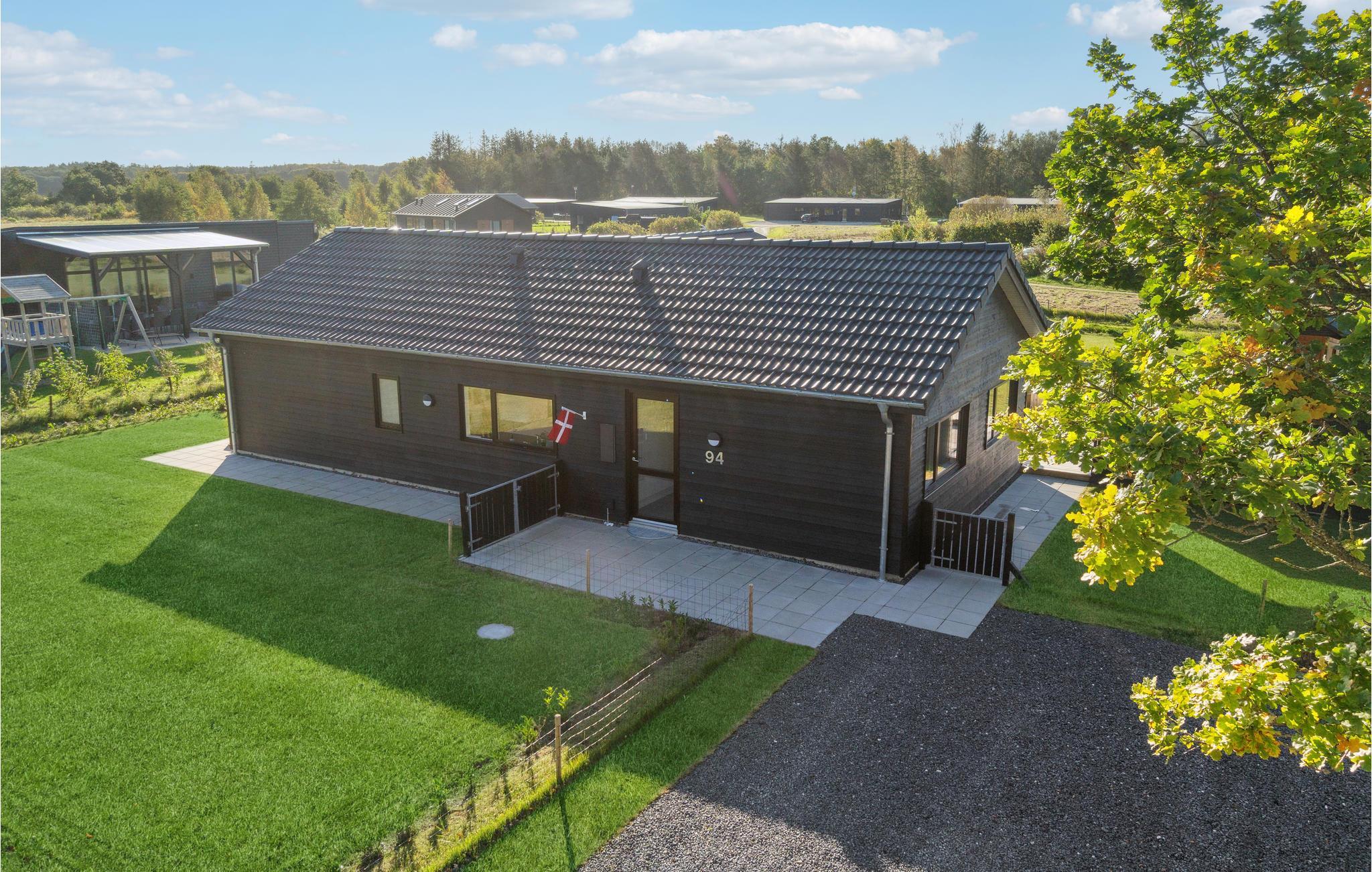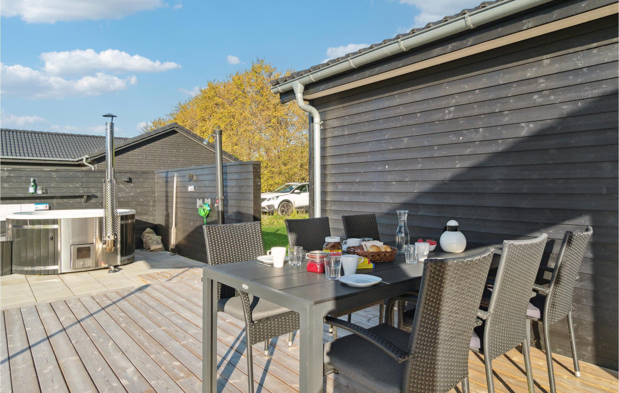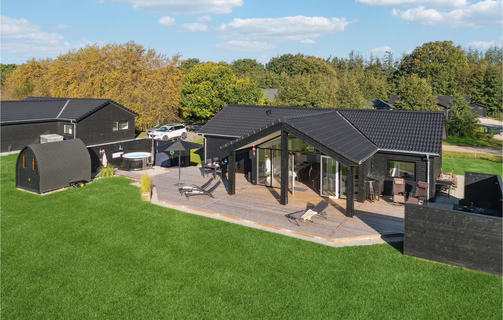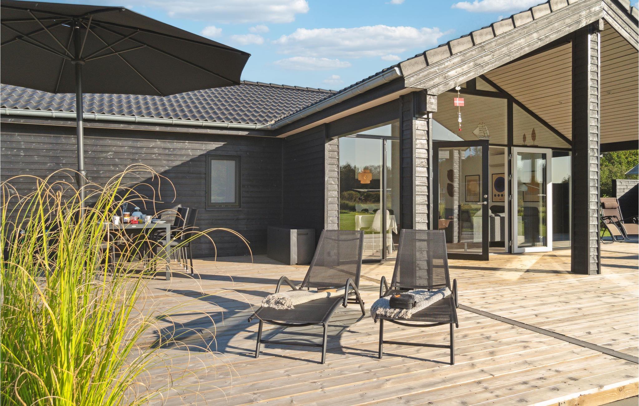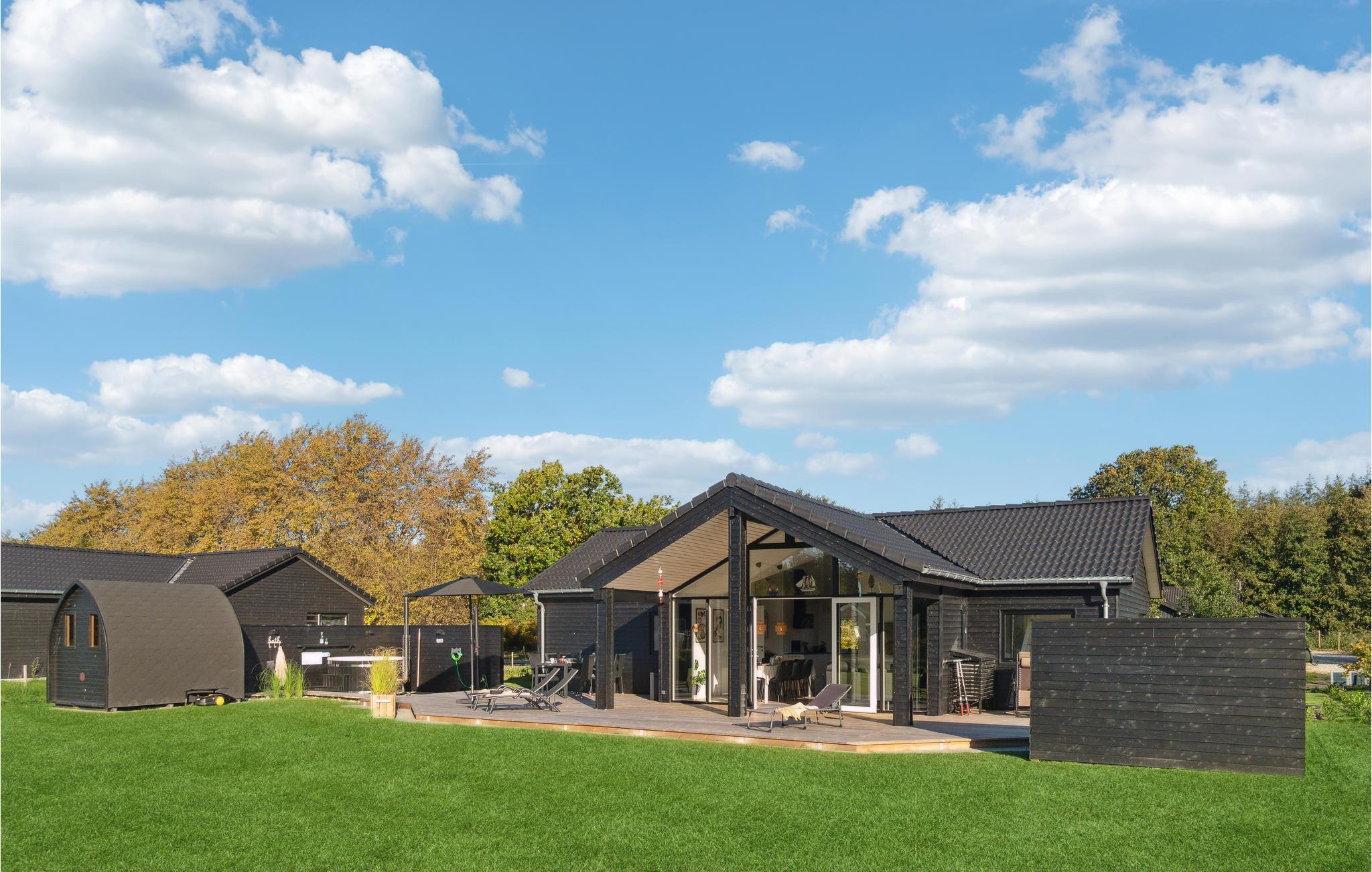 Moderne feriehus med sauna og vildmarksbad tæt på Fjellerup Strand, perfekt til afslapning i naturskønne omgivelser.
