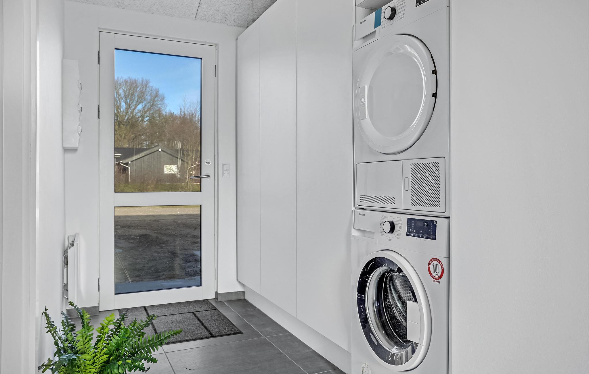 Der venter jer nogle fantastiske feriedage i dette indbydende hus, som ligger i gåafstand fra kysten på Djurslands nordside. Her kan I tilbringe nogle herlige dage i det østjyske og køre et fuldt program - godt afbrudt af pauser i denne flotte oase. De store gulv til loft-vinduer giver jer frit udsyn til de grønne omgivelser, og interiøret er holdt i lyse, rolige farver, så her kan man ikke undgå, at pulsen falder, og skuldrene sænkes.