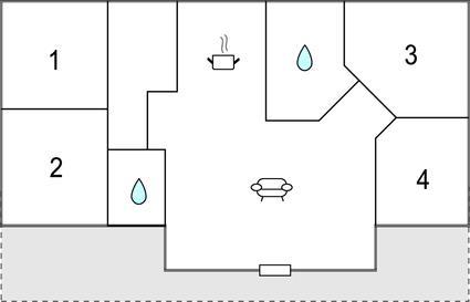 Badeværelse (nr. 1) - WC. Varmt og koldt vand. Bruser