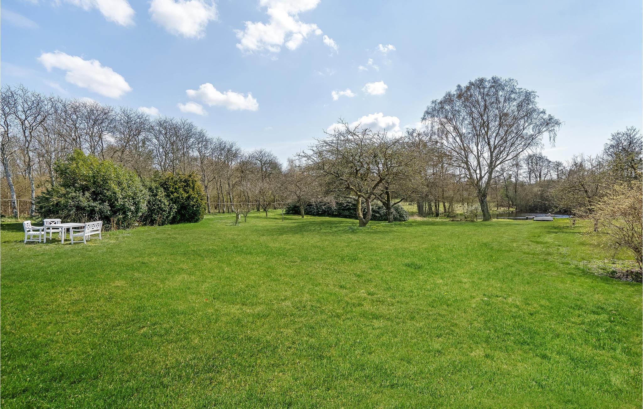 Opholdsstuen fører til den åbne terrasse med havemøbler, som har en smuk flot udsigt til den grønne have og søen. Nyd nogle stille stunder på terrassen med en god bog eller et brætspil med familien, mens I glemmer alt om hverdagens stress og jag. Der er meget fri natur på grunden, hvorfor det er muligt at se rådyr og kronvildt direkte fra sofaen i lejligheden! Hegnet sørger for at holde kronvildtet ude. Der er en stor grund, som er velegnet til leg og aktivitet - også for dyr. I har også mulighed for at slå telt op her.