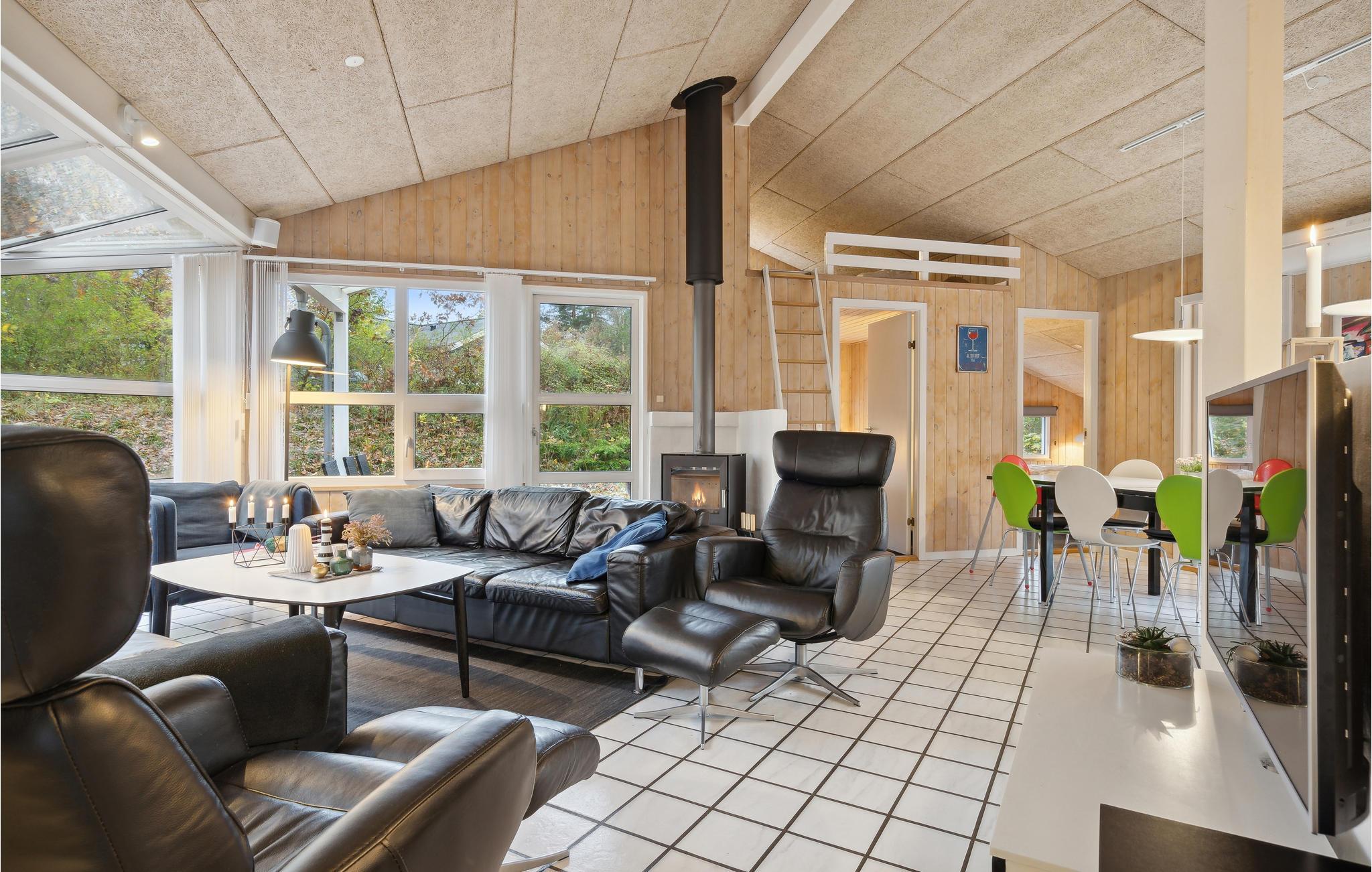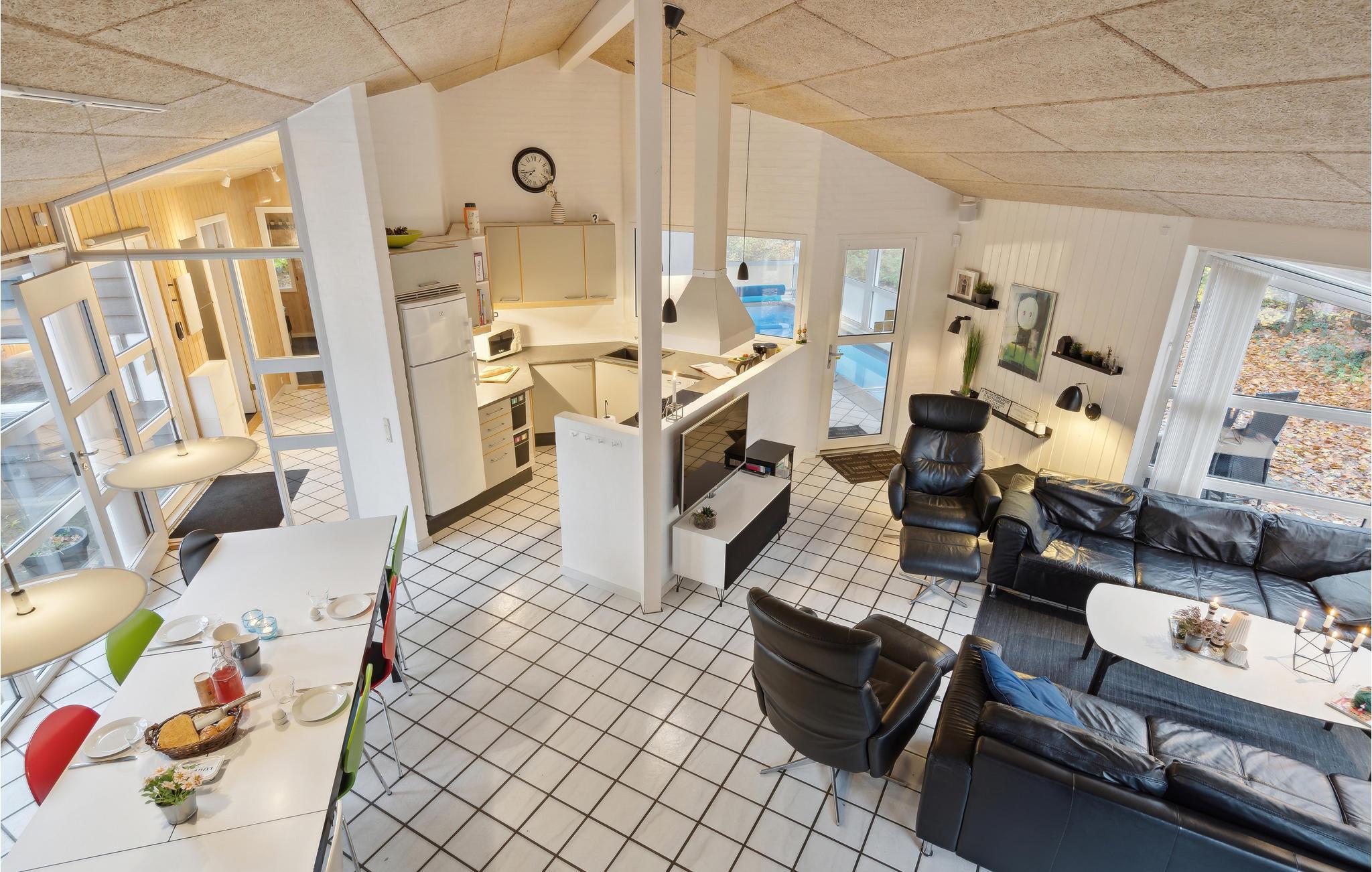 Se frem til jeres ferie i dette rummelige feriehus, hvor der er god plads til en stor familie eller flere familier, der rejser sammen. Husets faciliteter giver jer som familie al den komfort, I kan ønske jer. I kan tilbringe underholdende timer med at lave mad i køkkenet eller spille spil ved spisebordet eller sofabordet. Både store og små vil få særligt store øjne, når de opdager husets private pool, spabad og sauna. Her kan I svømme og plaske eller læne jer tilbage i det boblende vand uanset vind og vejr. Haven, der er omgivet af mange træer, byder også på en stor terrasse, som er det ideelle sted at ligge i solen og grille sammen om aftenen. Se jeres børn hoppe på trampolinen og læg planer for jeres aktiviteter.