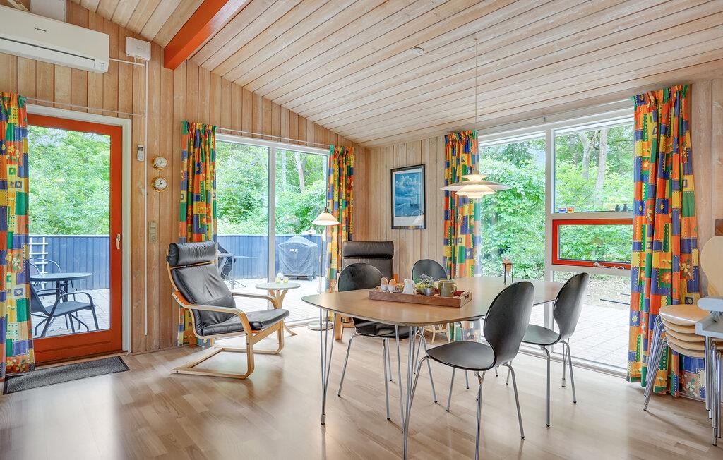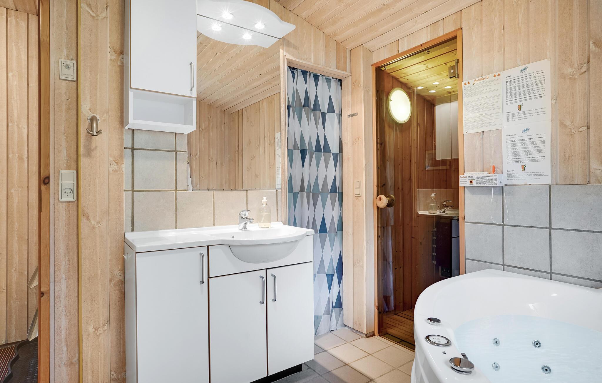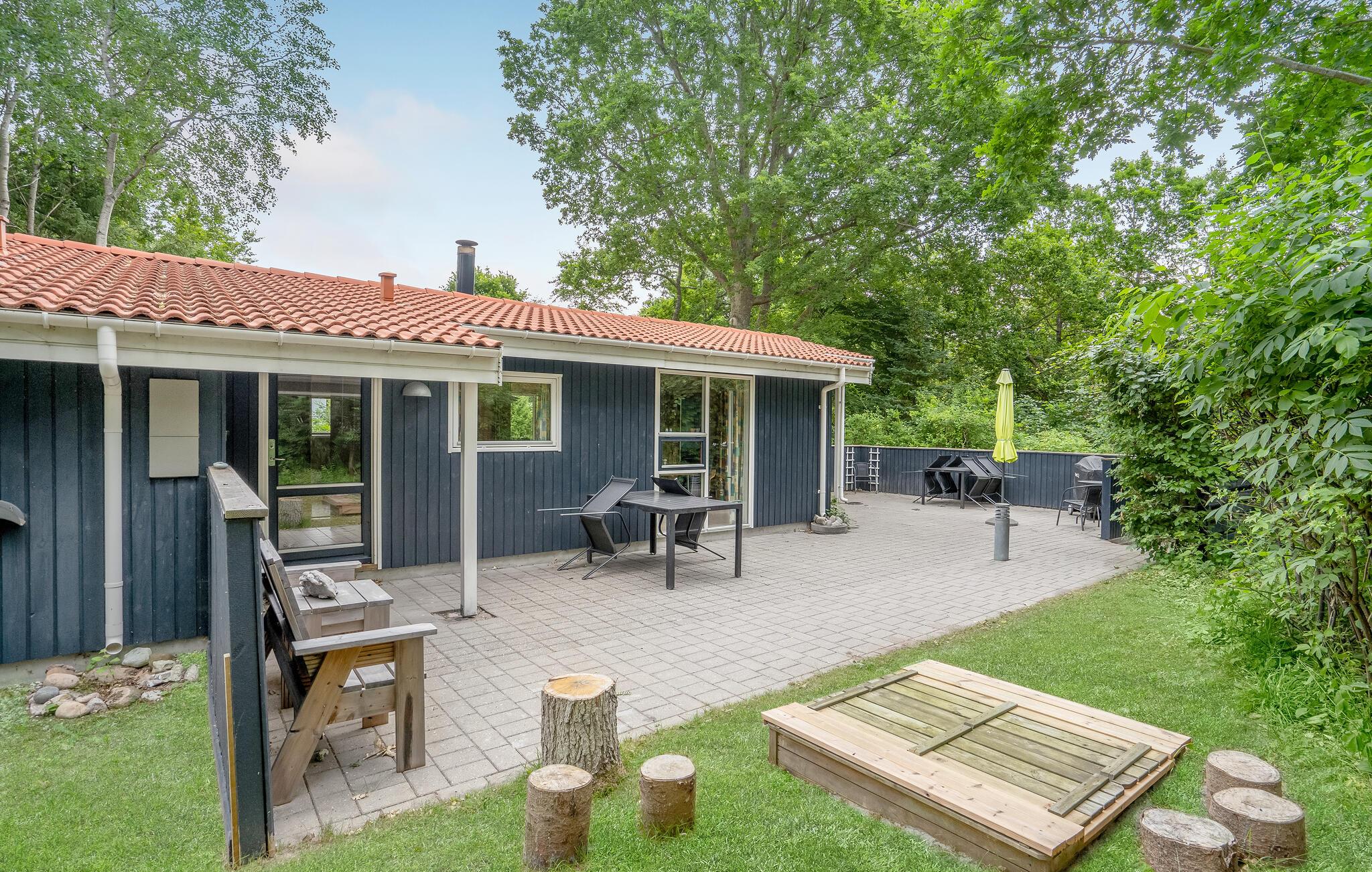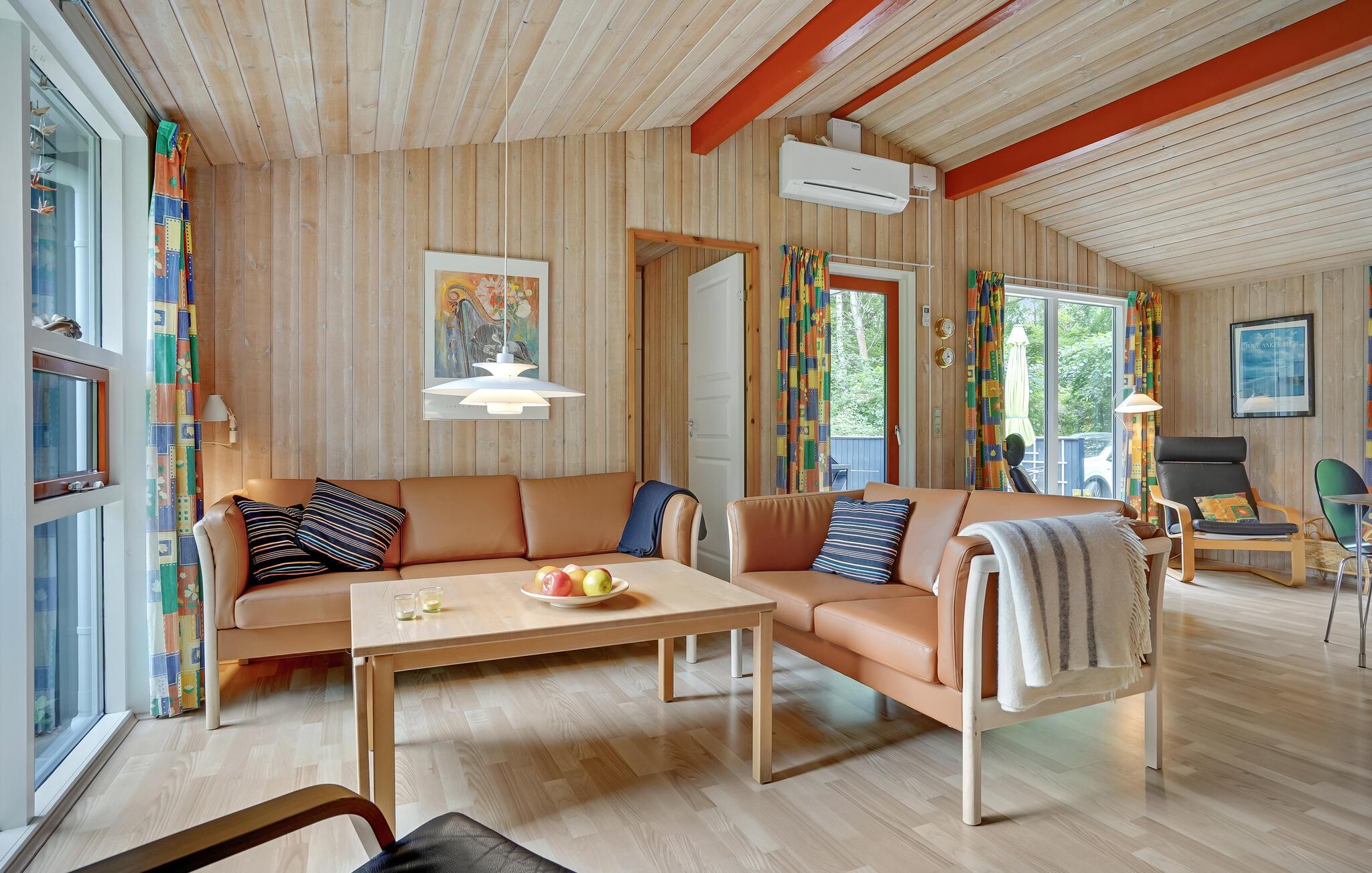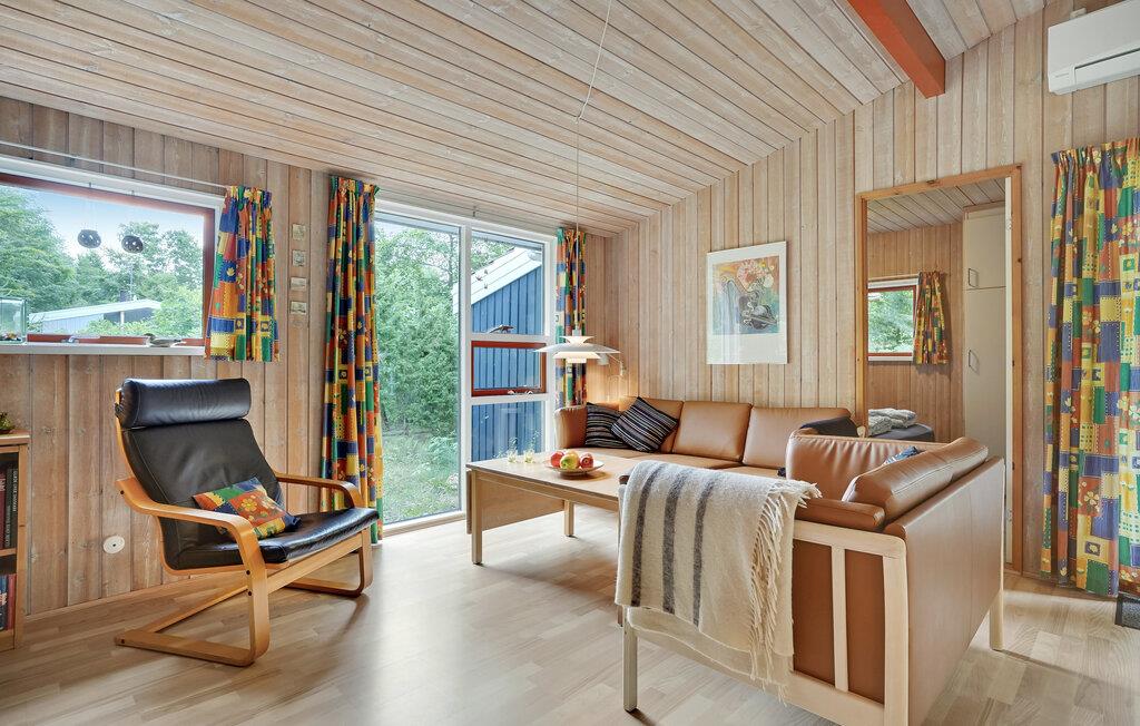 Charmerende træhus med sauna og spabad tæt på familievenlig strand i Fjellerup.