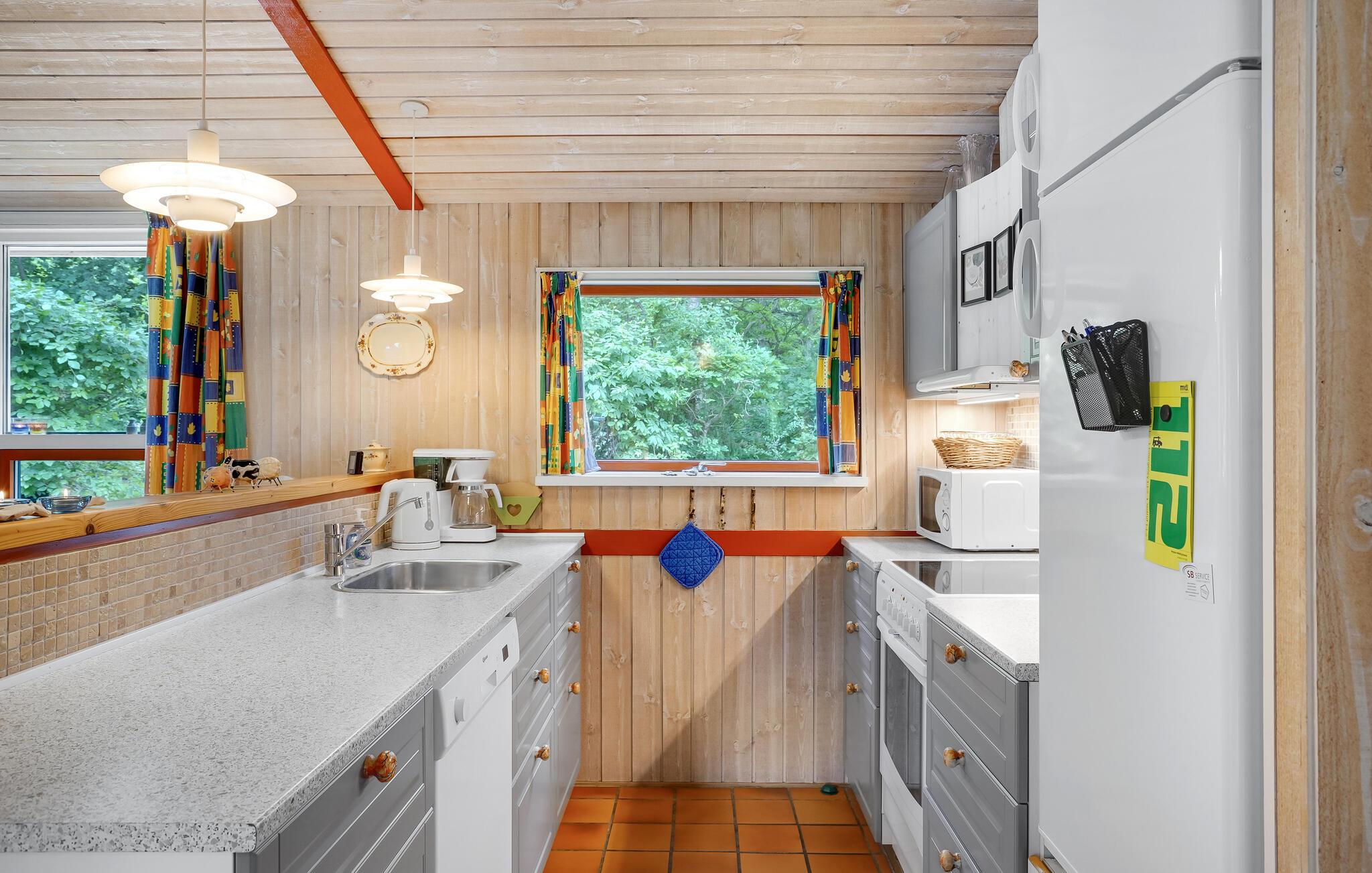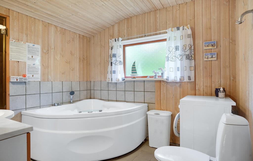 Dette feriehus, bygget af træ, ligger på en dejlig beplantet grund, men samtidig med masser af mulighed for solskin på de flisebelagte terrasser. Huset er velindrettet med bl.a. fire gode soveværelser og to badeværelser og det er udstyret med mange dejlige faciliteter såsom sauna og spabad. Huset ligger i et roligt og naturskønt område tæt ved familievenlig sandstrand og med mange muligheder for gå- eller cykelture i nærområdet. Ved Fjellerup er der mange store skove, og flere herregårde. En tur til Djurs Sommerland bør I tage jer tid til, det er en stor oplevelse for både store og små.