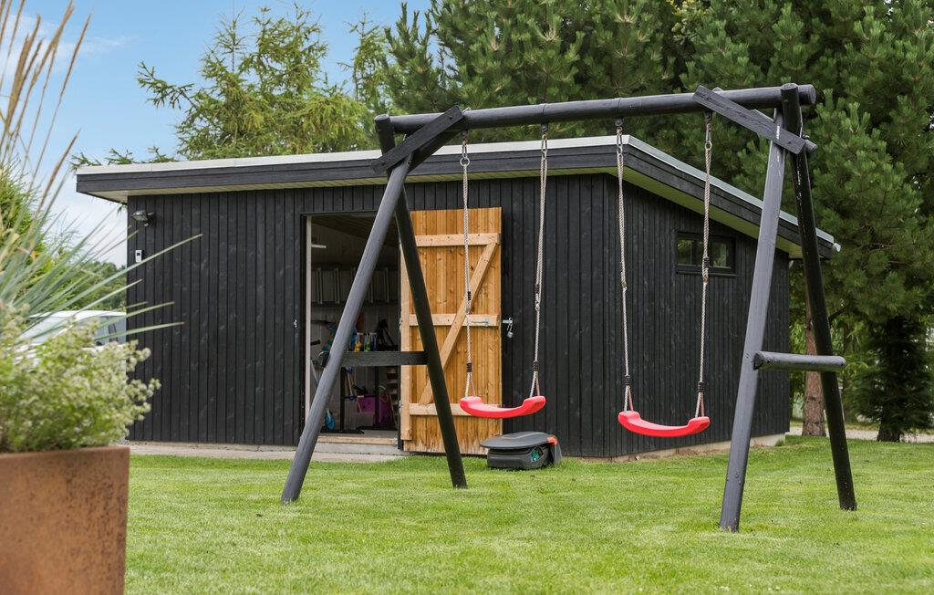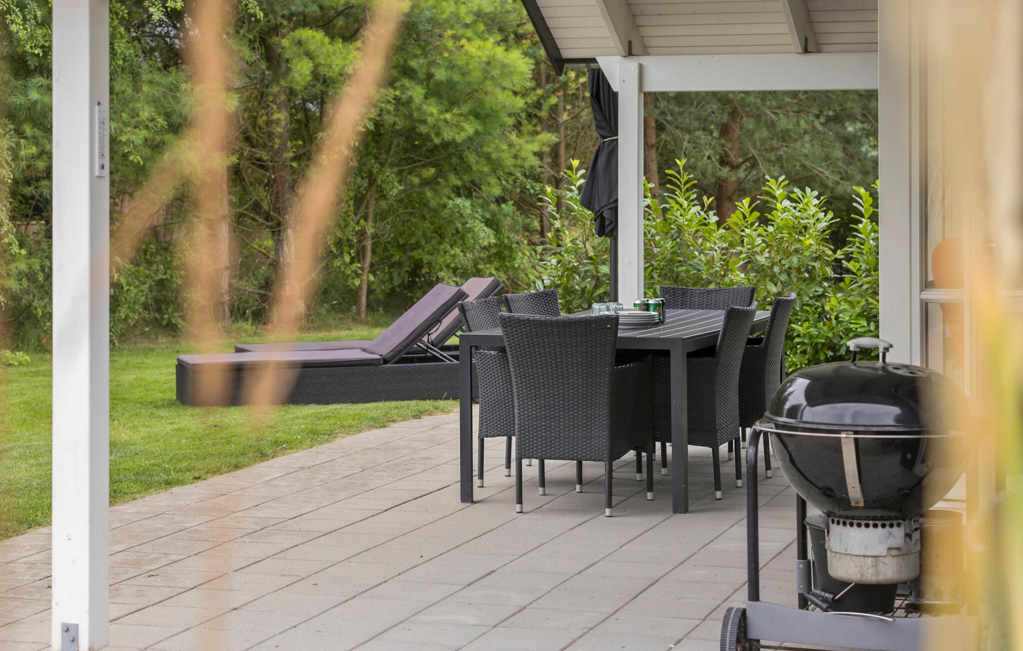 Hyggeligt sommerhus i Fjellerup med stor terrasse, tæt på sandstrand og gode faciliteter til familien.