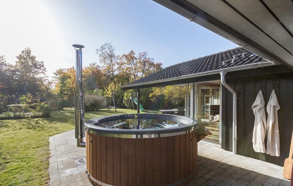 I det gamle sommerhusområde i Fjellerup og i gåafstand til stranden, ligger dette meget velholdte sommerhus på stor, lukket grund med terrasser og en god græsplæne. Køkkenet ligger i forbindelse med stuen, hvor en brændeovn skaber en hyggelig stemning. Her er desuden gode soveværelser samt et stort badeværelse med spabad og sauna samt et ekstra gæstetoilet. Efter en lang dag på farten kan I læne jer tilbage i vildmarksbadet.