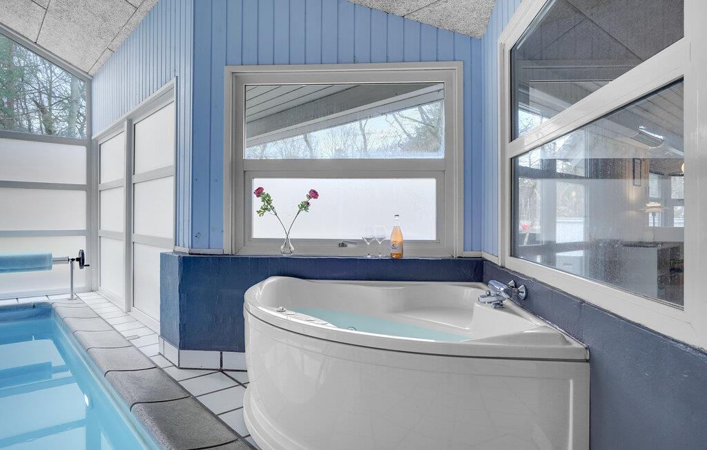 Da huset er opdelt i to afdelinger, hver med 2 soveværelser og et badeværelse, er det ideelt til 2 familier. Poolen har en svømmetræner, hvis I vil holde jer i form. Hvis I foretrækker at slappe af, kan I tage en tur i boblebadet eller saunaen, hvorefter I kan gøre jer komfortable foran tv'et - selvfølgelig med brændeovnen til at give ekstra hyggelig stemning.