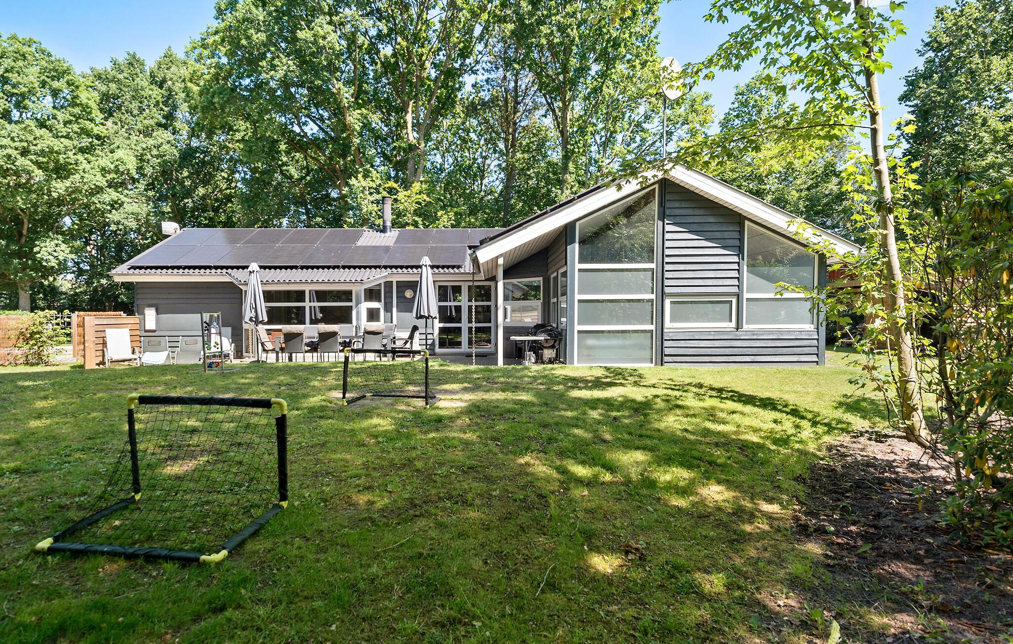 Børnevenligt sommerhus med pool, sauna, spabad og fodboldmål tæt på strand og natur i Fjellerup.