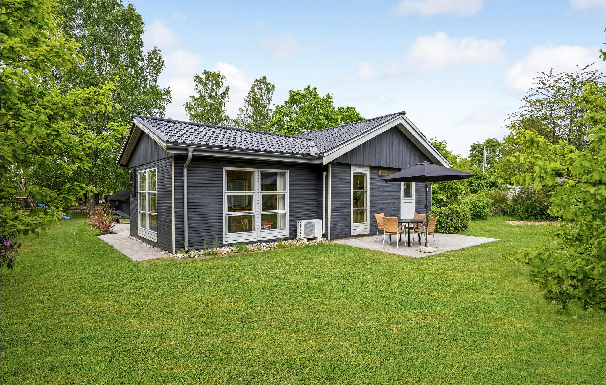 Hyggeligt energivenligt feriehus nær stranden i Fjellerup med moderne faciliteter og plads til kæledyr.
