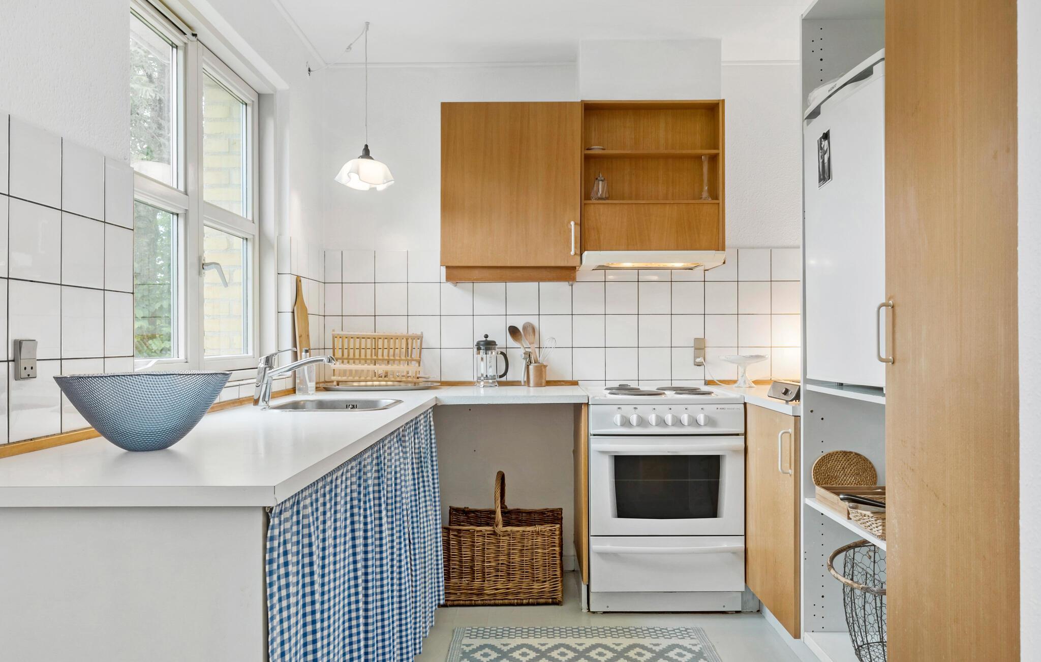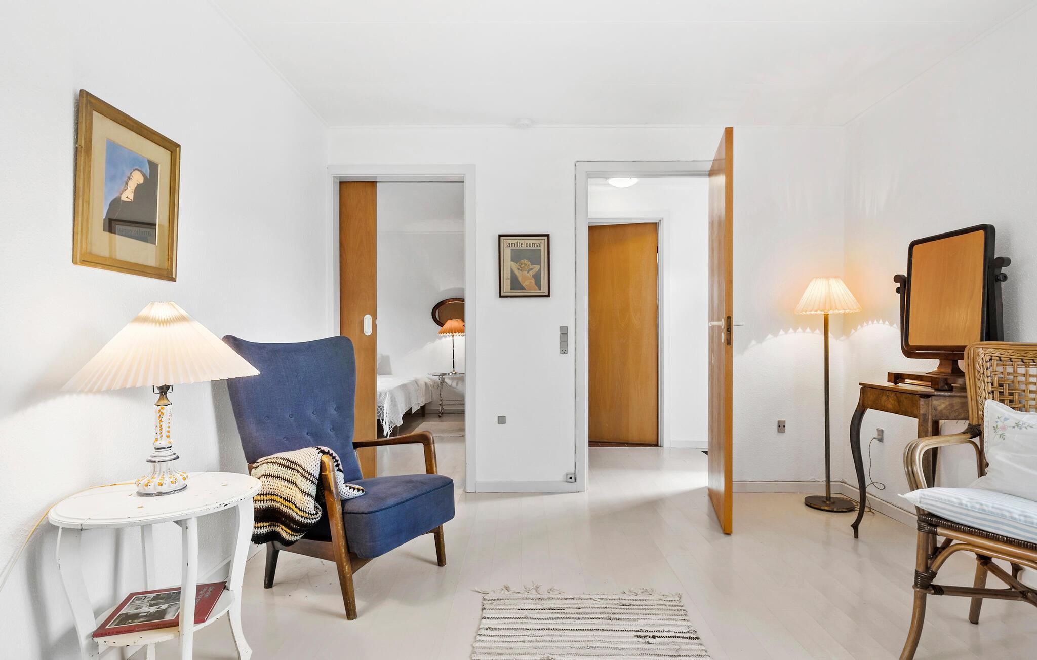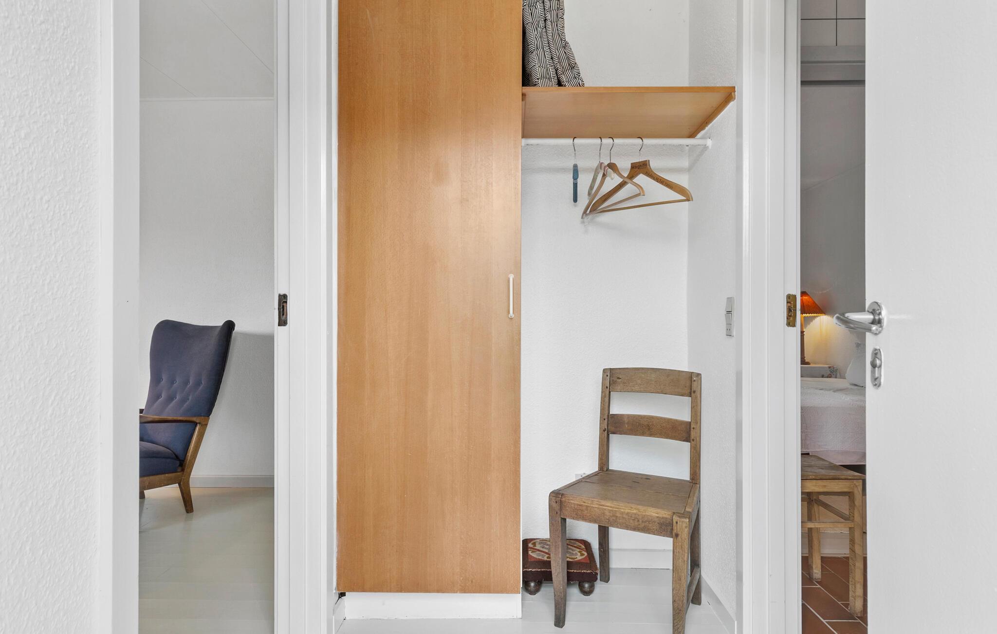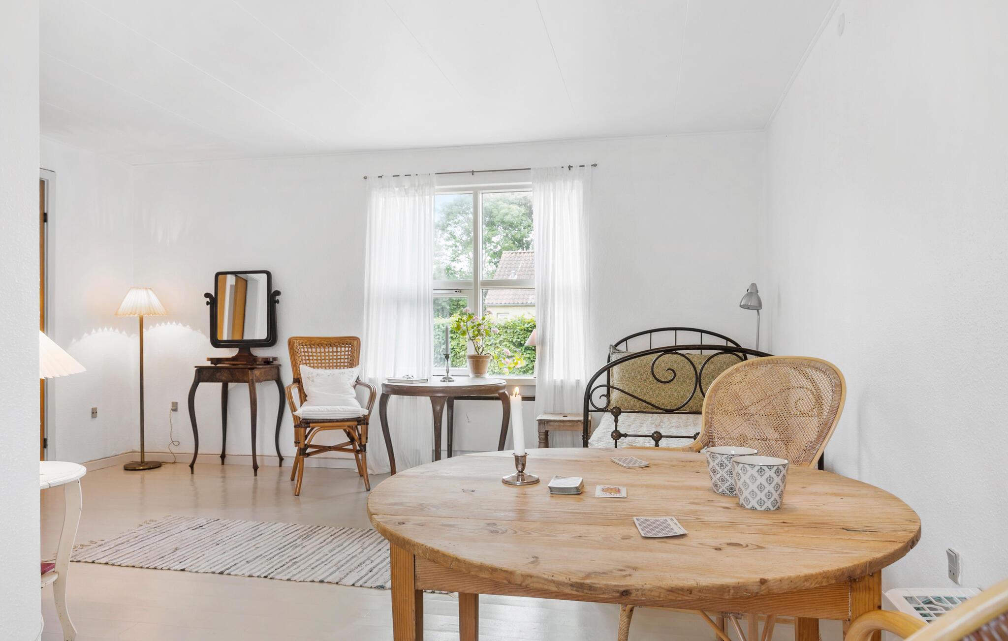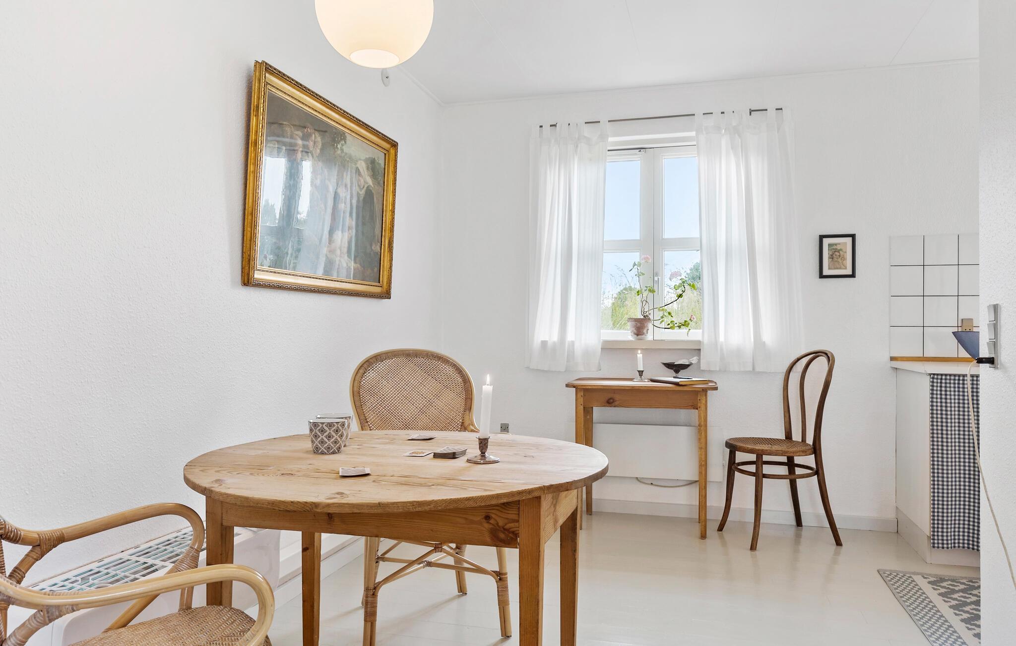 Hyggeligt feriehus i Nykøbing Mors med charmerende træmøbler og rolig atmosfære, perfekt til afslapning og naturoplevelser.