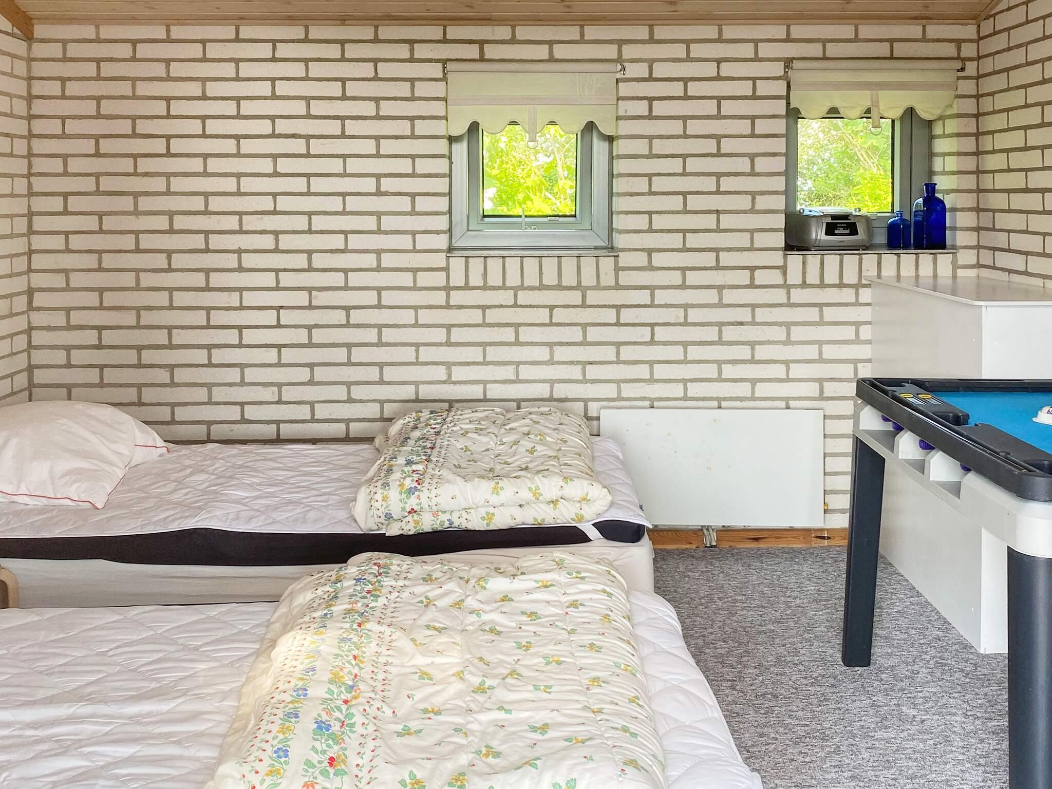 Sommerhuset er indrettet således, at de 4 soveværelser er adskilt, med 2 i selve sommerhuset og 2 i annekset. Alle soveværelser er også adskilt af et badeværelse. Adgangen til annekset er nem og ubesværet, da den har direkte adgang fra den overdækkede terrasse. Hvis du har lyst til at sove udenfor og stirre på stjernerne, er der også et shelter til rådighed i haven. Læg dertil mulighed for udeliv med den store grund med stor græsplæne/bålplads og gynge til børnene.