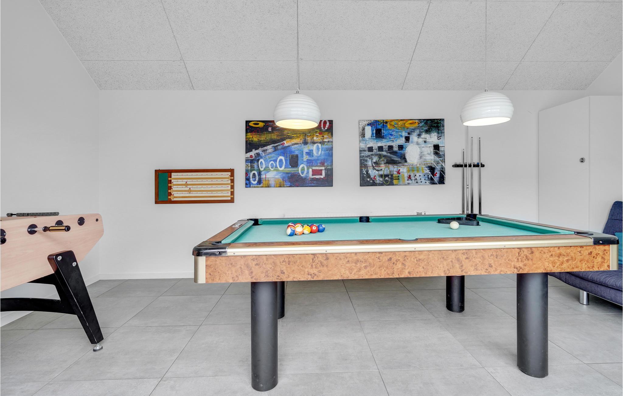 Dette pragtfulde feriehus fra 2012, ligger ved Flovt strand. Huset er smagfuldt og lyst indrettet, samt moderne møbleret. Dejligt køkken/alrum, gode soveværelser og flotte badeværelser. Her har I alt hvad hjertet kan begære, hvis I gerne vil have en aktiv ferie. Der er et stort indendørs pool område, hvor I kan tage jer en dukkert uanset vejret, slappe af i saunaen eller nyde boblernes massage i spaen. Huset har separat aktivitets område, med både bordfodbold, poolbord og andre aktiviteter. Udendørs er der legeredskaber til børnene samt et ude spa. I kan også slappe af på de dejlige terrasser. Huset ligger tæt ved områdets absolut bedste badestrand. Huset er et godt udgangspunkt for udflugter til f.eks. Oplevelsesparken Universe i syd, til Legoland mod nord. I området er der mange nye huse på vej, og der vil på nogle af grundene være igangværende arbejde.