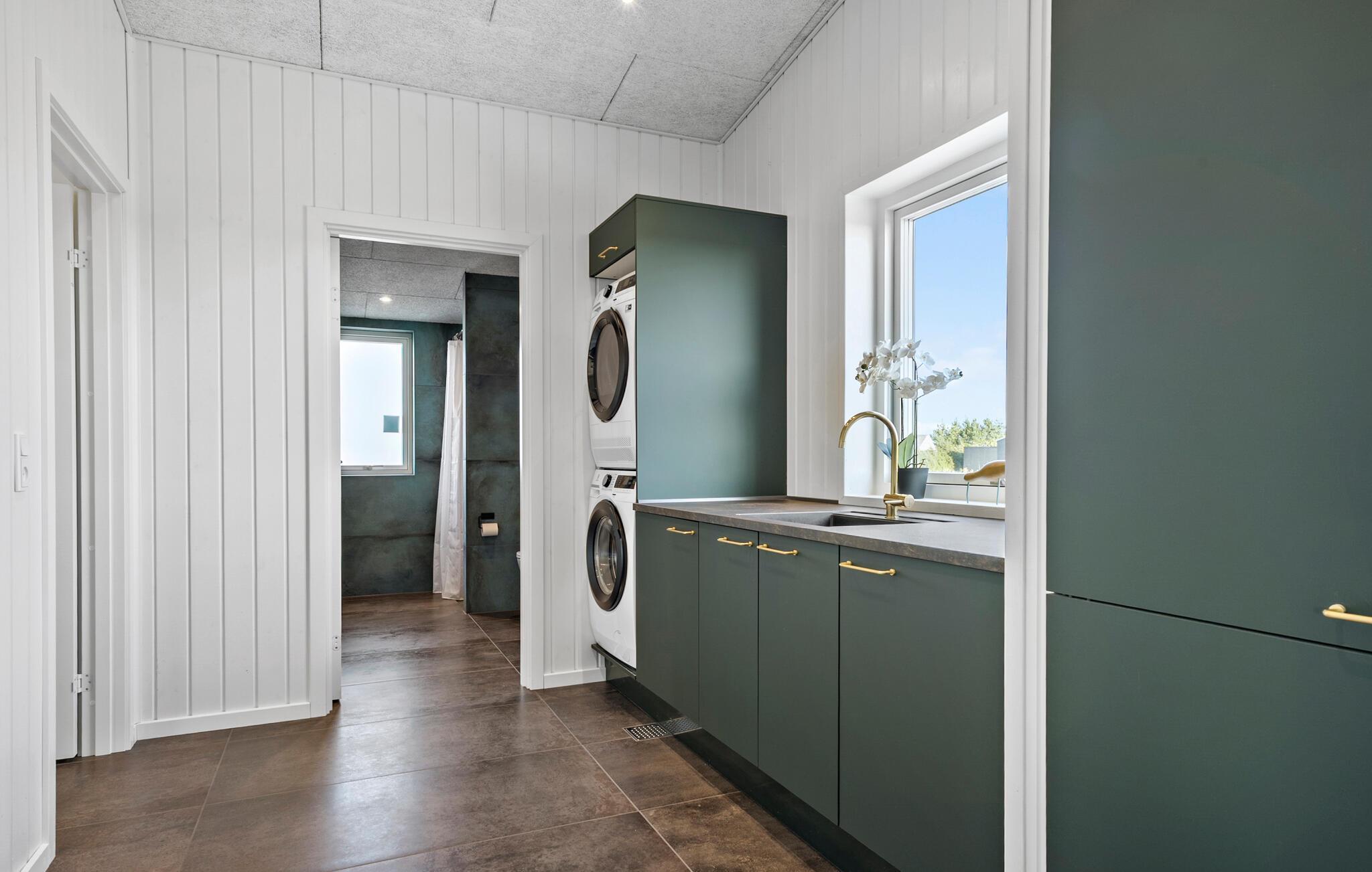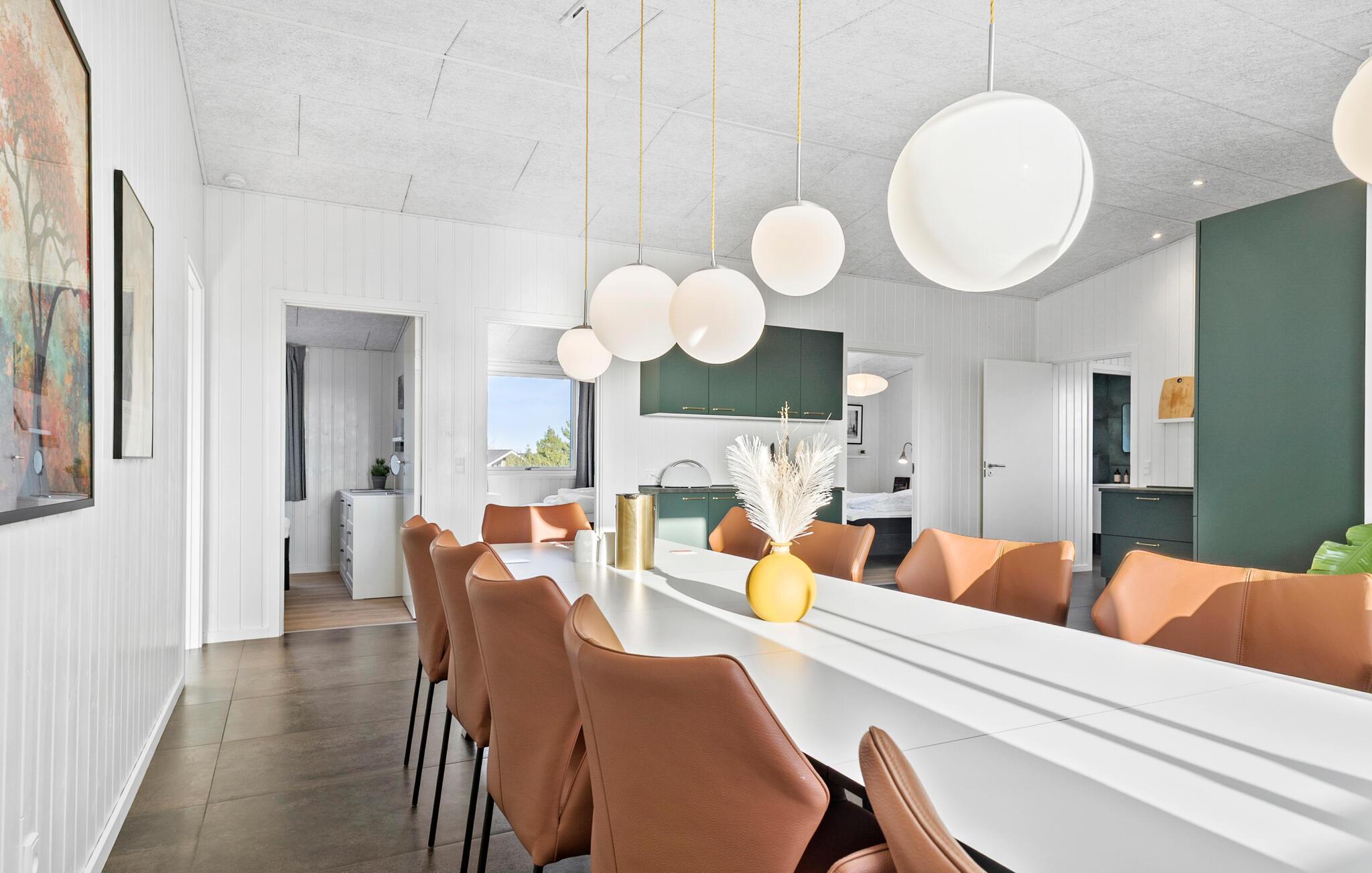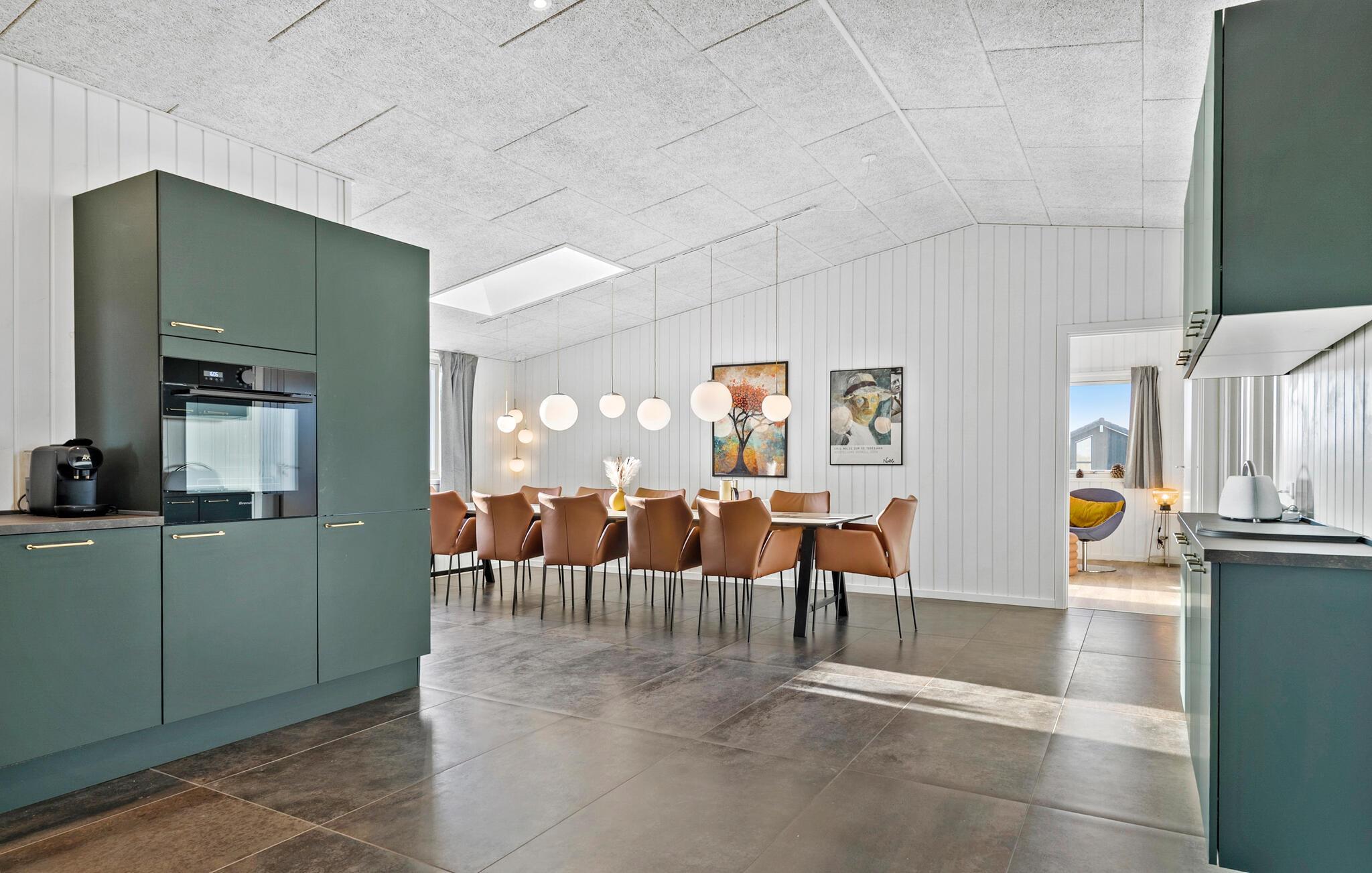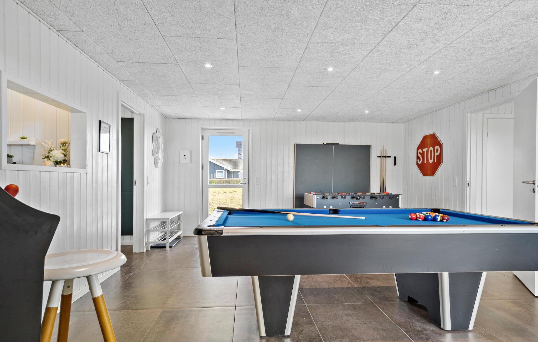 Dette rummelige sommerhus med plads til to familier eller en større gruppe er den perfekte oase til at komme væk fra det hele og nyde den friske luft nær kysten. I det rummelige, moderne køkken kan I tilberede lækre måltider og servere dem i den elegante stue. Læn jer godt tilbage i sofaen og nyd freden og roen efter dagens udflugter. Hvis I trænger til at røre jer lidt, kan I snuppe et spil bordfodbold eller billard i aktivitetsrummet, lige som I kan tage en dyst på Playstation.