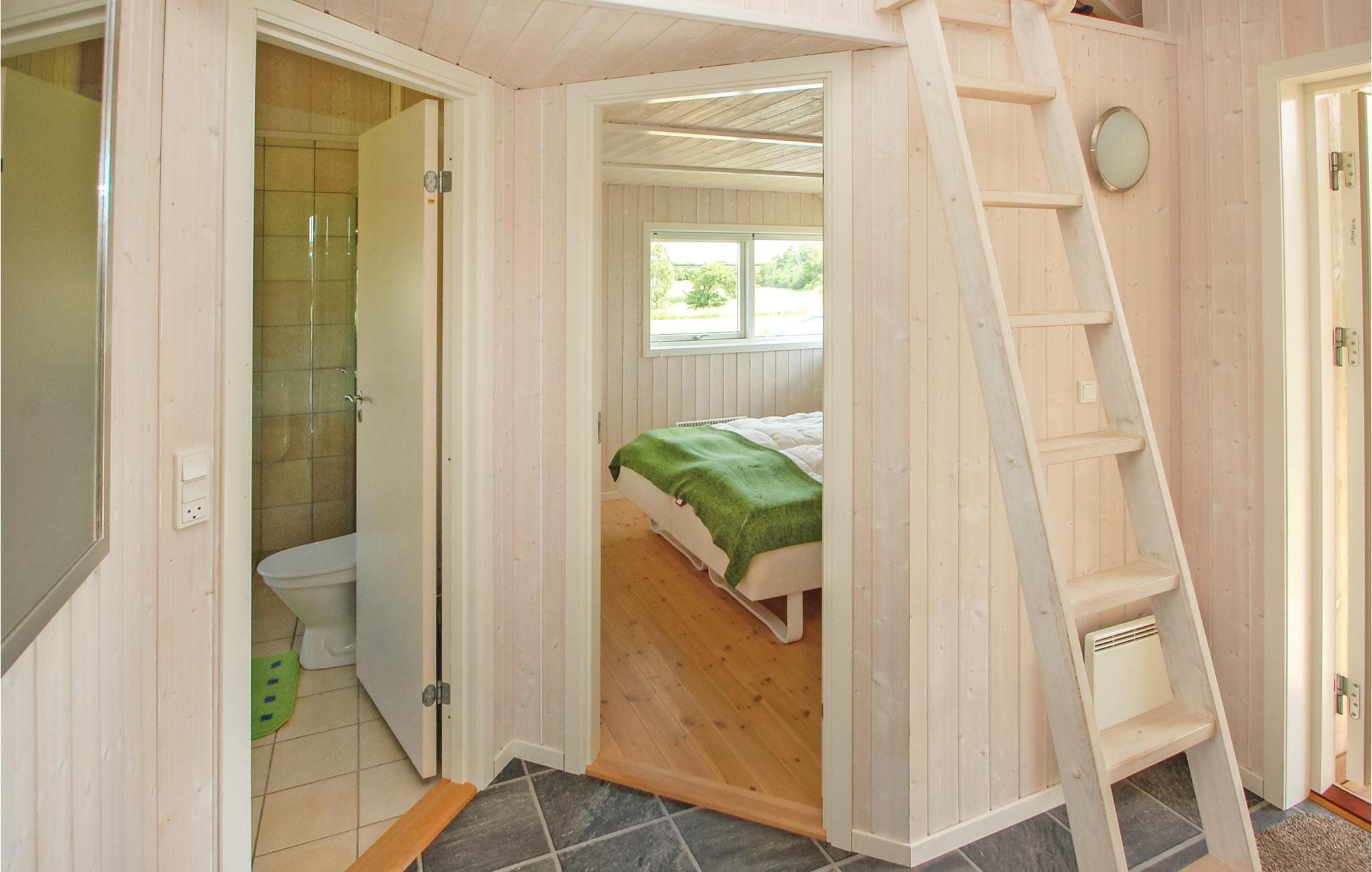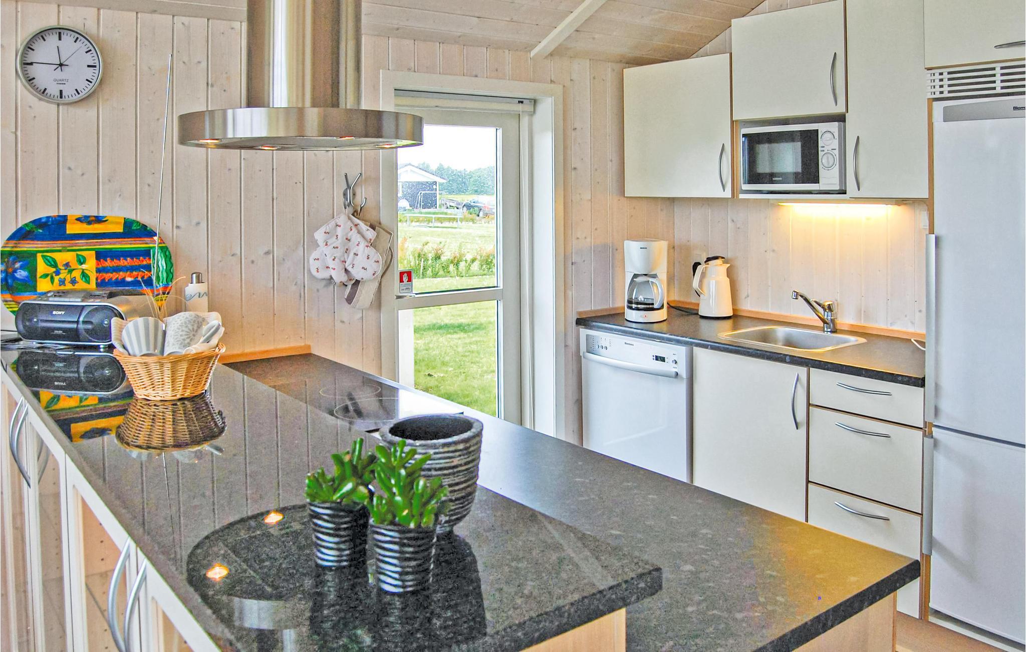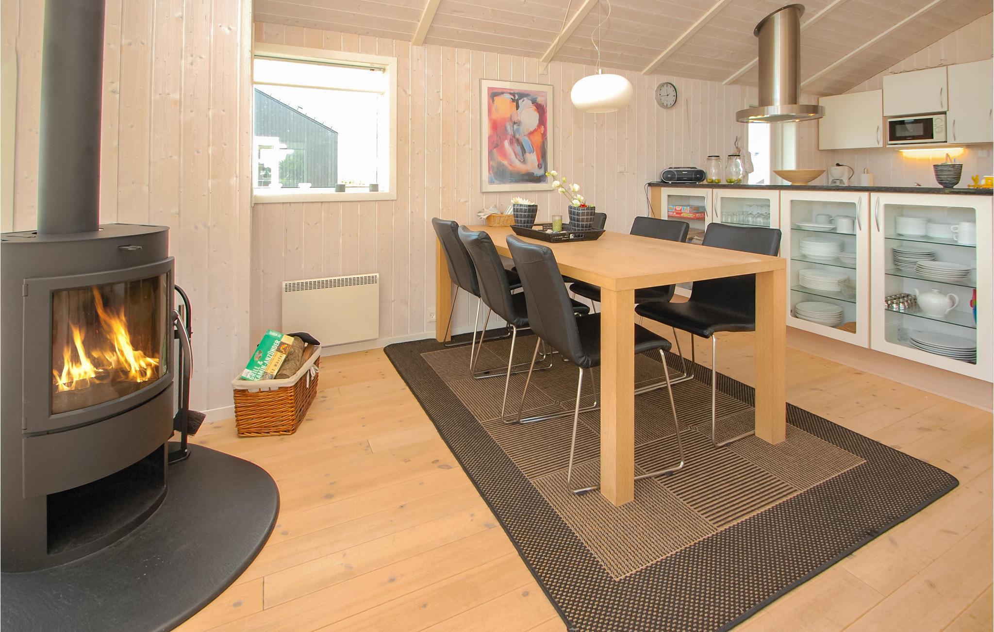 Velkommen til dette indbydende feriehus. Det veludstyrede køkken ligger i åben forbindelse med den pænt møblerede stue med brændeovn, således at feriekokken/kokkene kan holdes med selskab af de gæster, der slapper af i stuen. Badeværelset er udstyret med et spabad til to personer, hvor I virkelig kan slappe af efter en aktiv feriedag.