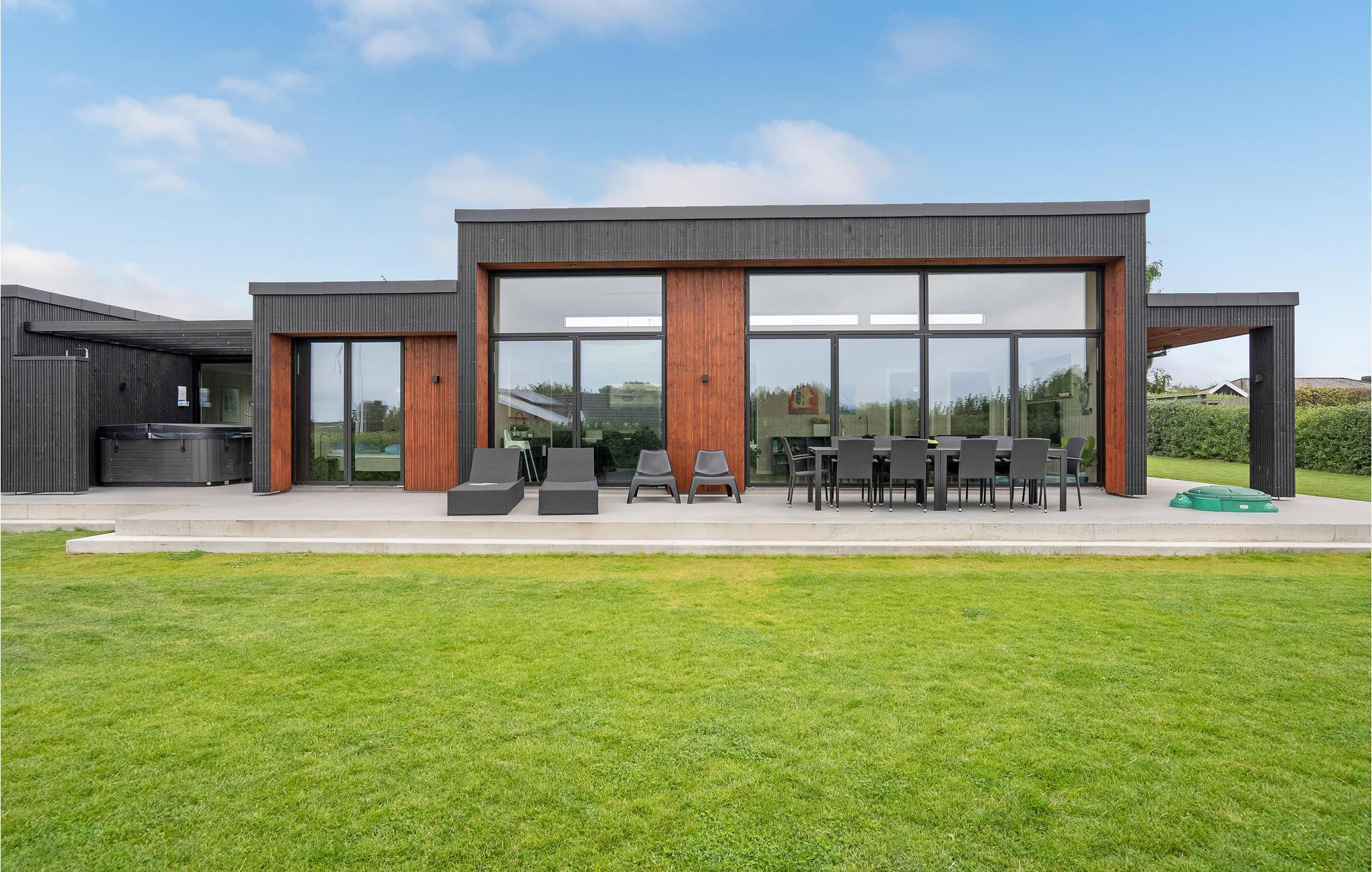 Moderne luksushus ved Flovt Strand med spa, stor terrasse og plads til familie og venner.