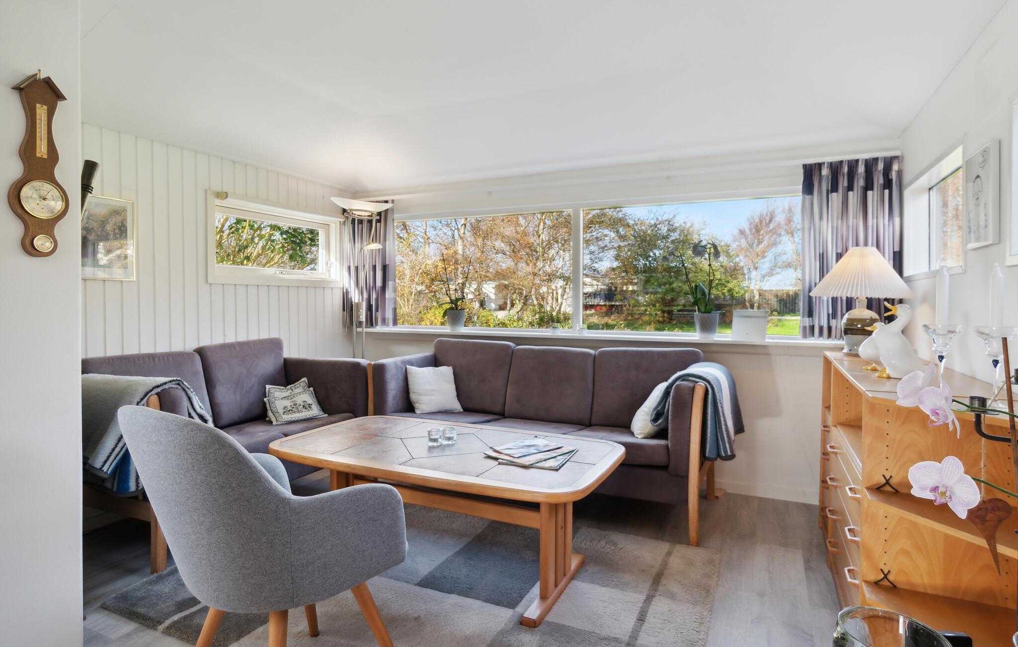 Der er lagt op til en skøn familieferie med masser af tid til strandture og en skøn base, hvor afslapning er i højsædet. Sommerhuset er godt udstyret med moderne faciliteter, så her skal I bare læne jer tilbage. I kan også se frem til gode stunder i den ugenerte have, hvor I kan kaste jer over boldspil med børnene, mens grillen varmer op på den hyggelige træterrasse.