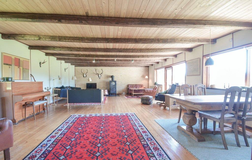 På en kæmpe skov- og plantagegrund mit i Nationalpark Thy finder I dette fantastisk beliggende feriehus. Her er I omgivet af både hede og skov, og kan nyde krondyrenes smælden, se rådyr gå i haven og i det hele taget udforske et rigt dyre- og naturliv. Her er der ingenting der forstyrer, når I sidder på terrassen med udsigt til skov og den lille sø, der ligger på grunden. Hvis I medbringer egen hest, er huset også ideelt, i det det råder over både indhegning og overdække til heste. Her er huset der skal opleves, hvis I er til natur og beliggenhed fremfor vild luksus og bekvemmelighed. Selve huset fremstår på mange områder i sine oprindelige stand, men er naturligvis løbende vedligeholdt og renoveret. Fremhæves skal især den store jagtinspirerede opholdstue med brændeovn, eller den hyggelige spisestue med langbord. Fra begge stuer er der direkte adgang til terrassen og det store udeareal.