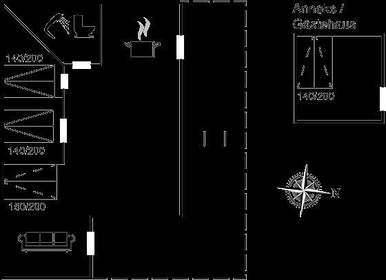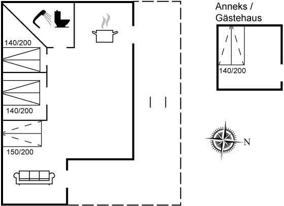 Der er i alt 3 soveværelser. Sovepladserne fordeler sig på: 4 sovepladser i dobbeltsenge. 4 sovepladser i sovesofa (dobbelt).- 2 af disse sovepladser befinder sig i et anneks. Derudover er der 1 stk. barneseng.