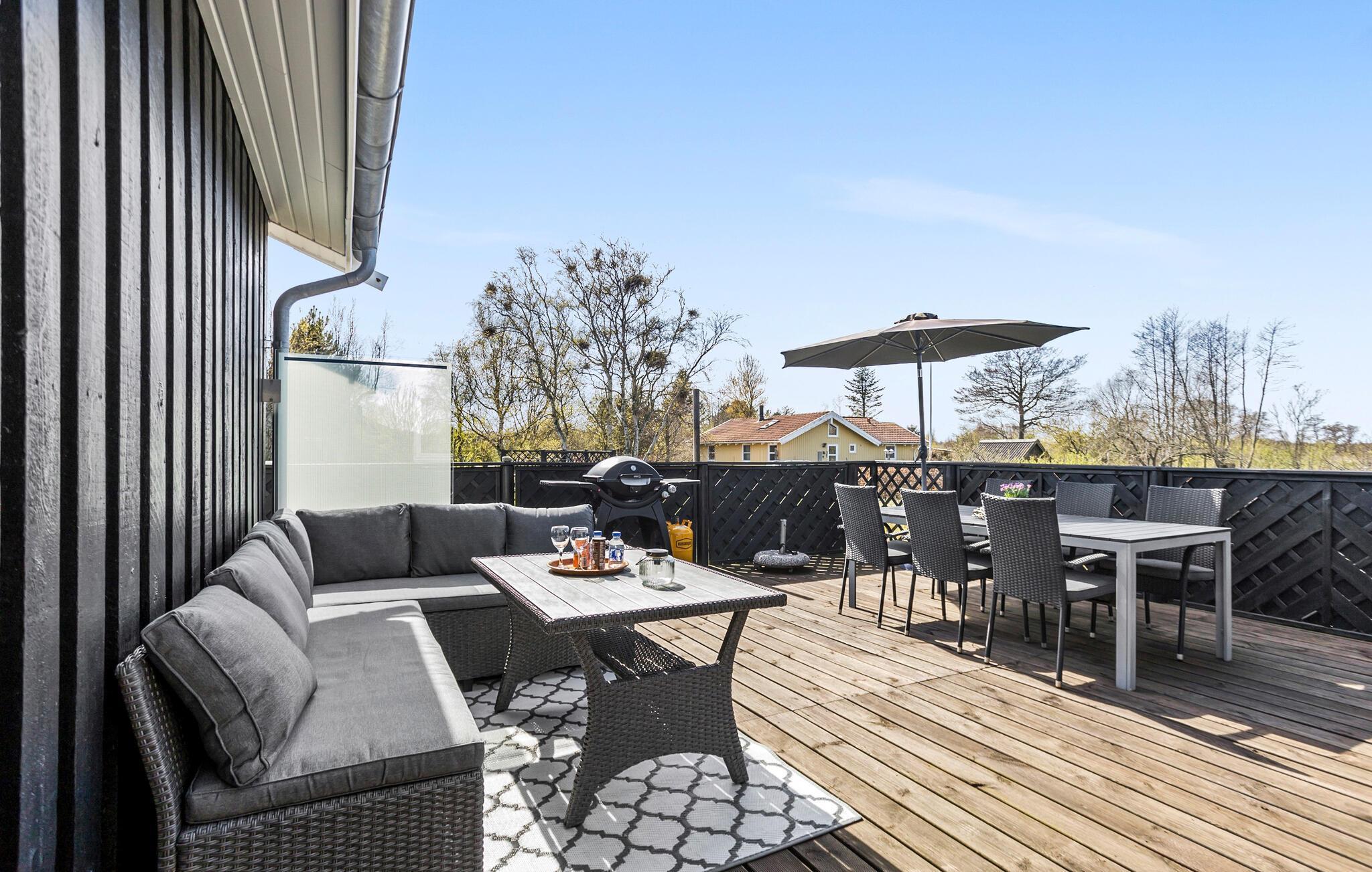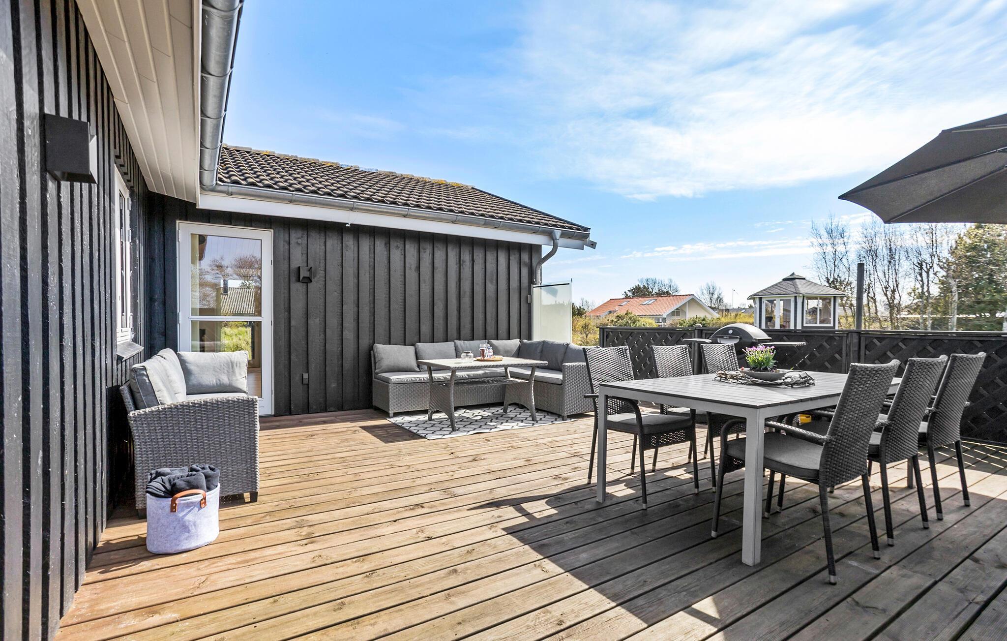 Når solen skinner, kan I nyde den i fulde drag på den store træterrasse, der omgiver det meste af huset. Begynd dagen med en god kop kaffe i den friske luft, slik en masse sol i løbet af haven og lad børnene lege i haven, inden familiens grillmestre tilbereder nogle saftige bøffer under aftensolen. Når solen har mistet sin kraft, kan I sætte jer godt til rette med et brætspil eller et glas vin i pavillonen og nyde, at I ikke skal tidligt op dagen efter.