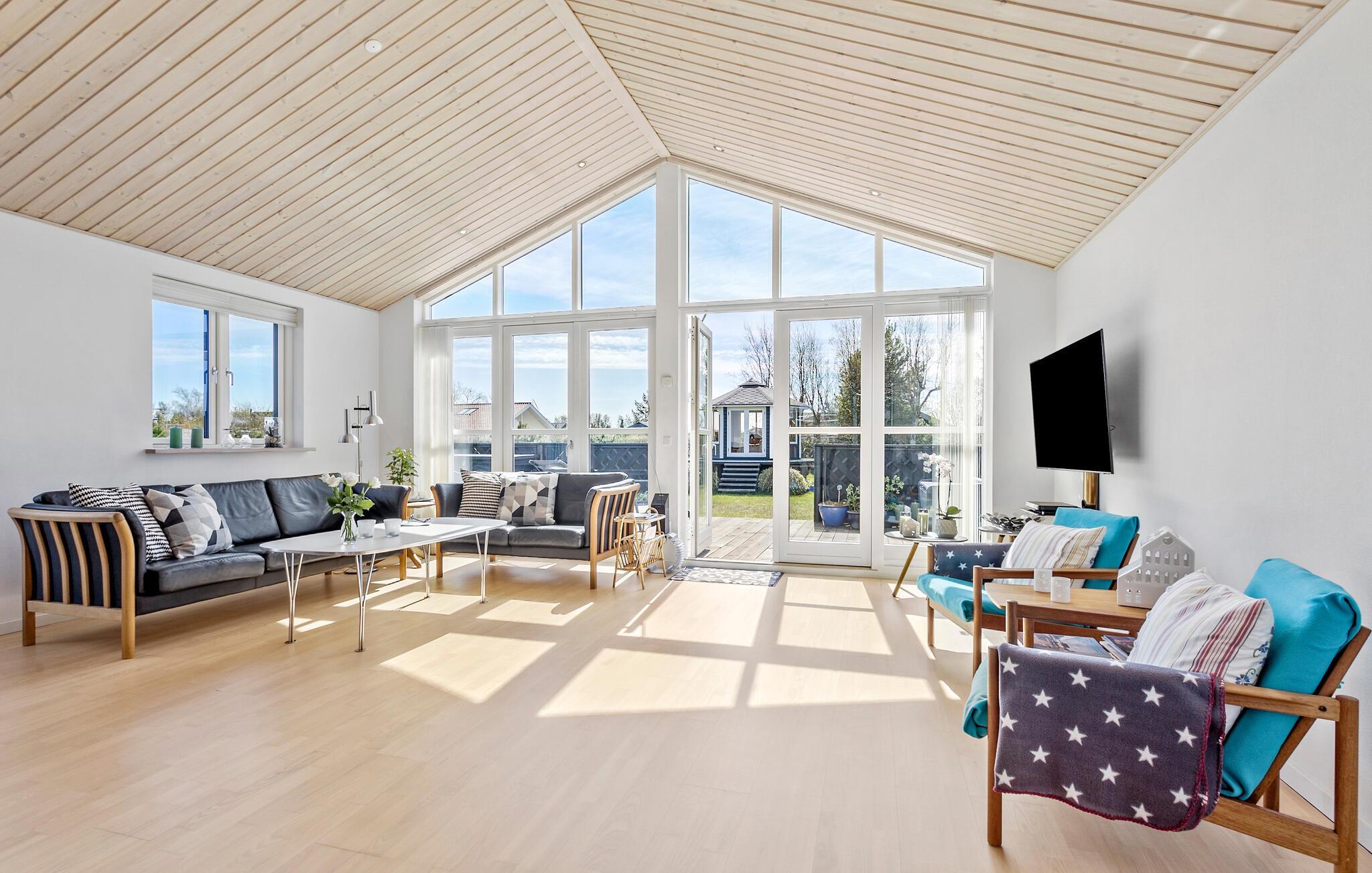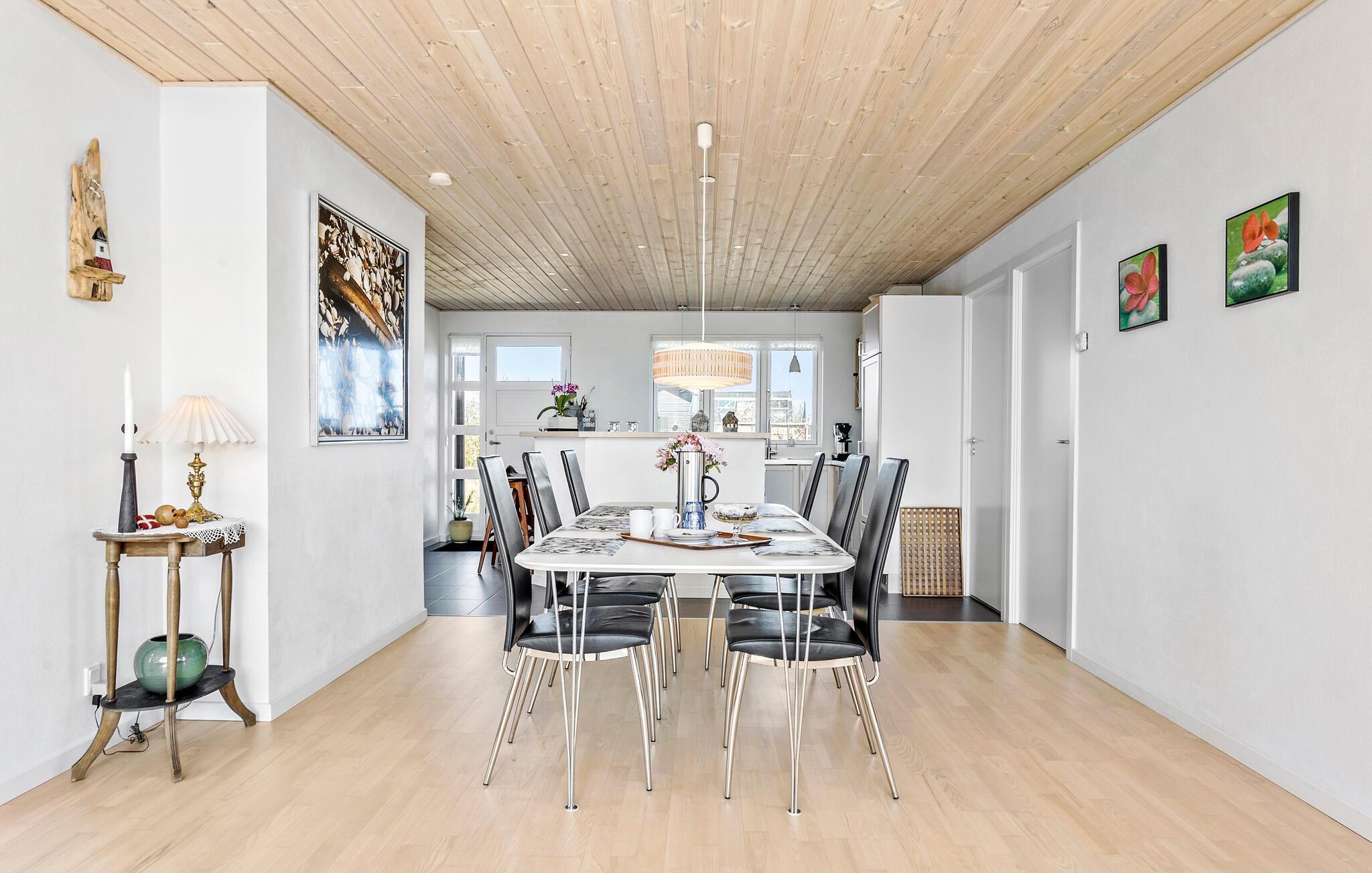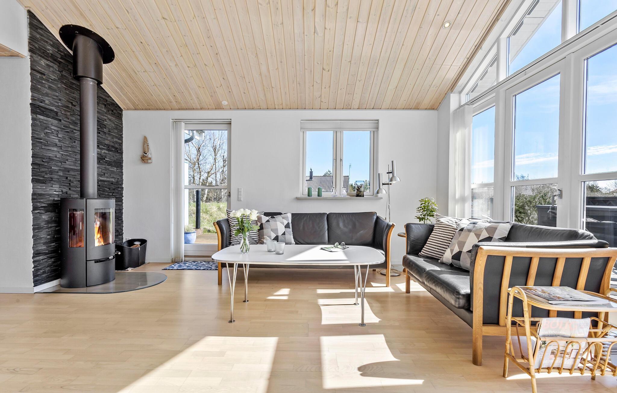 Velkommen til dette indbydende hus, der ligger i et roligt område lidt nord for Frederikshavn og med udsigt over Kattegat. Her får I som familie alt, I behøver til et fremragende ophold i det nordjyske. Huset er flot indrettet med loft til kip, varme træpaneler og store vinduespartier, der giver et lækkert lysindfald til den åbne stue og giver udsigt til terrassen og pavillonen. Hvis vejret bider lidt, kan I tænde op i brændeovnen, der giver varme og det helt rette lydtapet til madlavningen, måltiderne og sofahyggen efter en skøn feriedag.
