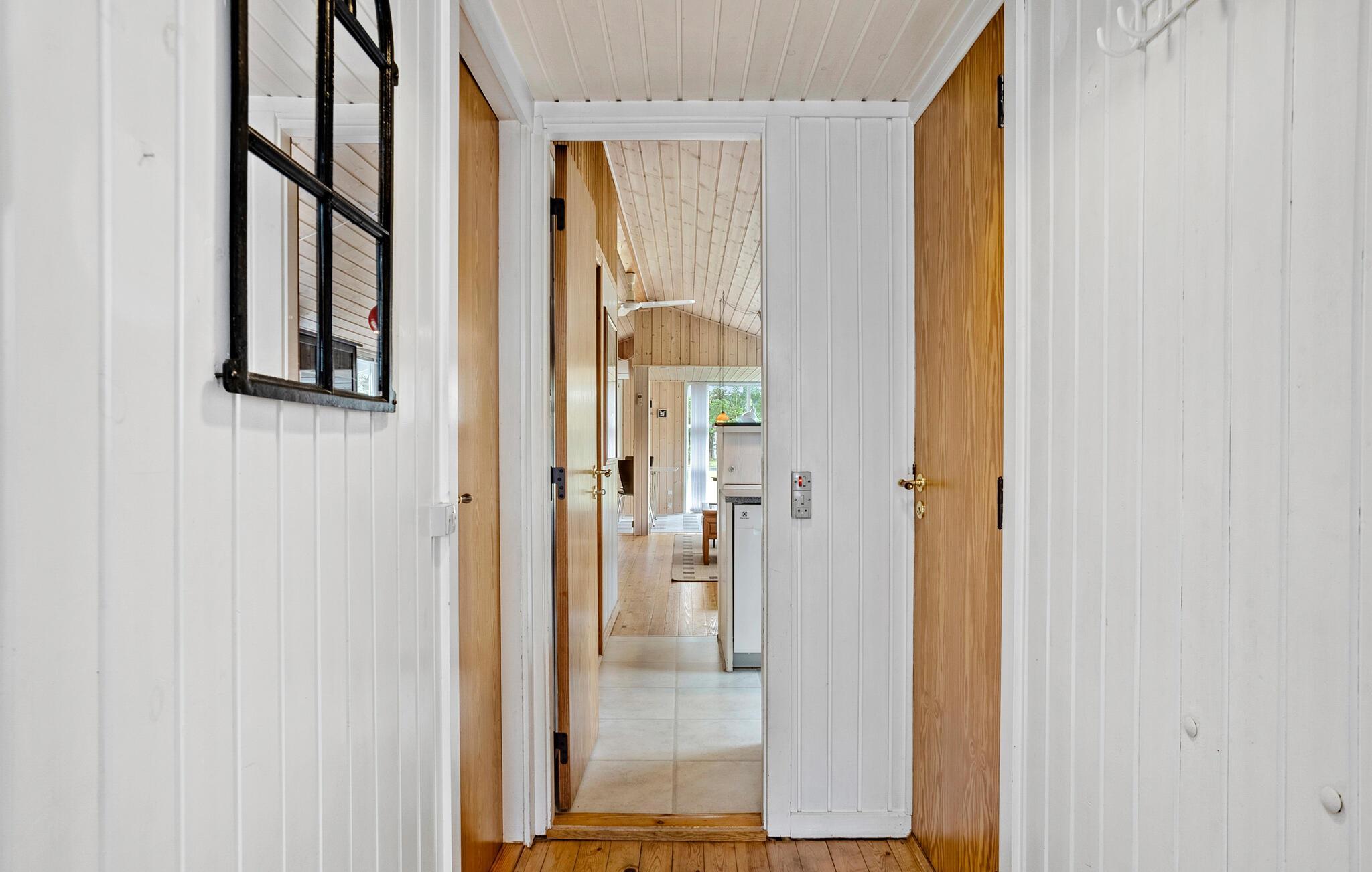 På en smuk havegrund venter dette feriehus med en lys og behagelig indretning. Store vinduespartier giver en betagende udsigt til det grønne. Tænd op i brændeovnen, og glæd jer til hyggelige måltider, sjove spilleaftener eller rolige læsestunder på den indbydende sofa. Eller stream en film, som hele familien kan nyde.