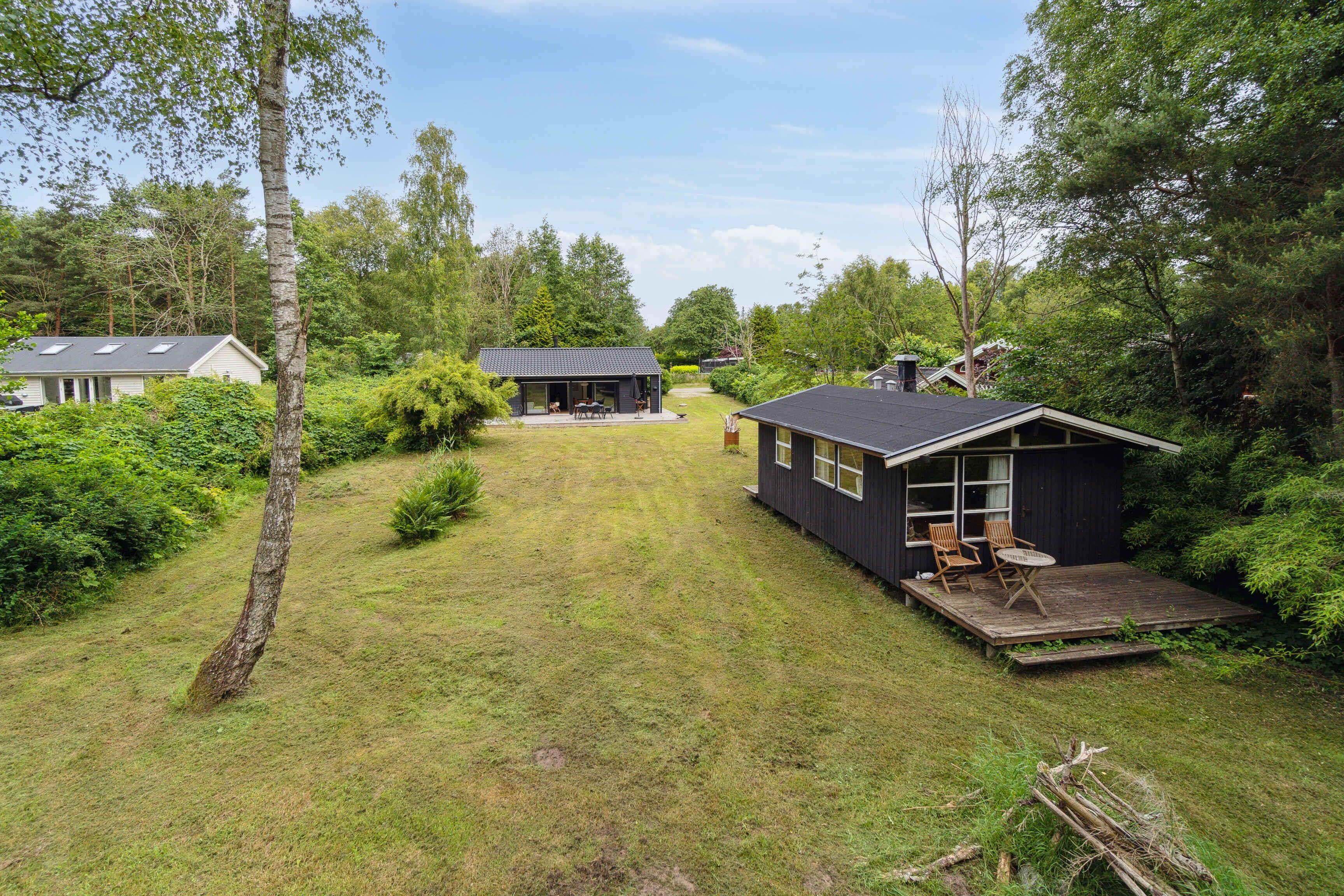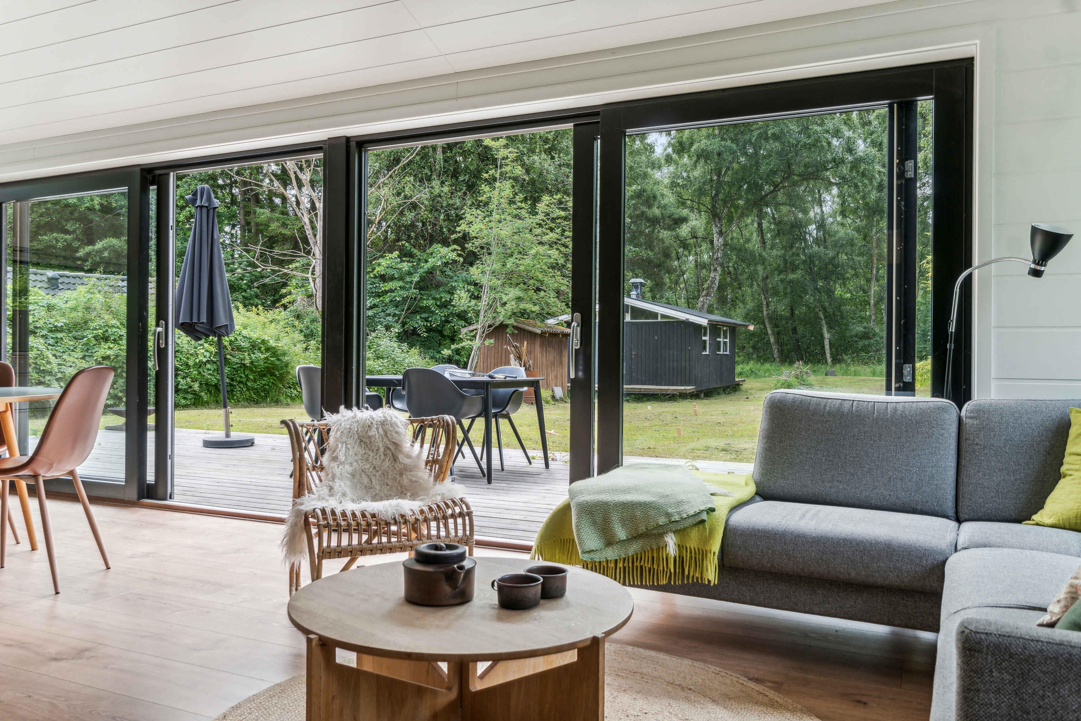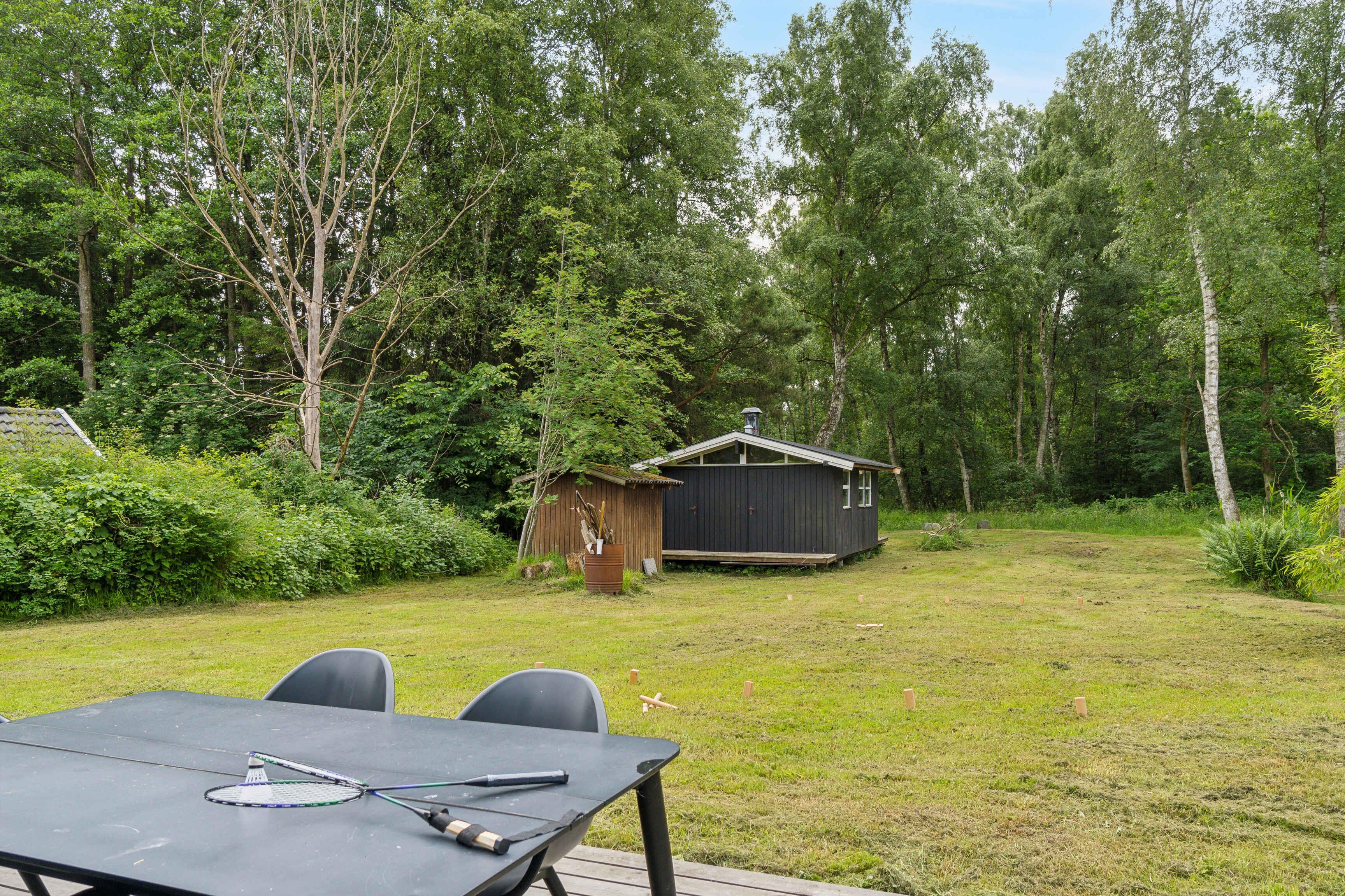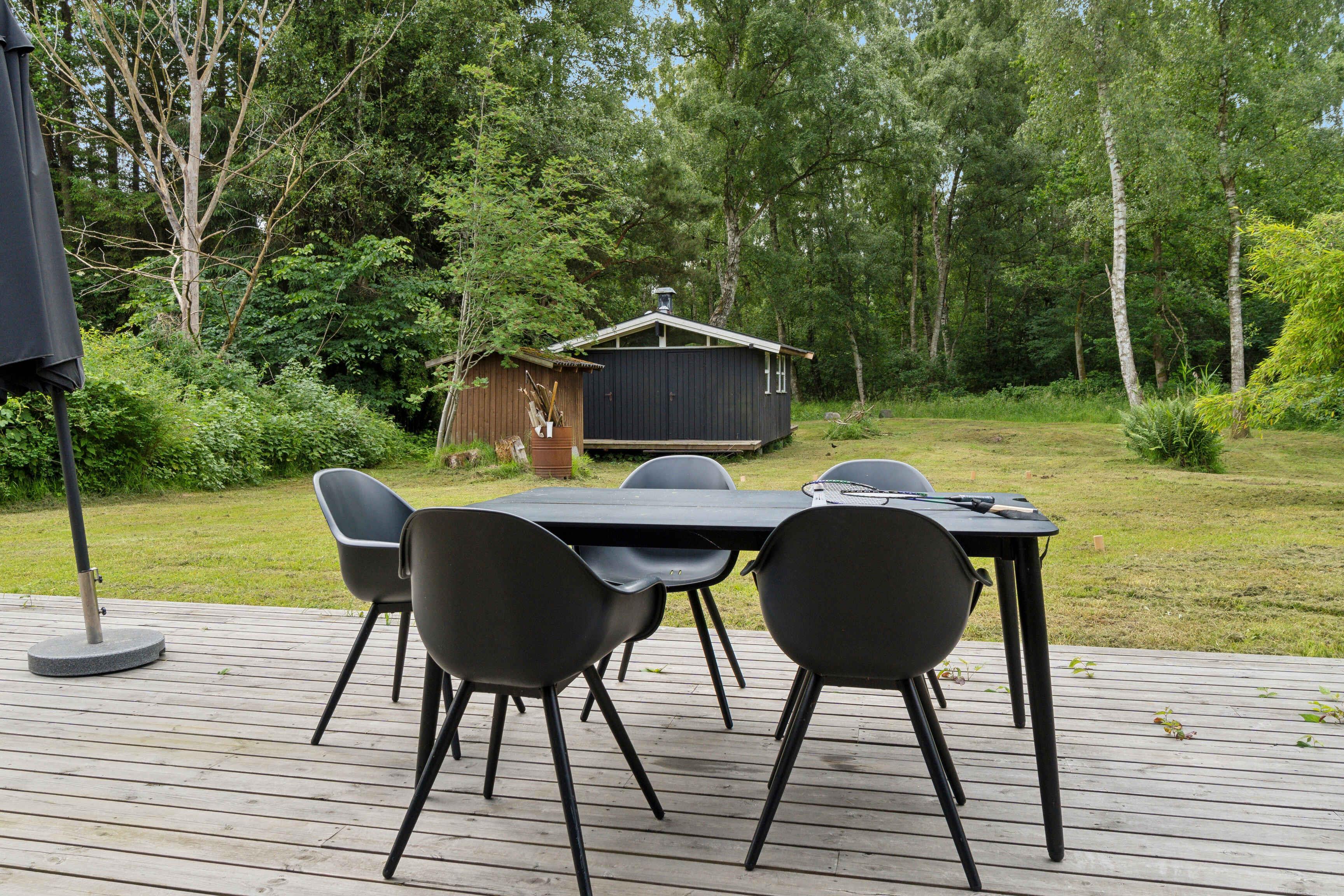 Moderne sommerhus i Asserbo med terrasse, bålplads og naturskøn beliggenhed tæt på skov.