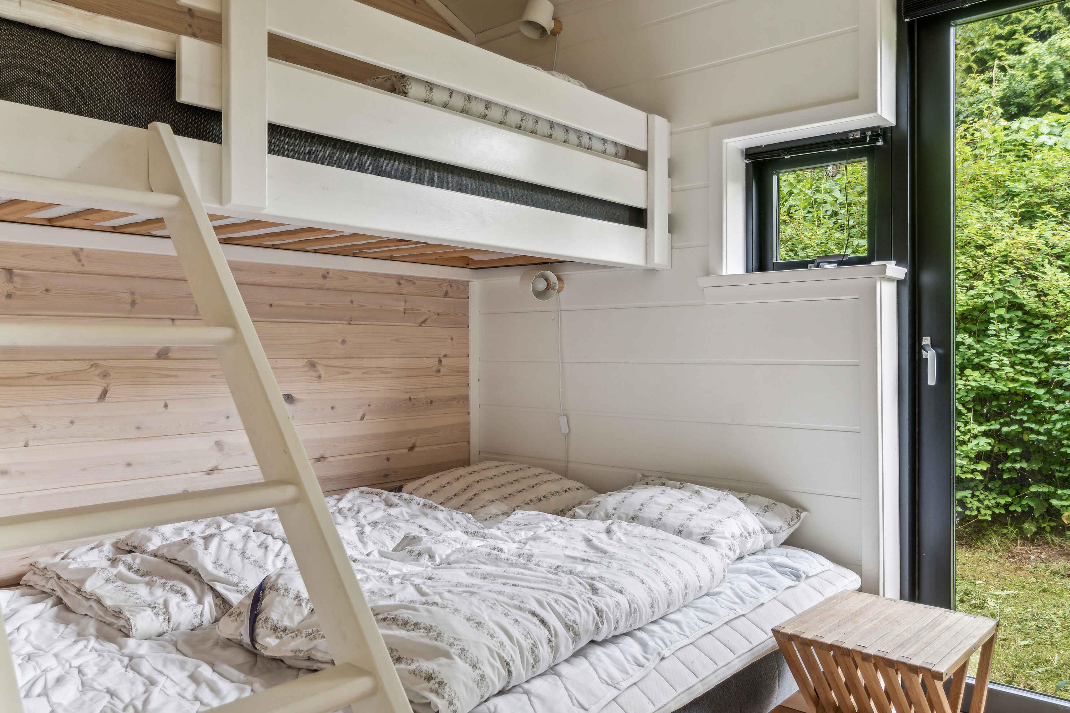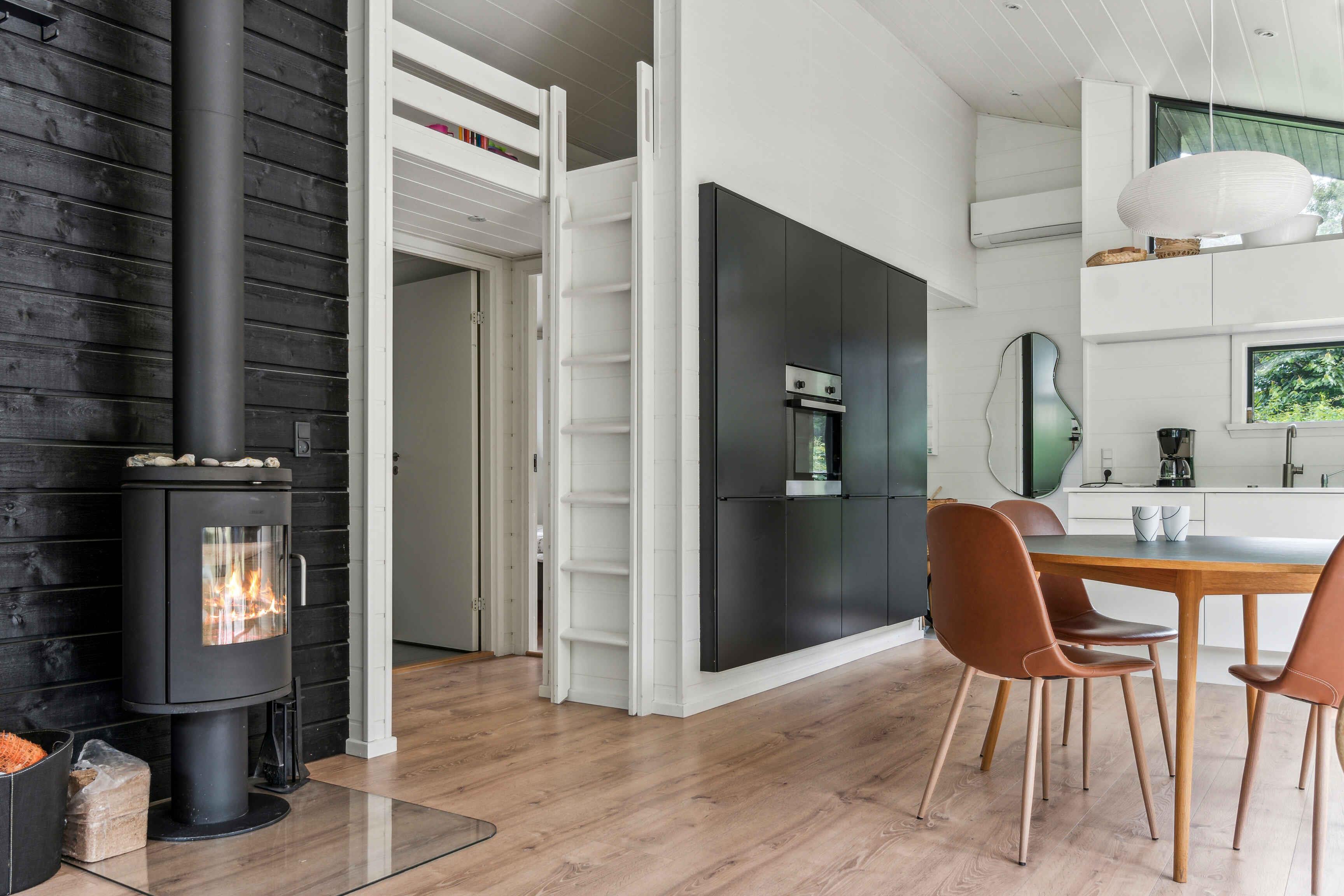 I det naturskønne sommerhusområde i Asserbo, omgivet af frodig skov og rolig natur, finder I dette moderne og stilfulde sommerhus, opført i 2020. Sommerhuset er indrettet med et lyst og rummeligt køkken/alrum, hvor det veludstyrede køkken indeholder alt, hvad I behøver for at tilberede lækre måltider. Her finder I en induktionskogeplade, køle/fryseskab og opvaskemaskine, der gør både madlavning og oprydning nem og bekvem. Stuen, som er indrettet med en hyggelig brændeovn og en effektiv luft/luft varmepumpe, inviterer til afslappende stunder foran pejsen. Her kan I også nyde moderne bekvemmeligheder som internetadgang og et TV med Chromecast, der giver mulighed for at streame jeres yndlingsfilm og serier. Fra stuen er der direkte adgang til både en åben og en lukket terrasse, hvorfra I kan nyde den smukke udsigt over haven og den omkringliggende skov. Terrassen er ideel til både solbadning og hyggelige grillmiddage på varme sommeraftener. Sommerhuset rummer tre velindrettede soveværelser. To af værelserne er udstyret med komfortable dobbeltsenge, mens det tredje værelse har en køjeseng med plads til tre personer – perfekt til familier med børn eller grupper af venner. Badeværelset er moderne og stilfuldt, udstyret med en rummelig bruseniche og gulvvarme, der sikrer en behagelig oplevelse, selv på kølige dage. Udendørsområdet er en oase af afslapning og hygge. På terrassen står der behagelige havemøbler, hvor I kan nyde morgenkaffen eller læse en god bog i solen. Naturgrunden byder på både en bålplads, hvor I kan samles om aftenen og riste skumfiduser, en hængekøje til afslapning under træernes skygge og en grill, der inviterer til udendørs madlavning og hyggelige middage i det fri. Dette sommerhus udlejes ikke til ungdomsgrupper, hvilket sikrer en rolig og afslappet atmosfære for alle gæster. Det er det ideelle sted for familier og venner, der ønsker at nyde en fredelig og naturskøn ferie med moderne komfort og faciliteter. Uanset om I ønsker at udforske de omkringliggende skovområder, slappe af i solen på terrassen, eller nyde en hyggelig aften ved brændeovnen, så tilbyder dette sommerhus i Asserbo den perfekte ramme for en uforglemmelig ferie.