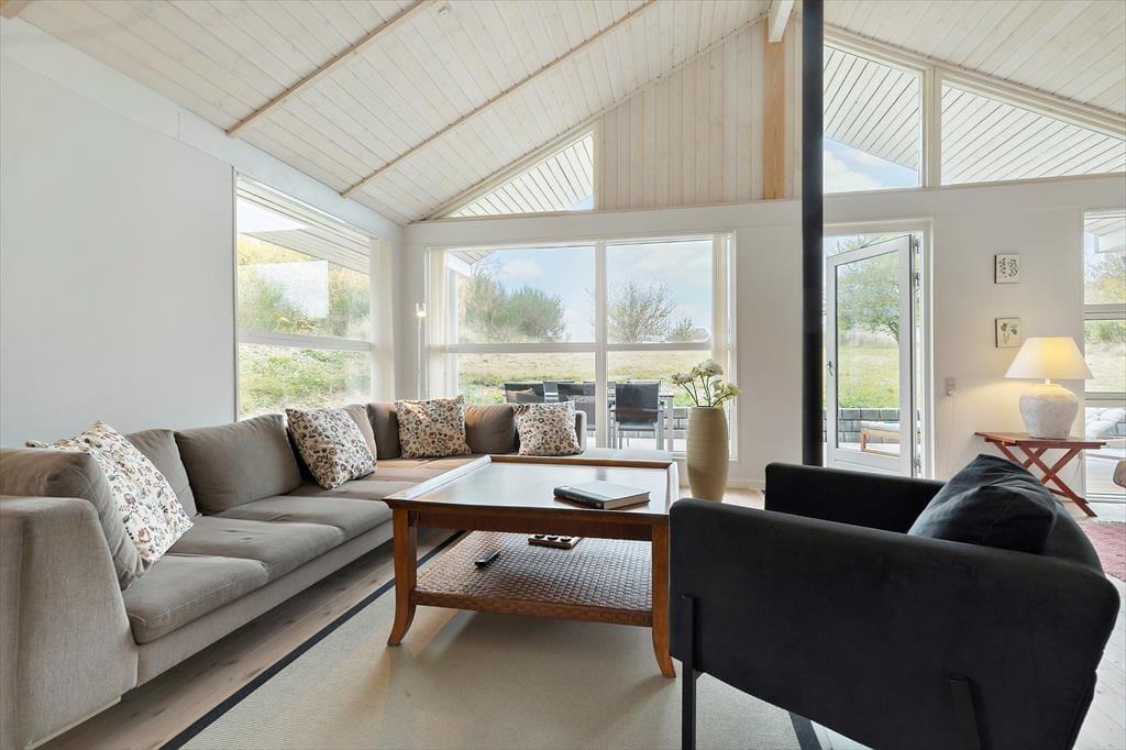 Kom indenfor og oplev en stor, hyggelig stue, hvor en komfortabel sofa og pejsen danner rammen om hyggelige stunder. Huset har tre soveværelser med dobbeltsenge og en ekstra sovesofa, hvilket gør det muligt at samle op til 6 voksne og 2 børn under samme tag. Det åbne køkken er fuldt udstyret med moderne faciliteter – her finder I både køle-fryseskab, mikroovn, opvaskemaskine, vaskemaskine og tørretumbler. Et badeværelse med toilet og bruseniche. Masser af lys strømmer ind og skaber en dejlig, afslappet atmosfære.