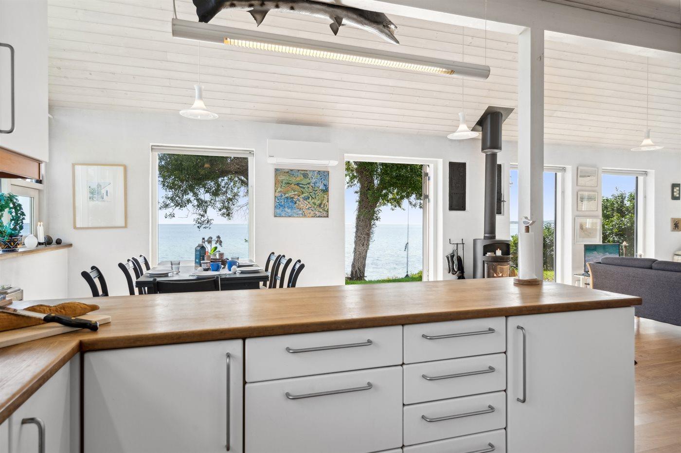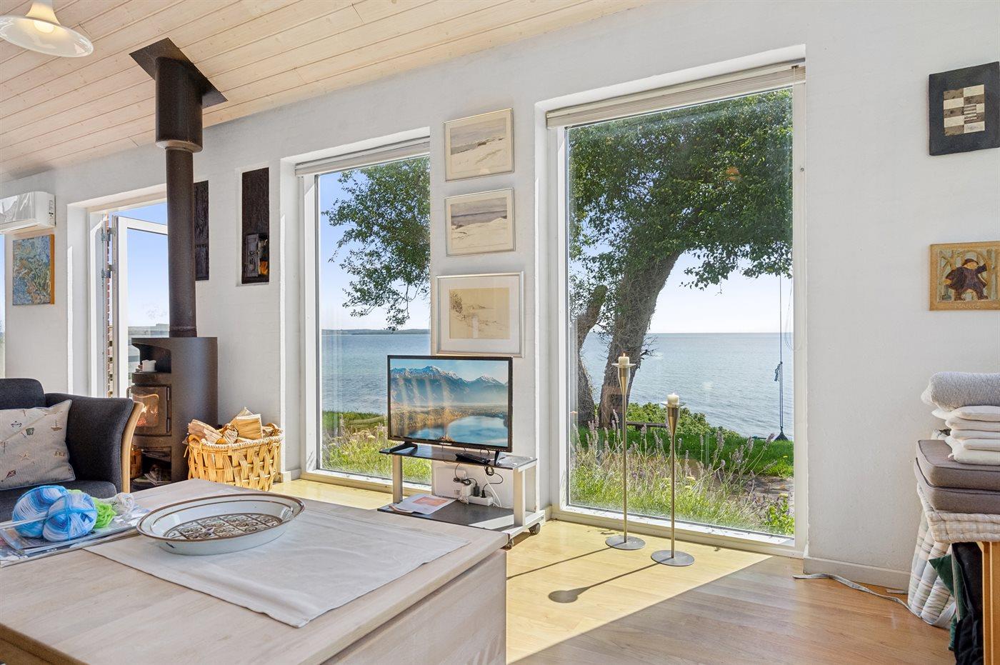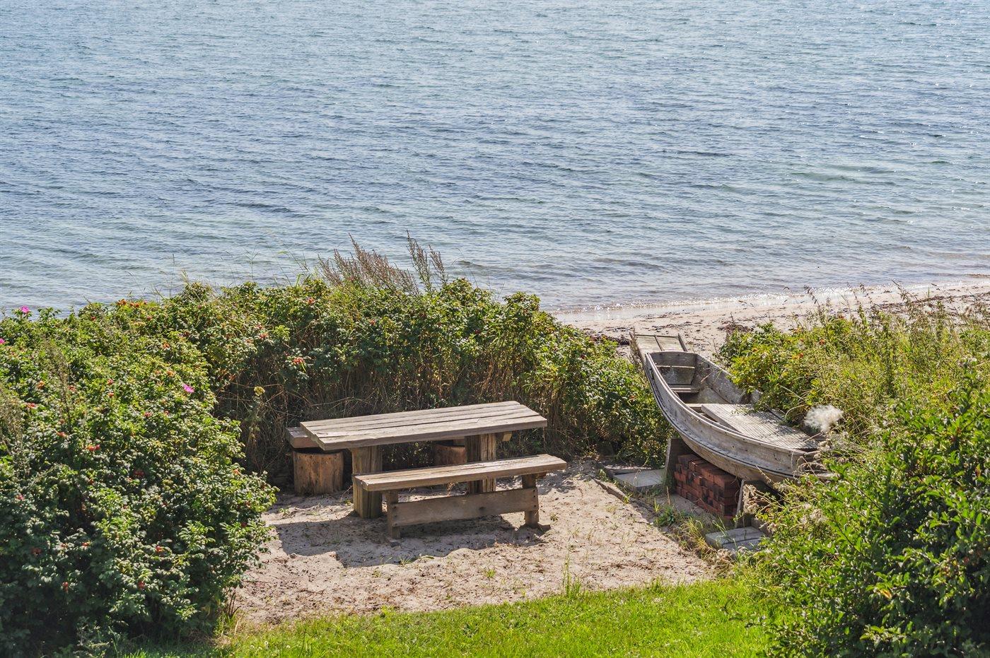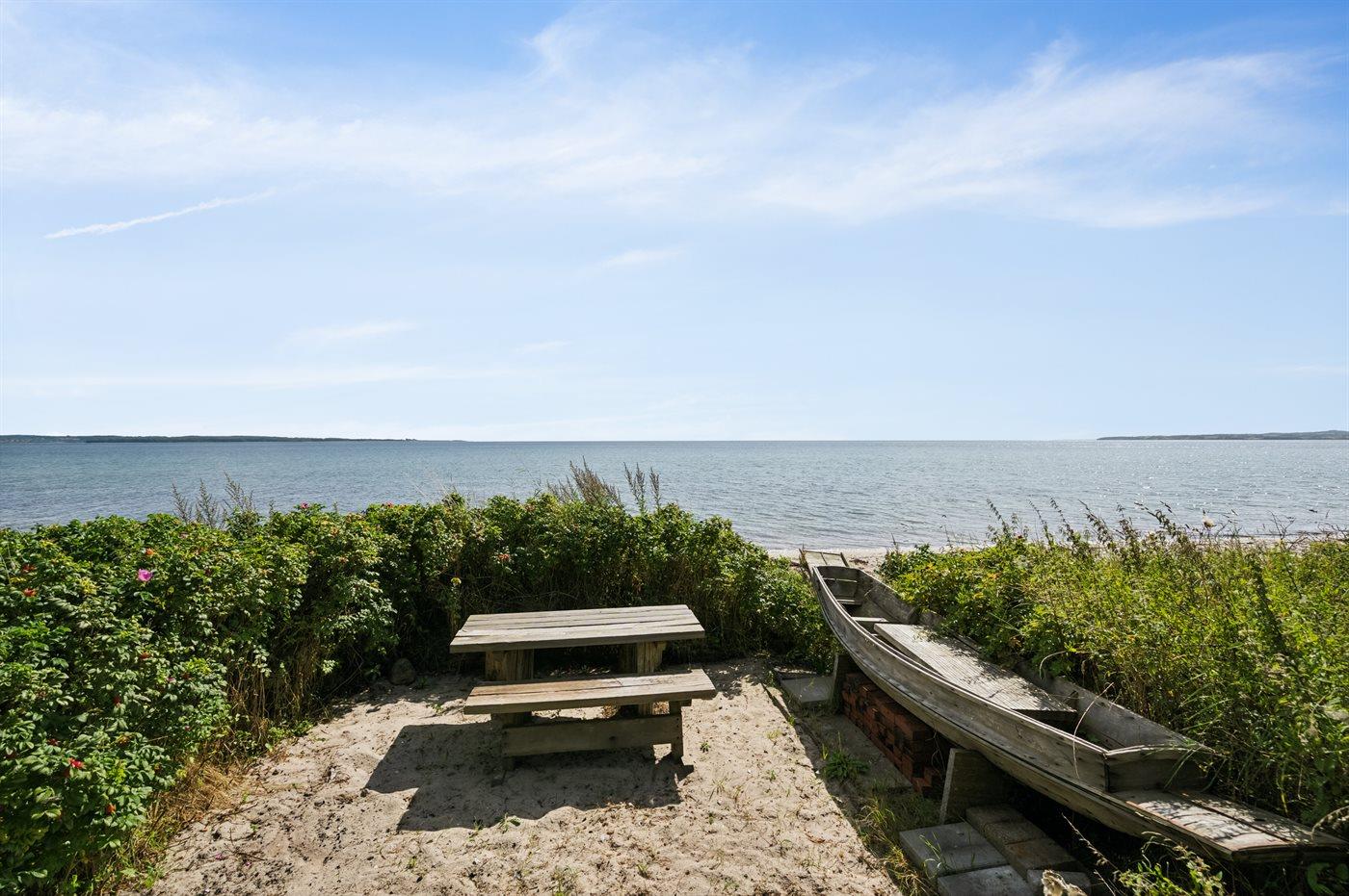 I første række - med direkte adgang til den dejlige sandstrand ved Fuglsø - ligger dette skønne sommerhus med fantastisk udsigt over vandet.