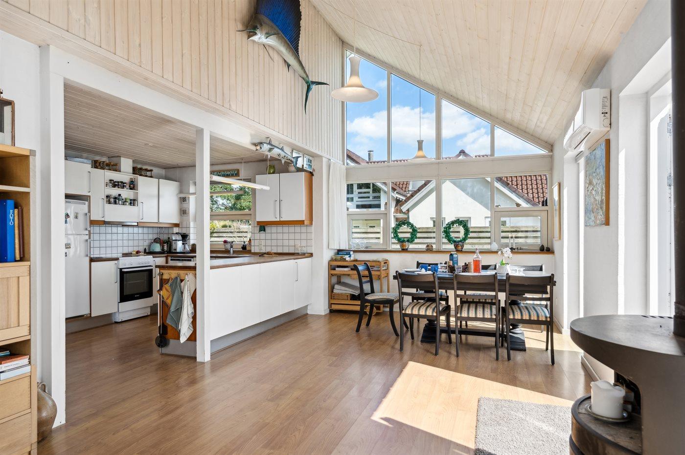 Køkkenet er udstyret med 1 køleskab. Der er 4 keramiske kogeplader, varmluftovn samt opvaskemaskine.