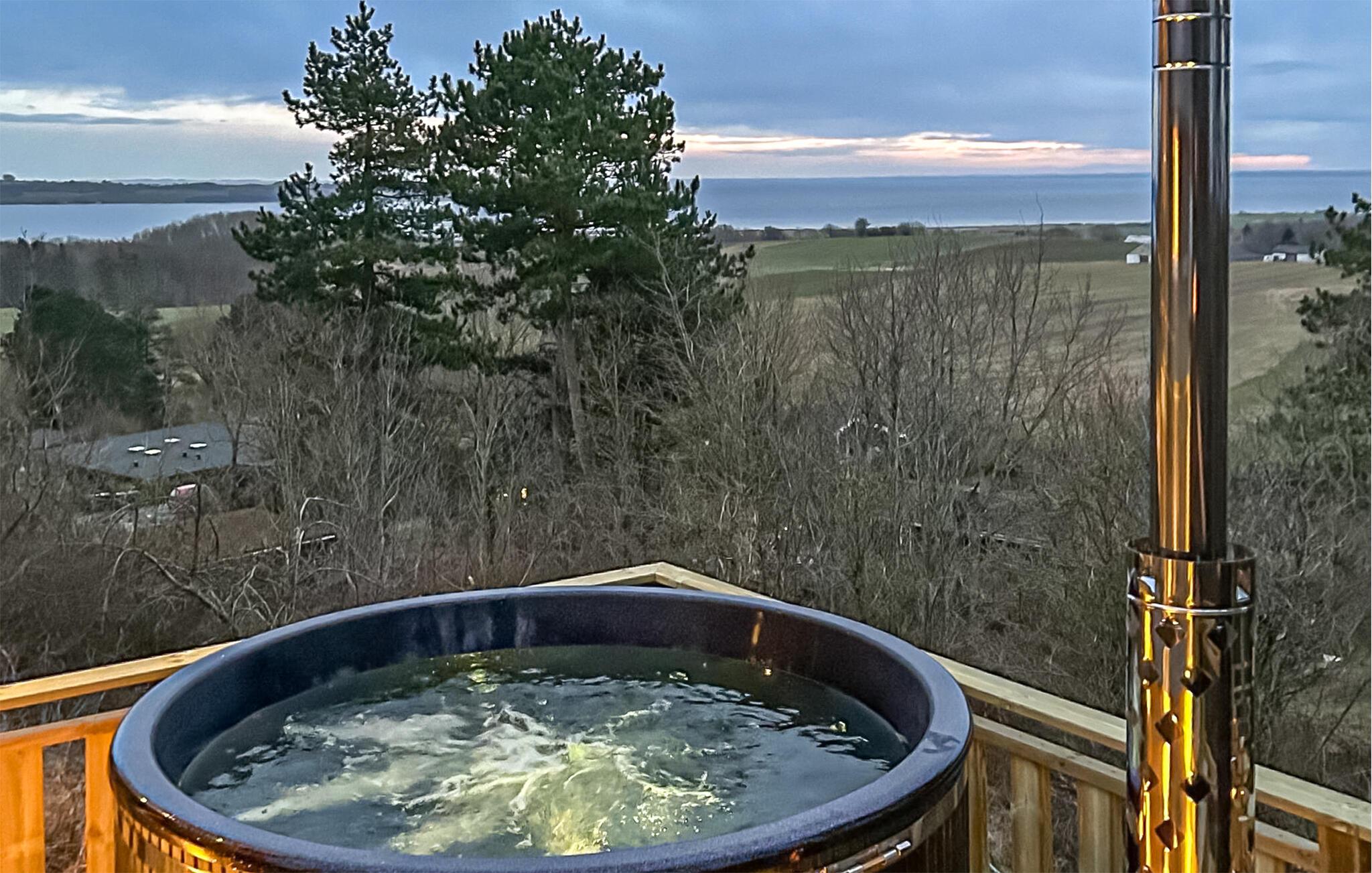 Moderne feriehus med panoramaudsigt og spabad midt i Mols Bjerge Nationalpark.