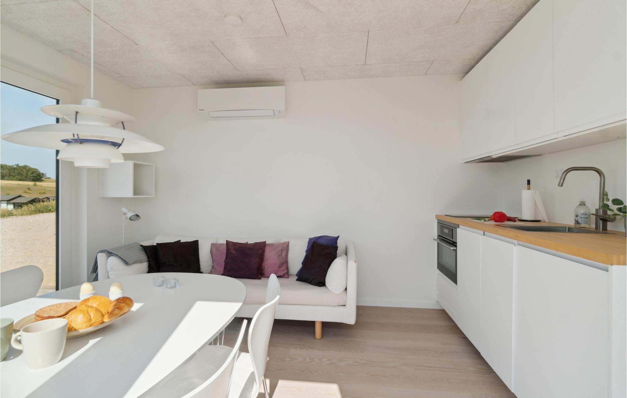Sæt den hektiske hverdag på pause og flyt ind i dette charmerende minihus, som har gode rammer til ferien for den lille familie. Her bor I ud til Nationalpark Mols Bjerges fortryllende natur. Minihuset er meget veludstyret, så de få kvadratmeter rummer faktisk alt, hvad I skal bruge til jeres ferie, og faciliteterne er lækre og moderne. Den store træterrasse forlænger jeres opholdsrum ud under åben himmel og giver jer følelsen af at svæve hen over det smukke landskab. Nyd dagens måltider i den friske luft og glæd jer over den vidunderlige udsigt, som man ikke kan se sig mæt på.