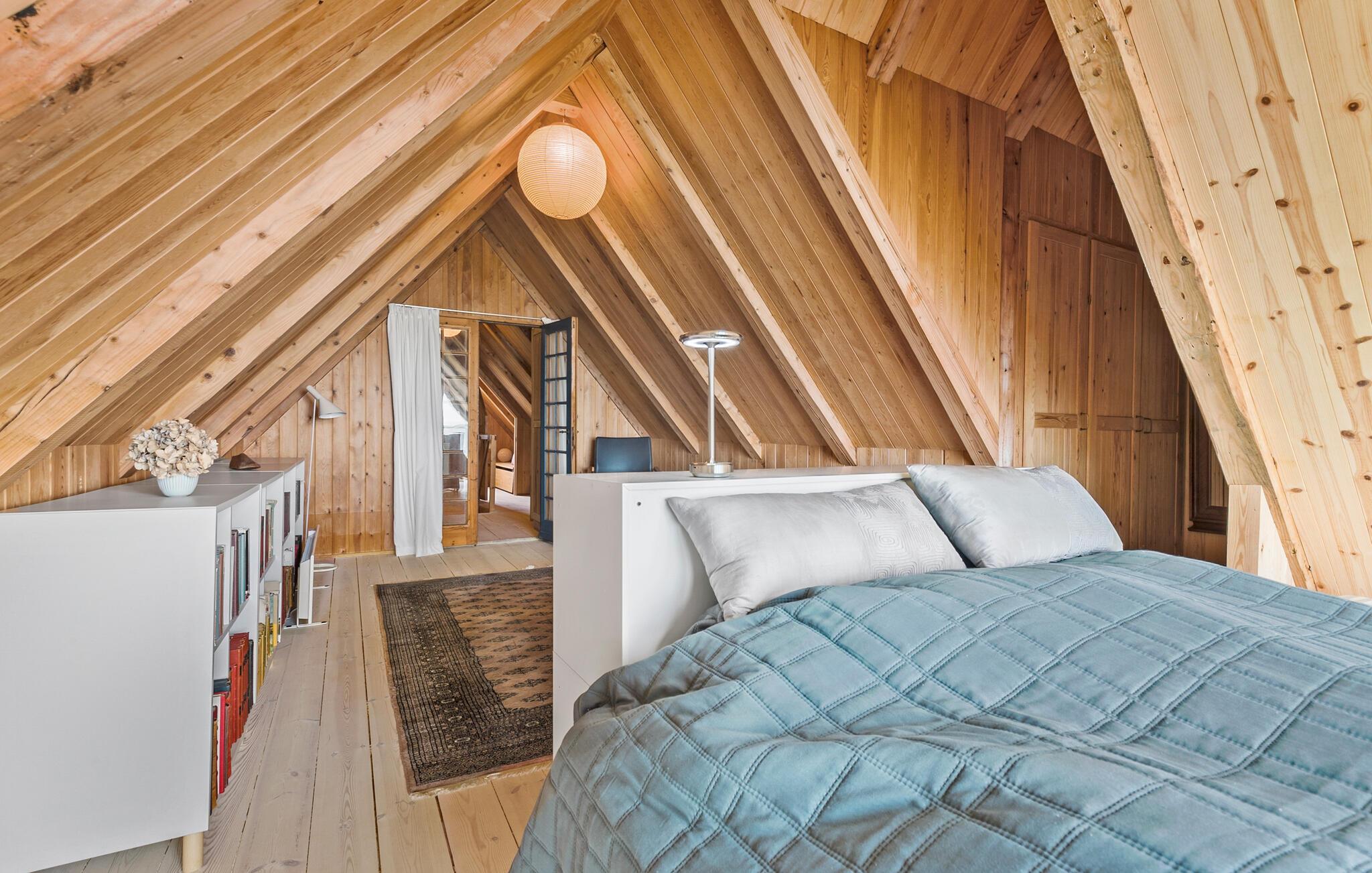 Tag familien under armen og rejs til Fuglsø, hvor I få skridt fra stranden får base i dette attraktive hus. Omgivelserne er allelunde dejlige, og indvendigt emmer det af hygge med varme træpaneler, delvist fritlagte stenmure og store vinduespartier, der giver et lækkert lysindfald og en fremragende udsigt over Fuglsø Vig. Hvis vejret viser tænder, kan I tænde op i pejsen og nyde dens varme knitren til madlavningen, måltiderne og aftenhyggen i stuen.