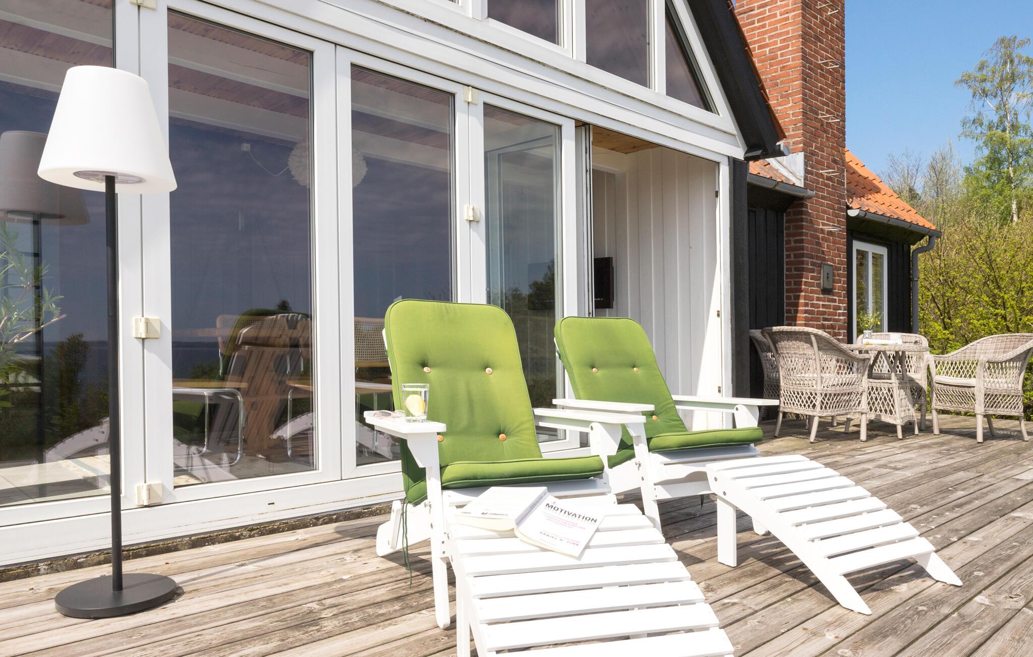 Se frem til årets familieferie i dette flotte hus, der ligger på en stor og dejlig grund og har en fantastisk udsigt over vandet.