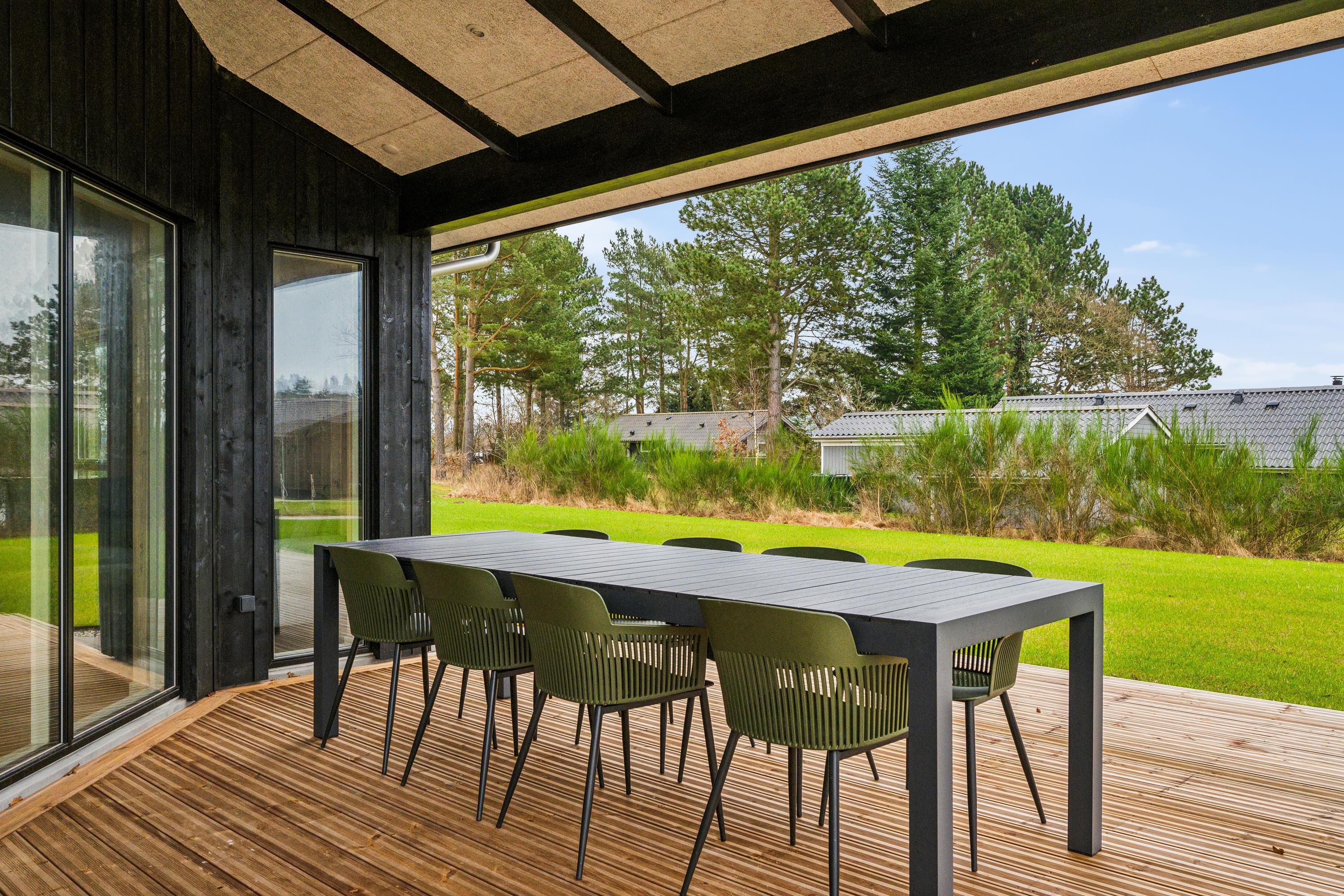 Flot nyopført feriehus nær Ebeltoft med 4 værelser, terrasse, varmepumpe og el-ladestander i fredelige omgivelser.