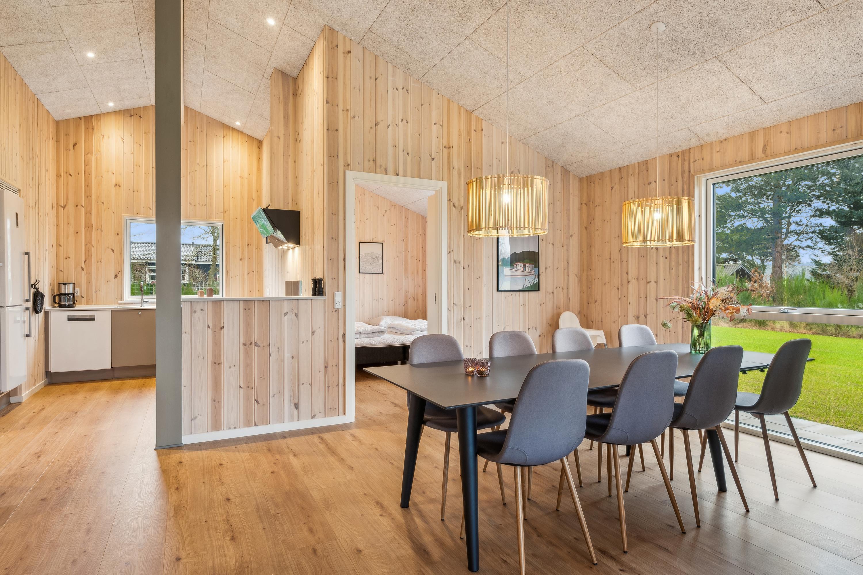 Vil du være den første til at leje dette flotte nyopførte feriehus ? Ikke langt fra Ebeltoft finder man dette flotte nyopførte feriehus. Her finder man en stor og velindrettet stue med varmepumpe samt lækre møbler og med udgang til både overdækket og åben terrasse med havemøbler. Dejlig spiseafdeling i forbindelse med det flotte køkken med b.la. opvaskemaskine. Sovepladserne fordeler sig på 4 gode værelser hvoraf to værelser er med dobbeltsenge og to værelser med enkeltsenge. Flot badeværelse med bruseniche samt gæstetoilet. Der er el-ladestander og gode parkeringsforhold ved huset. Ca midt i marts vil der være fibernet tilgængelig i huset med diverse tv kanaler og indtil da kan der streames.