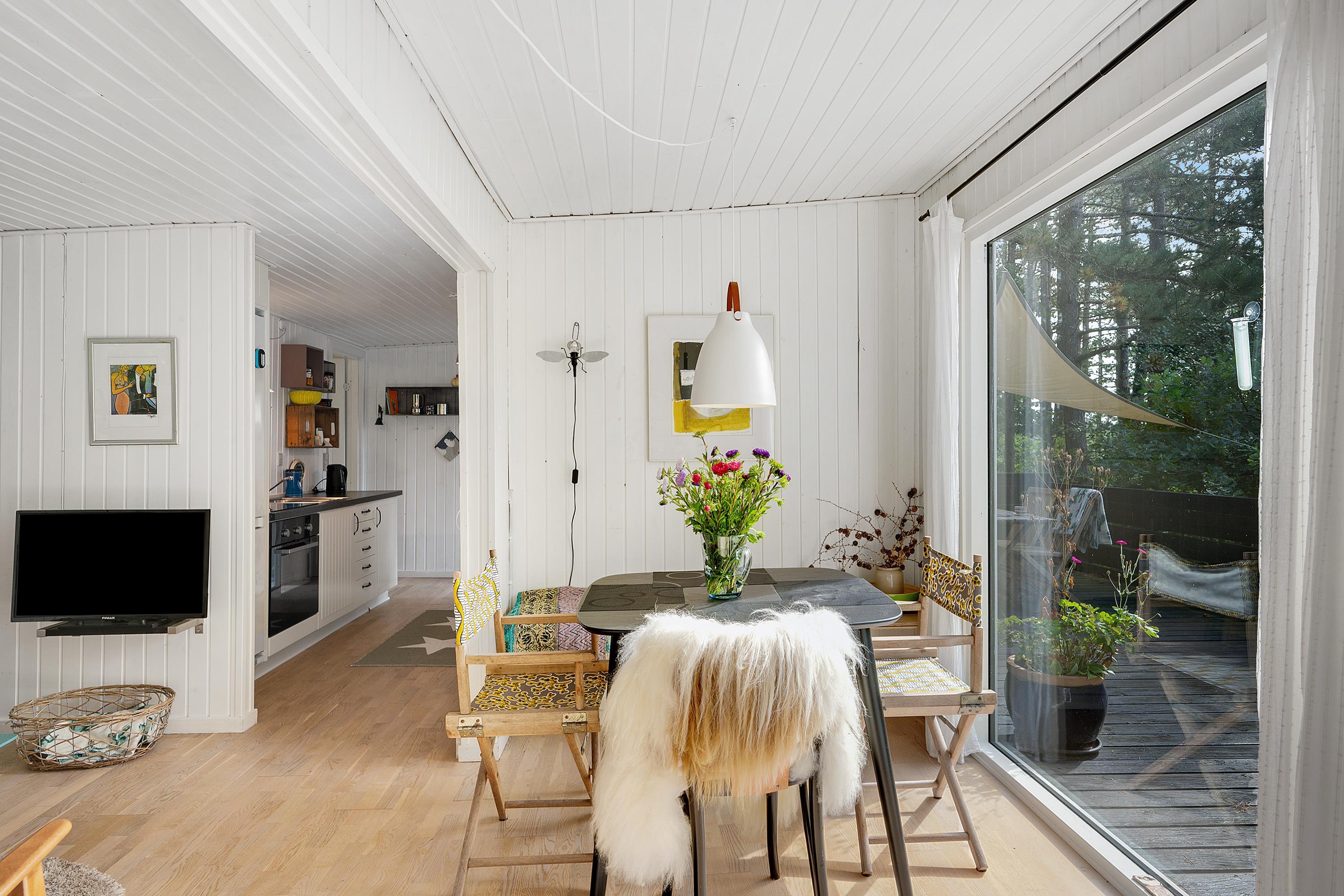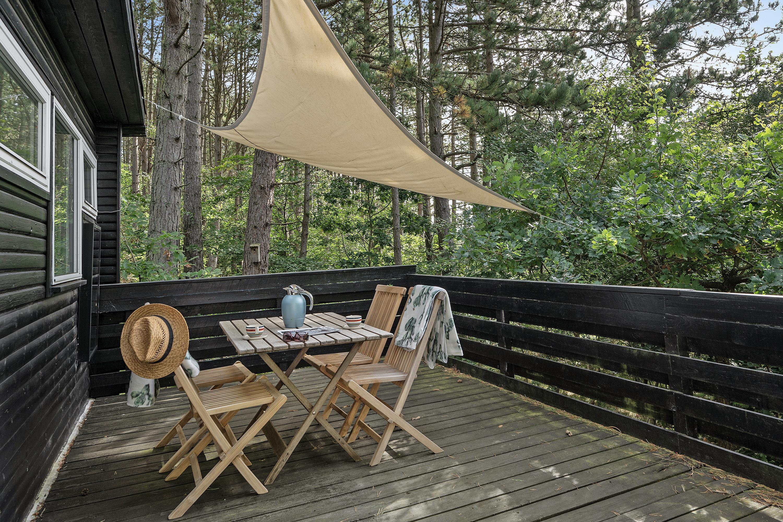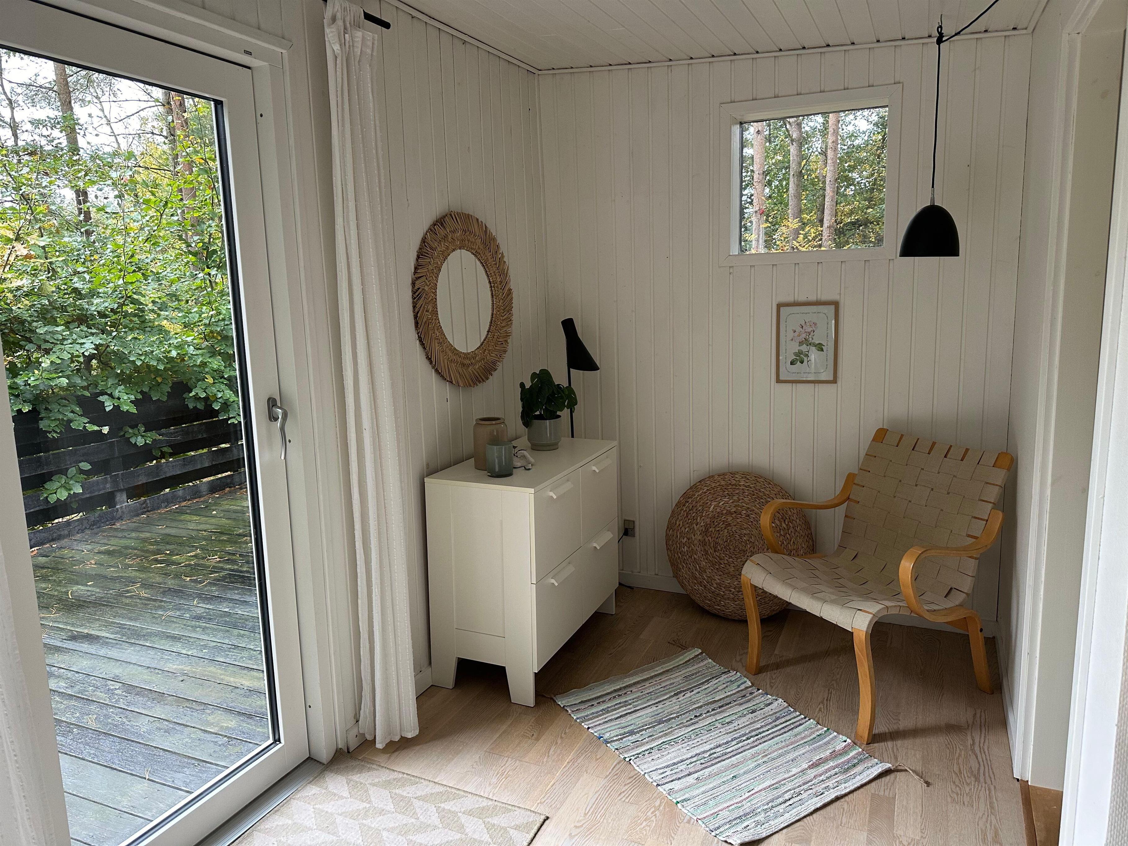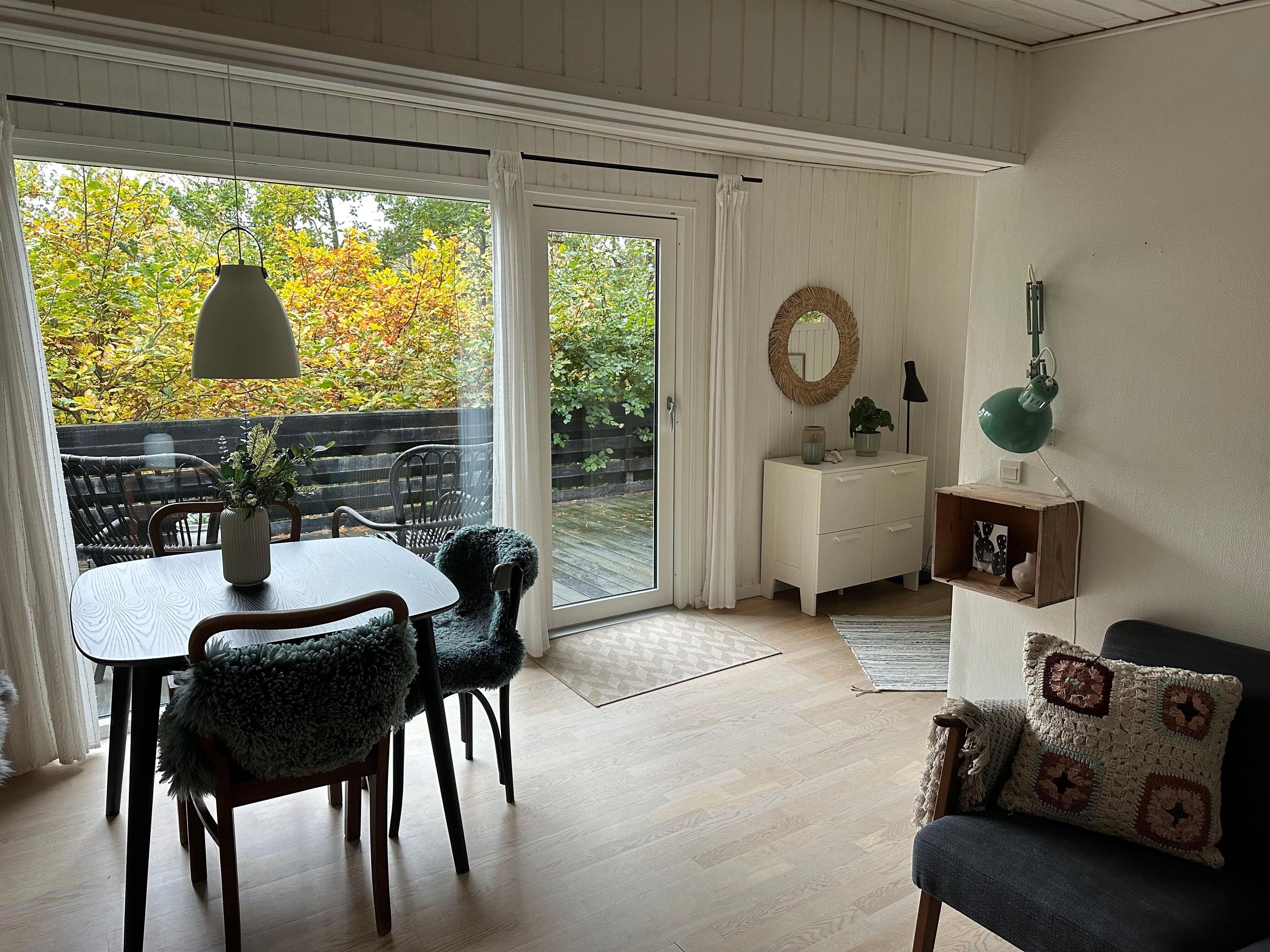 I skovens dybe stille ro finder man dette mindre og særdeles hyggelige hus til 3 personer. Her finder man en lille entre til sko og overtøj. Hyggelig indrettet og lys stue med TV (Chromecast) og hvorfra der er udgang til en dejlig terrasse med havemøbler. I forbindelse med stuen ligger det mindre, men velfungerende køkken. To pæne og hyggeligt indrettede soveværelser, hvor der er to enkelt senge i det ene værelse og en enkelt soveseng i det andet. Nyere badeværelse med bruseniche. Huset ligger tilbagetrukket og ugenert på en dejlig naturgrund og i et skønt naturområde, hvor der nytårsaften ikke må affyres krudt.