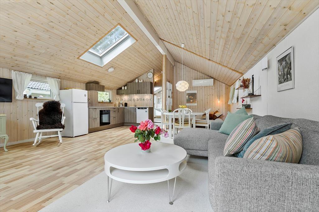 Træd ind i dette rummelige og hyggelige træhus fra 2005, hvor der er plads til både afslapning og sjove aktiviteter for hele familien. Husets store stue er hjemmets hjerte, hvor brændeovnens varme skaber en skøn atmosfære, mens de mindste kan fordybe sig i legehulen, der også har en seng på 60x170 cm. Fra stuen er der udgang til en flisebelagt terrasse, en dejlig spiseafdeling og en komfortabel sofagruppe – perfekt til at nyde en god bog, en film eller brændeovnens flammer. Det funktionelle køkken ligger i åben forbindelse med stuen, så ingen behøver at være alene, mens feriemaden tilberedes. Husets soveværelse med dobbeltseng og det store badeværelse med bruseniche og vaskemaskine fuldender hovedhuset, mens annekset tilbyder endnu et soveværelse med dobbeltseng og eget toilet – ideelt til gæster eller teenagere.