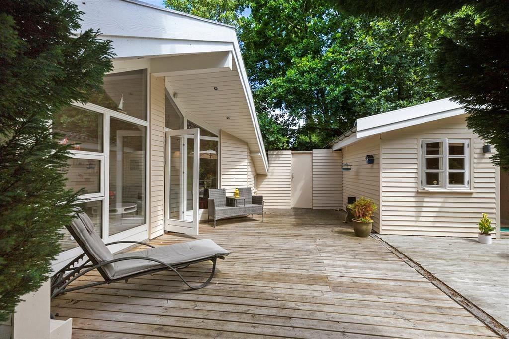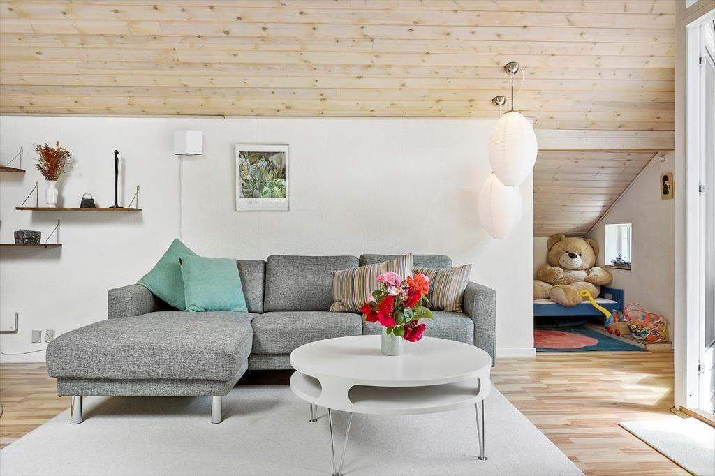 Huset er omgivet af en skøn plan naturgrund, der er beskyttet af høje træer og skaber et privat og roligt udeområde. Her er der masser af plads til børnenes leg og aktiviteter, mens de voksne kan slappe af på en af de to gode terrasser. Nyd solens stråler, en dampende kop kaffe eller aftensmaden direkte fra grillen, mens familiens yngste boltrer sig på græsplænen. Grundens naturlige charme gør den til et perfekt sted for udendørs hygge og samvær.