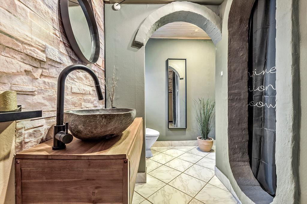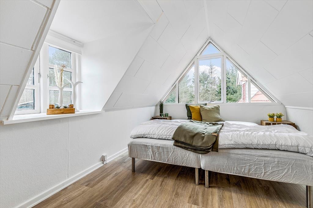 Velkommen til dette skønne og stemningsfulde feriehus, hvor indretningen er en oplevelse i sig selv. Her er der leget med smukke tapeter, rolige farver og et fantastisk lys, der straks får dig til at føle dig hjemme. Huset er gennemført hyggeligt og smagfuldt indrettet, og der er plads til både afslapning og samvær. Indgangen byder på en rummelig entre, der fører til husets store og indbydende stue. Her kan du synke ned i de komfortable ”slap af”-møbler og nyde brændeovnens knitren, se TV, læse en god bog eller hygge med familie og venner. Stuen ligger i åben forbindelse med det funktionelle og stemningsfulde køkken, hvor du har alt, hvad du behøver til at fremtrylle lækker feriemad. Spisestuen har et langt bord, perfekt til fælles måltider, og herfra er der udsigt til haven og adgang til en skøn terrasse. Huset har to badeværelser, der matcher resten af hjemmets hyggelige stil, og fire dejlige soveværelser. På 1. sal finder du to værelser med dobbeltsenge, der kan adskilles. To yderligere soveværelser ligger i stueetagen – det ene med dobbeltseng og det andet med dobbelt sovesofa.