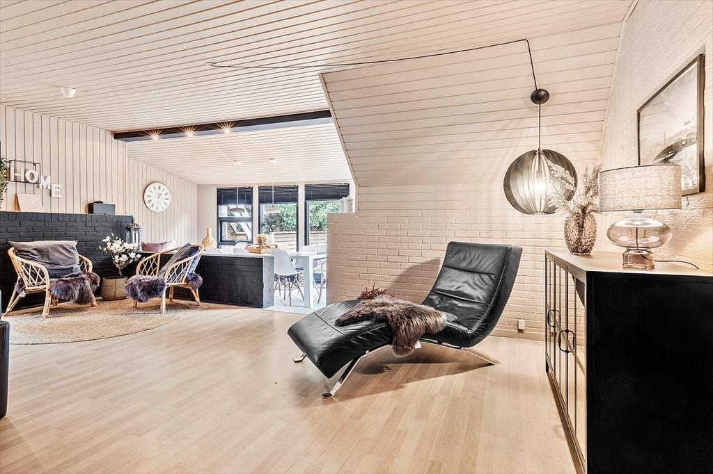 Udenfor venter en dejlig have, der indbyder til både leg og afslapning. Haven er plan og perfekt til aktiviteter, og der er flere terrasser, hvor du kan nyde solen fra morgen til aften. Trænger du til skygge, kan du slå dig ned på husets veranda og nyde den svalende brise. Grunden er delvist indhegnet, så familiens hund kan snuse rundt i trygge omgivelser.