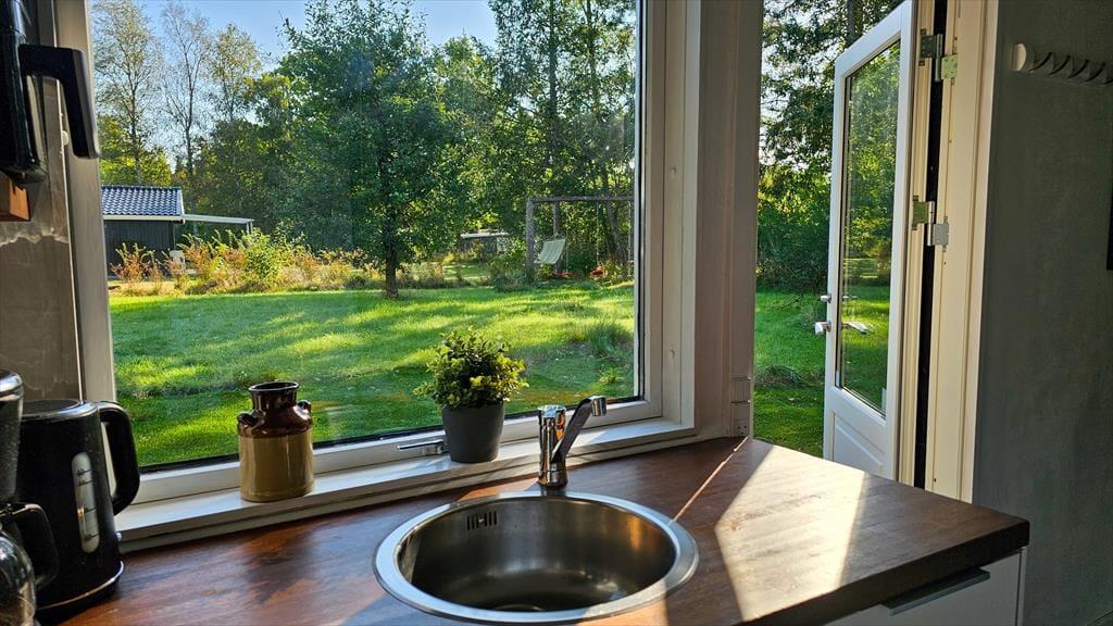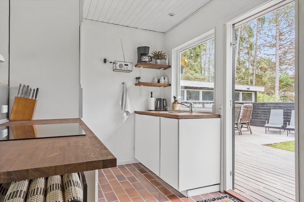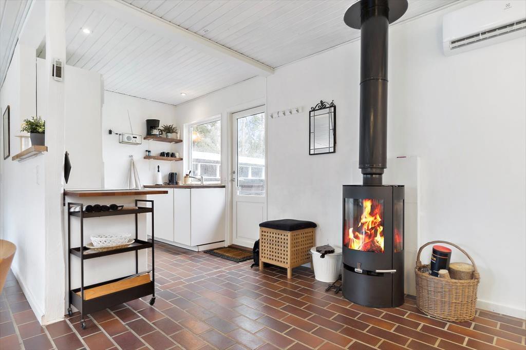 Ikke langt fra Ebeltoft finder du dette dejlige og hyggelige feriehus, der indbyder til en afslappende ferie for hele familien. Huset byder på en lys stue med både brændeovn og varmepumpe, der skaber en behagelig atmosfære året rundt. Fra stuen er der direkte udgang til en stor, skøn terrasse, hvor du kan nyde kaffen i morgensolen. I åben forbindelse med stuen finder du et funktionelt køkken og en hyggelig spiseafdeling, der gør det nemt at være sammen om madlavningen. Huset rummer desuden et dejligt badeværelse med bruseniche, to soveværelser og en alkove, som skaber ekstra sovepladser. Praktiske faciliteter som vaskemaskine og Chromecast til streaming af dine yndlingsserier er også til rådighed.